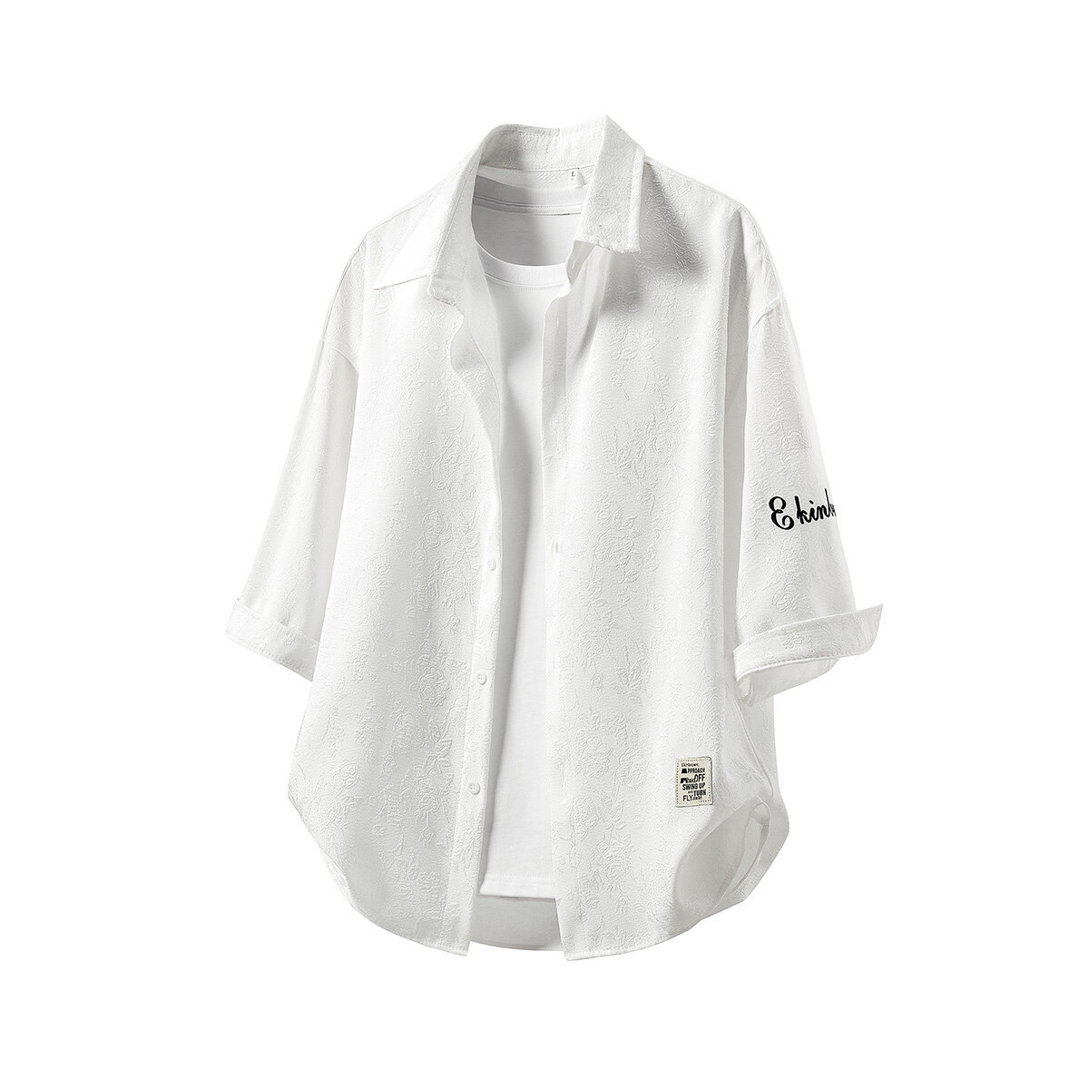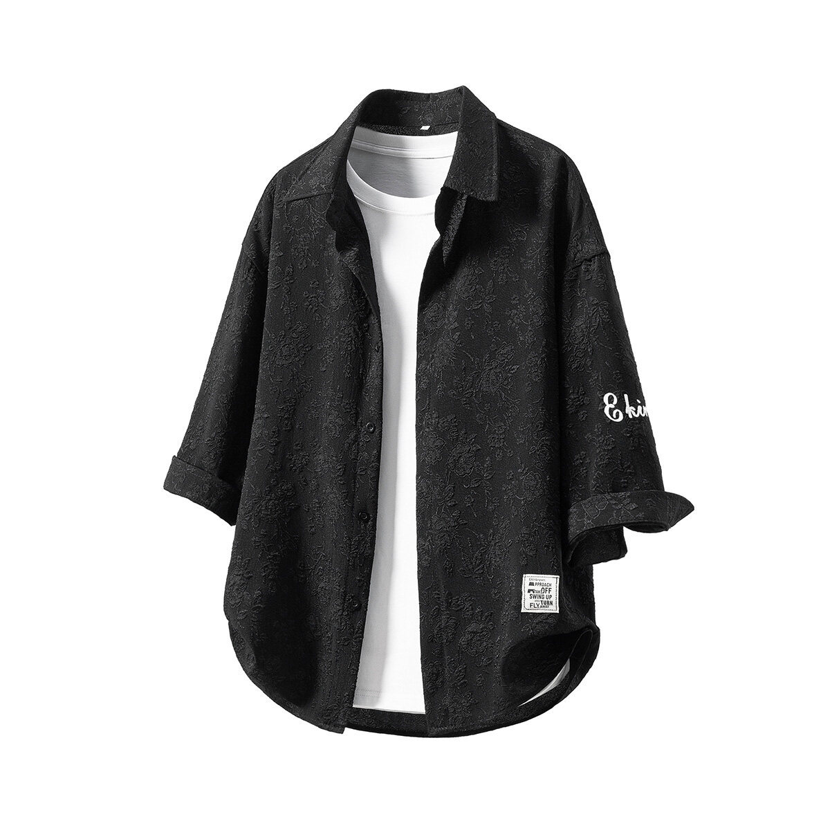 남성용 7부 반팔 셔츠, 여름 핸섬 셔츠, 트렌디한 브랜드 얇은 긴팔 재킷, 홍콩 스타일 꽃무늬 셔츠, 남성용 라지 사이즈