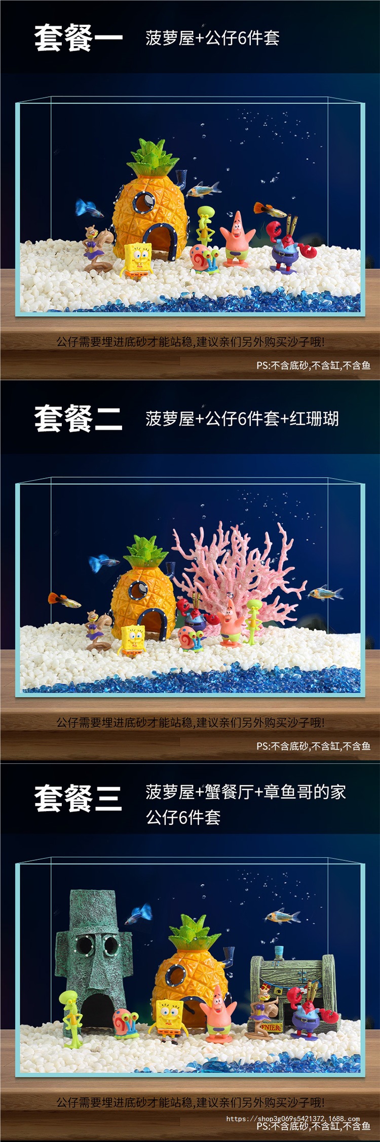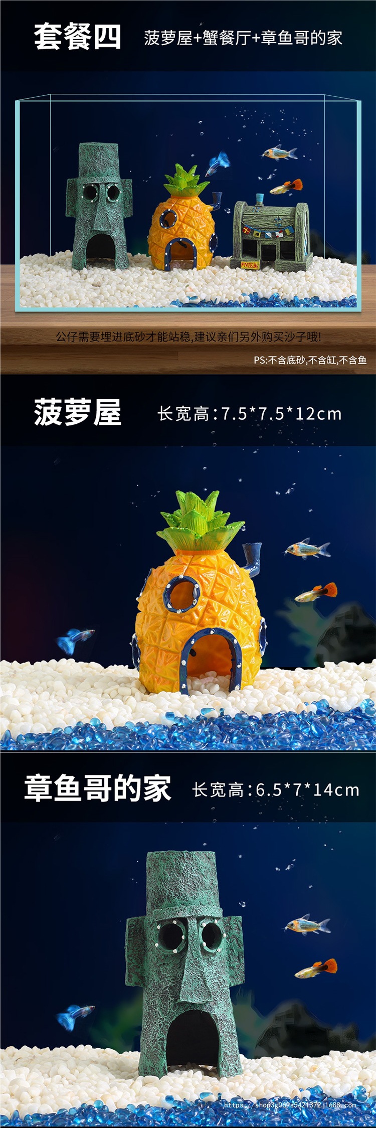 스폰지밥 파인애플 하우스 작은 수조 조경 장식 전체 세트 guppy 어린 물고기 피난처 산호 패키지 장식품스토어 가기