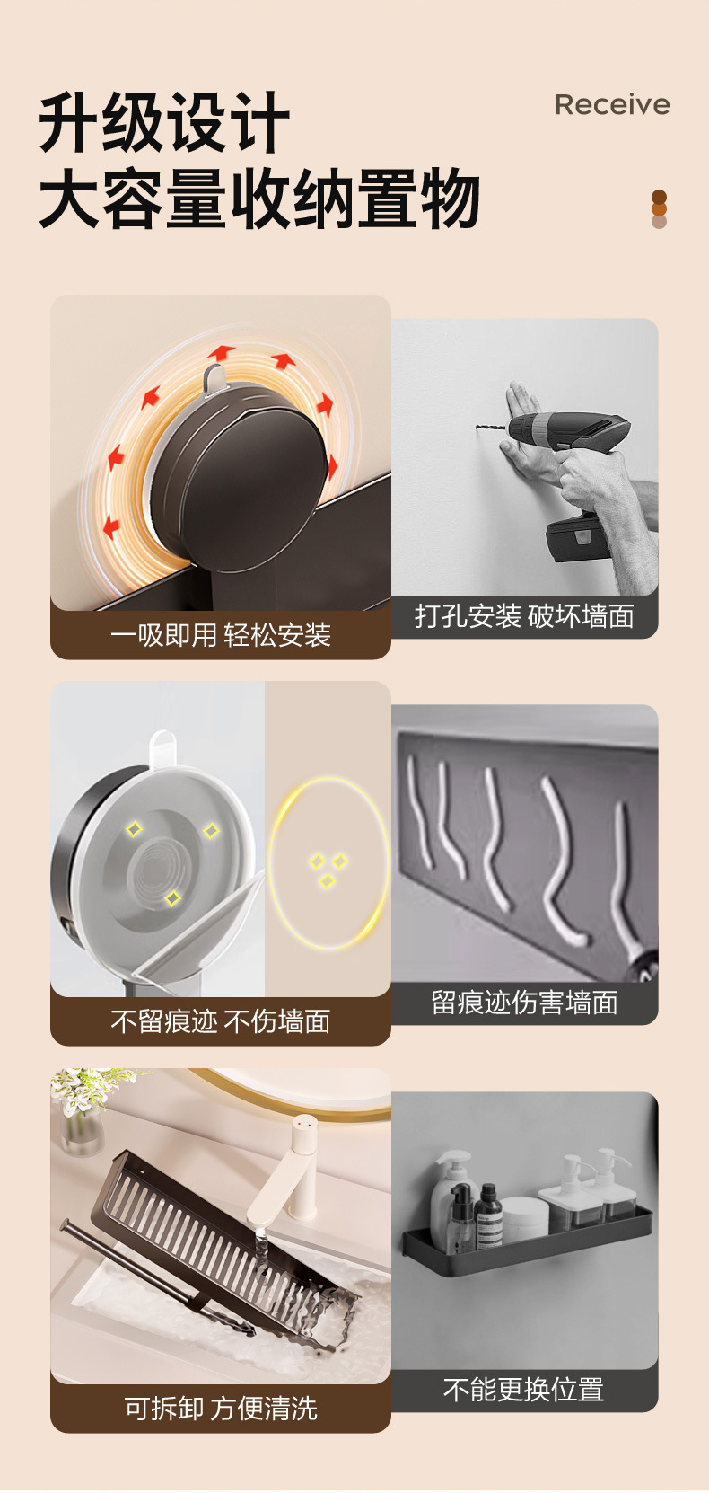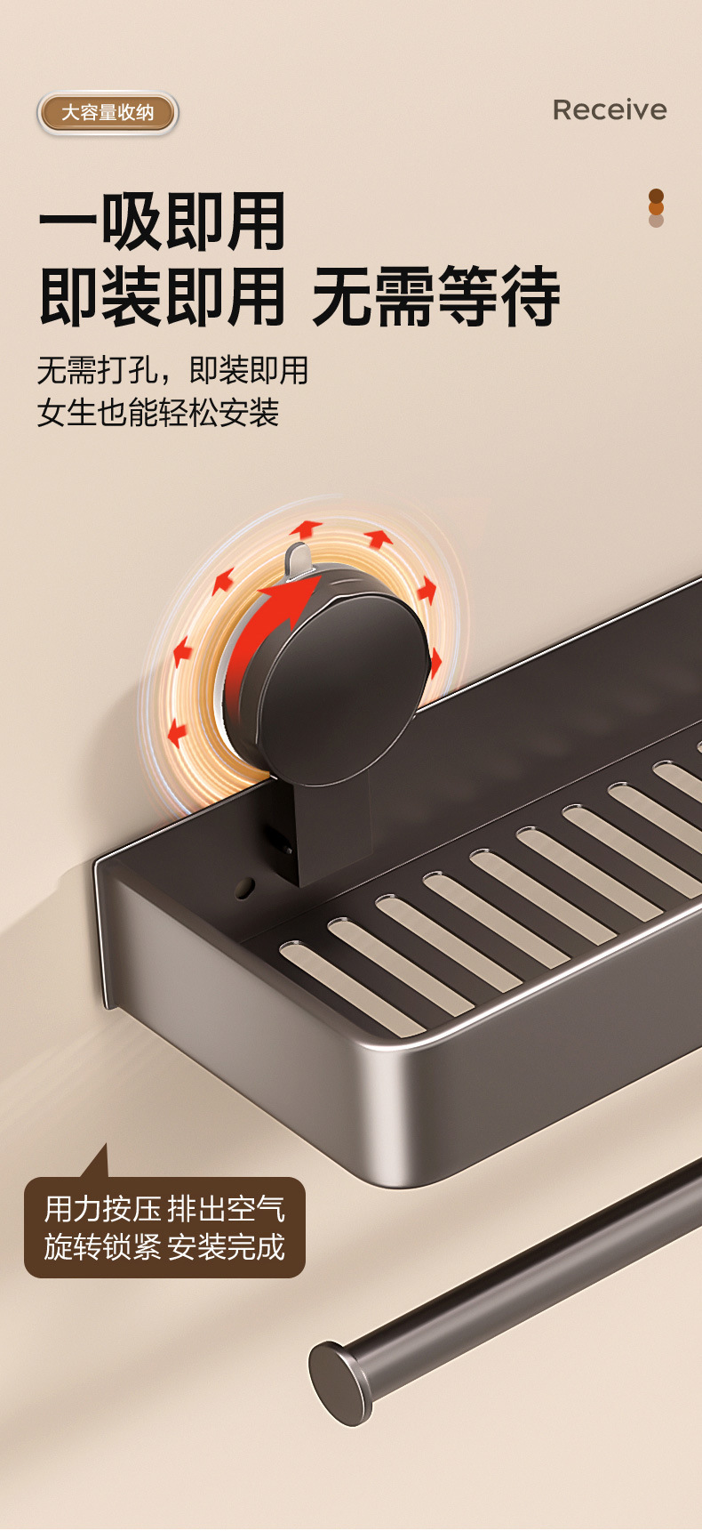 직접 판매 공간 알루미늄 욕실 보관함 흡입 컵 펀치없는 욕실 싱크 보관함 주방 조미료 선반