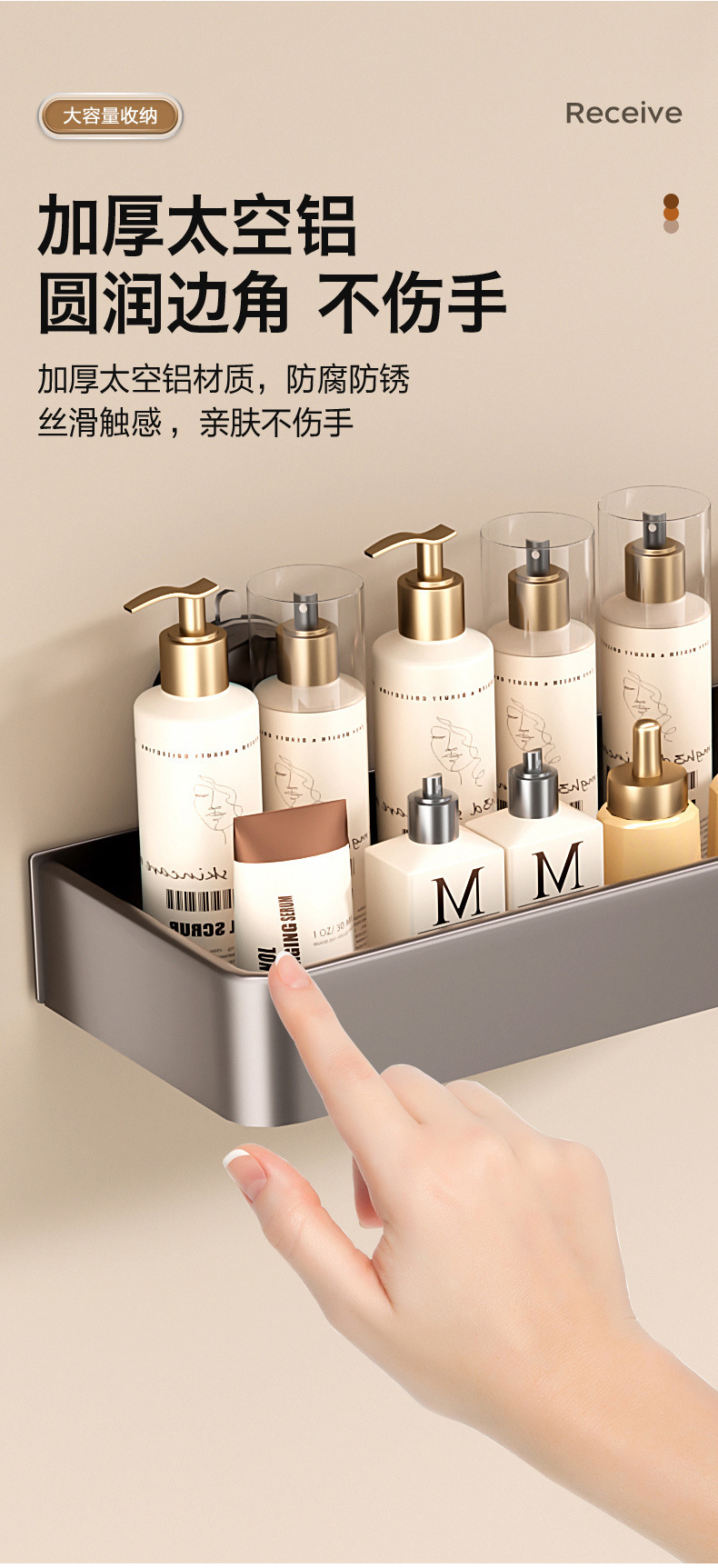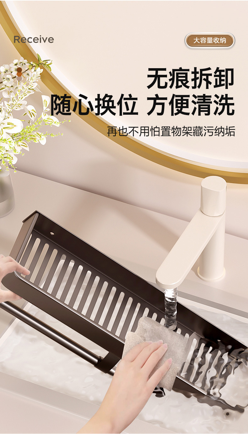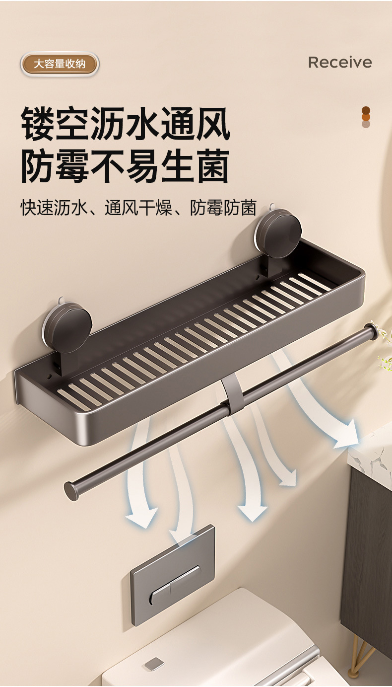 직접 판매 공간 알루미늄 욕실 보관함 흡입 컵 펀치없는 욕실 싱크 보관함 주방 조미료 선반스토어 가기