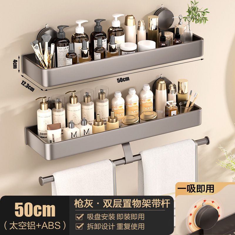 • 흡입 컵 건 그레이 50cm 더블 레이어(타월 바 포함)