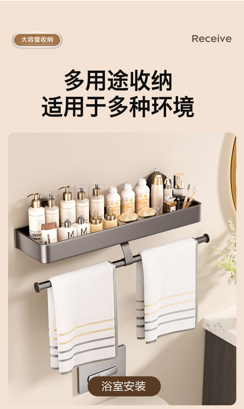 • 흡입 컵 건 그레이 60cm 더블 레이어(타월 바 포함)