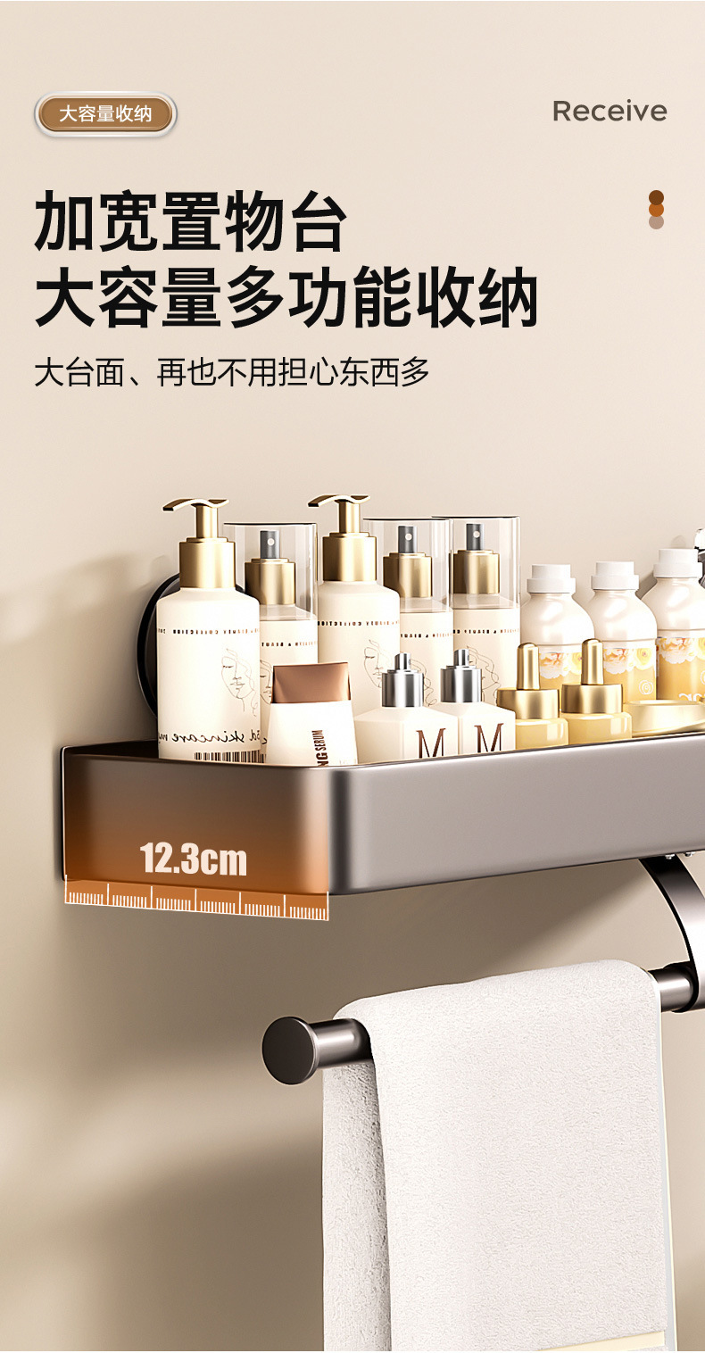 • 흡입 컵 건 그레이 30cm 더블 레이어(타월 바 포함)