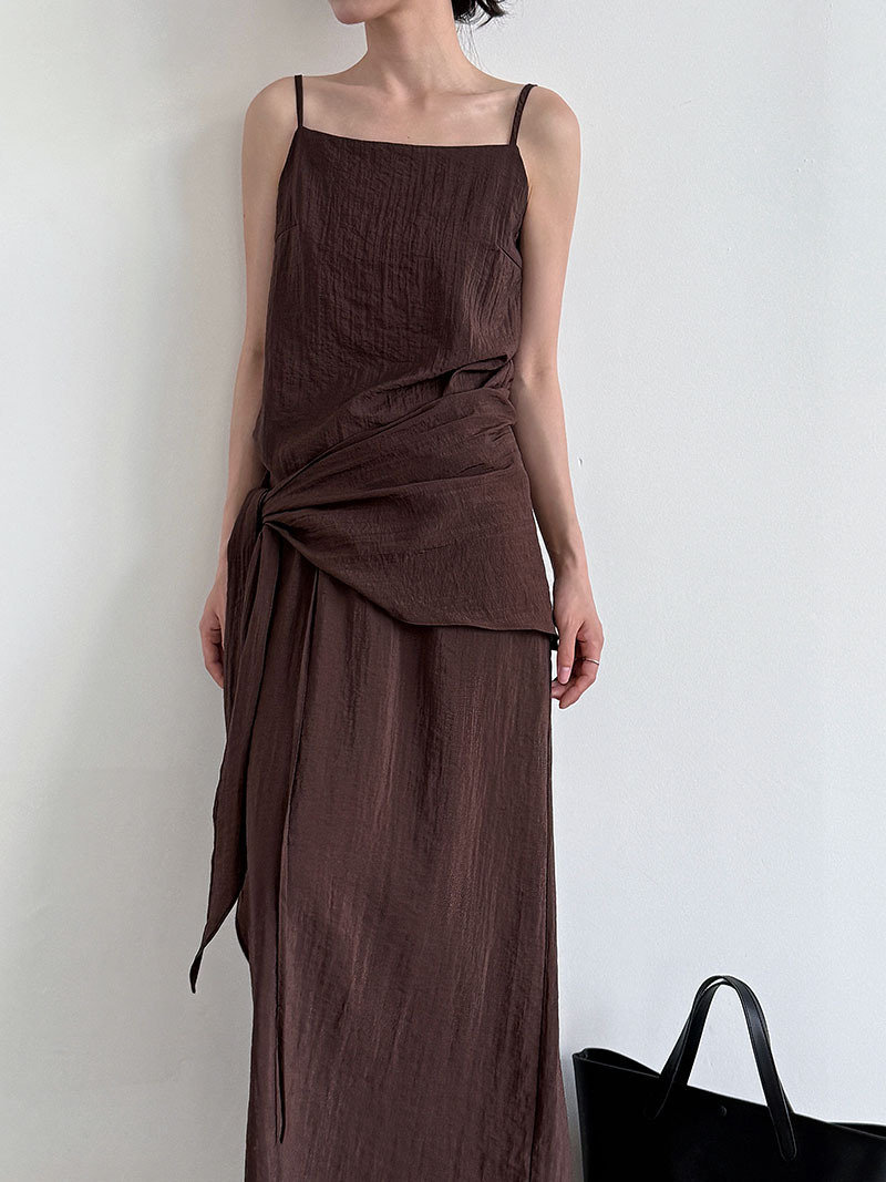 Lushi 심플 기질 캐미솔 + 여성을 위한 슬리밍 스커트 여름 신작 슈트 스트랩 0871스토어 가기