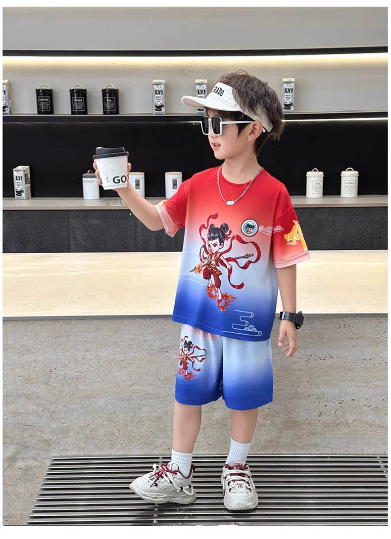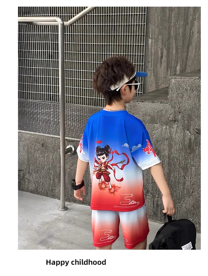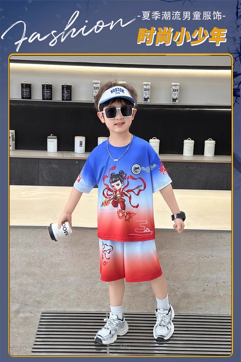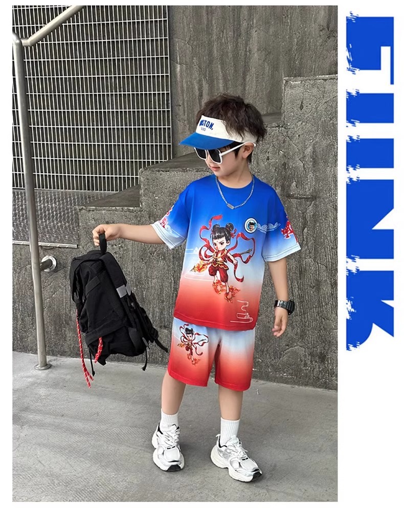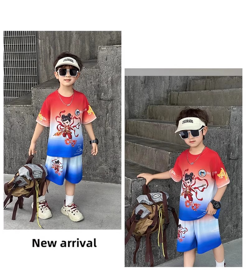 소년 Nezha 여름 속건성 스포츠 수영복 투피스 세트 소년 소형 및 중형 어린이 캐주얼 패션 인기 수영복