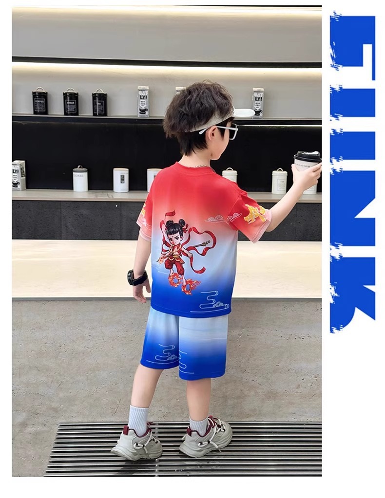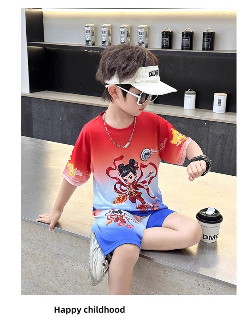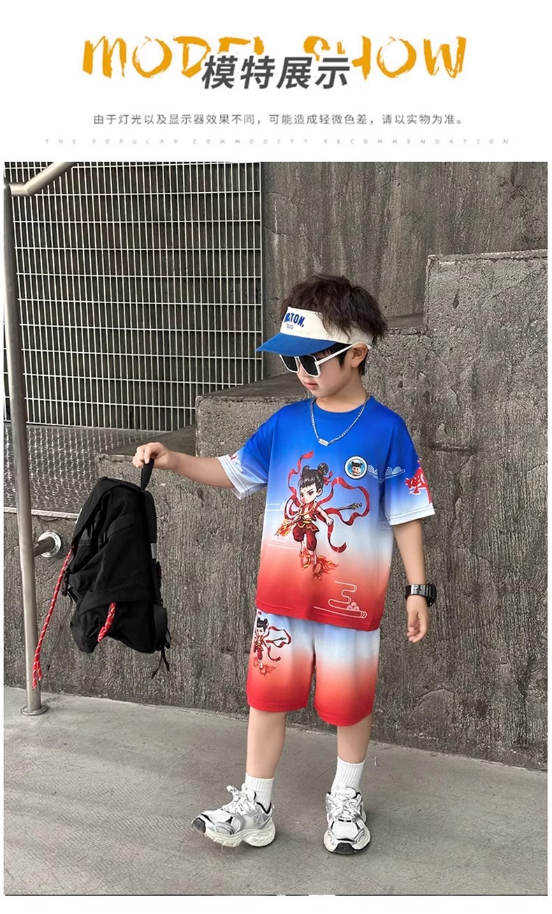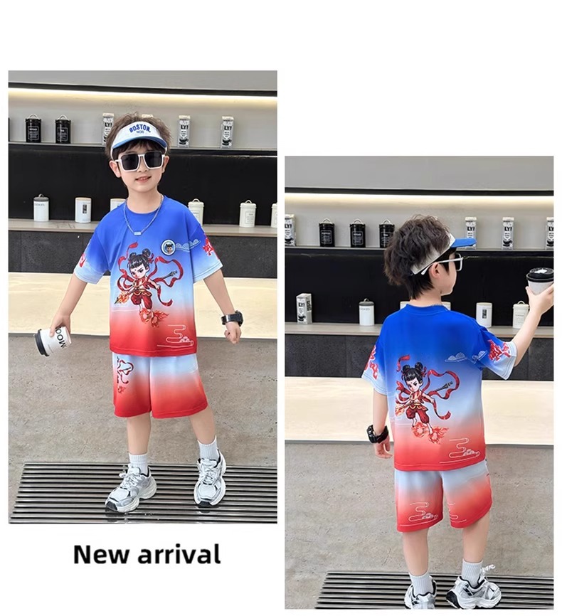 소년 Nezha 여름 속건성 스포츠 수영복 투피스 세트 소년 소형 및 중형 어린이 캐주얼 패션 인기 수영복