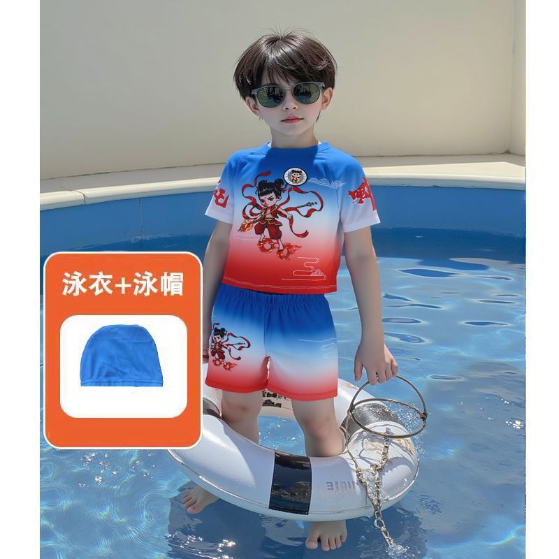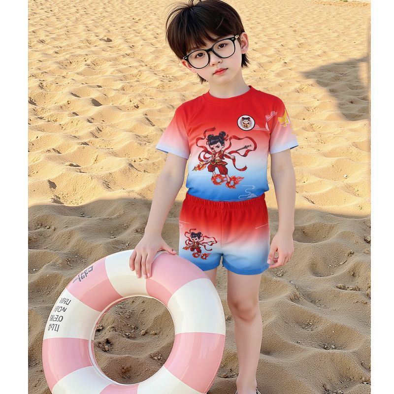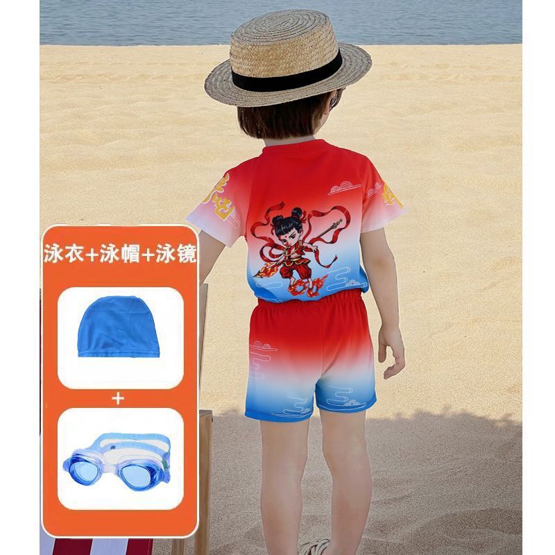 소년 Nezha 여름 속건성 스포츠 수영복 투피스 세트 소년 소형 및 중형 어린이 캐주얼 패션 인기 수영복스토어 가기