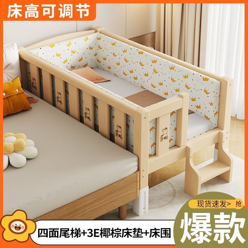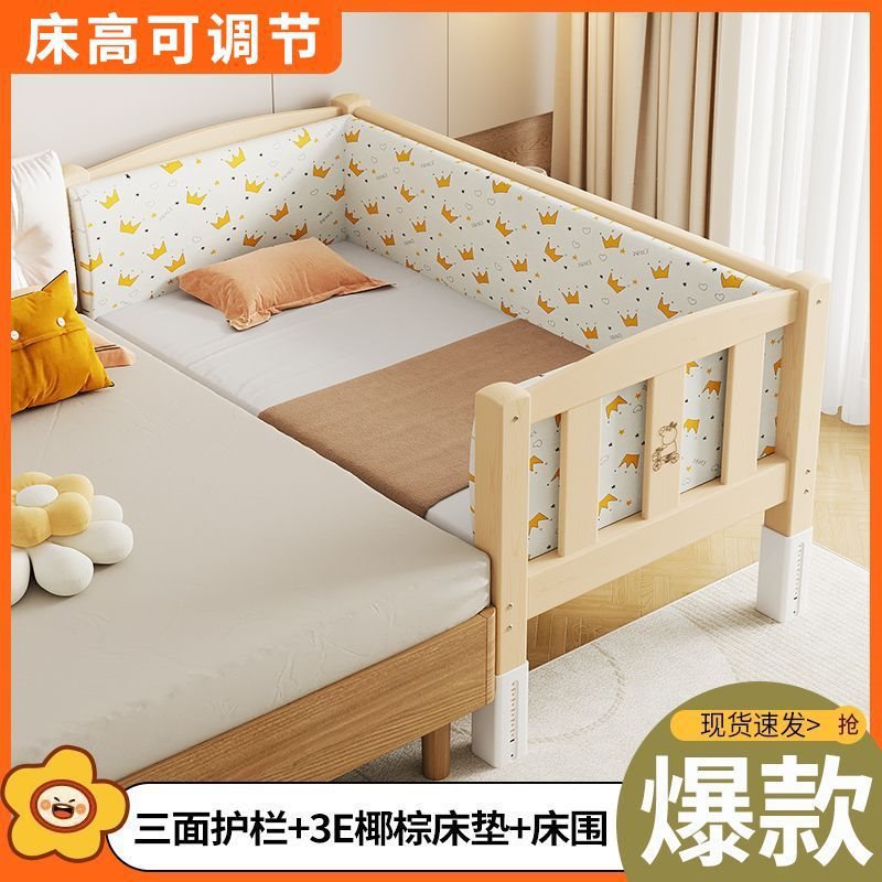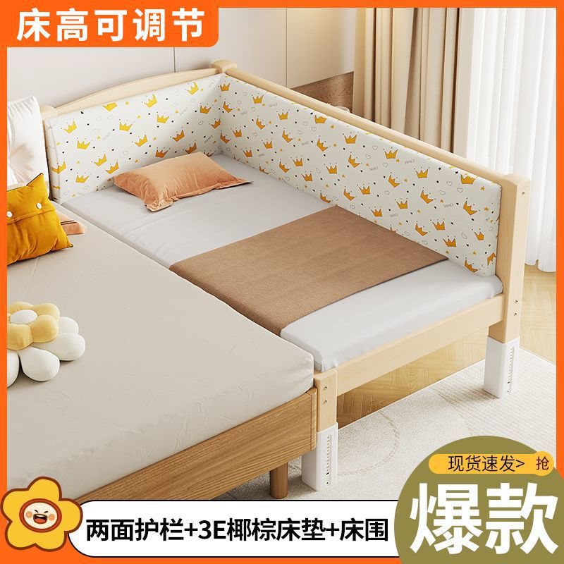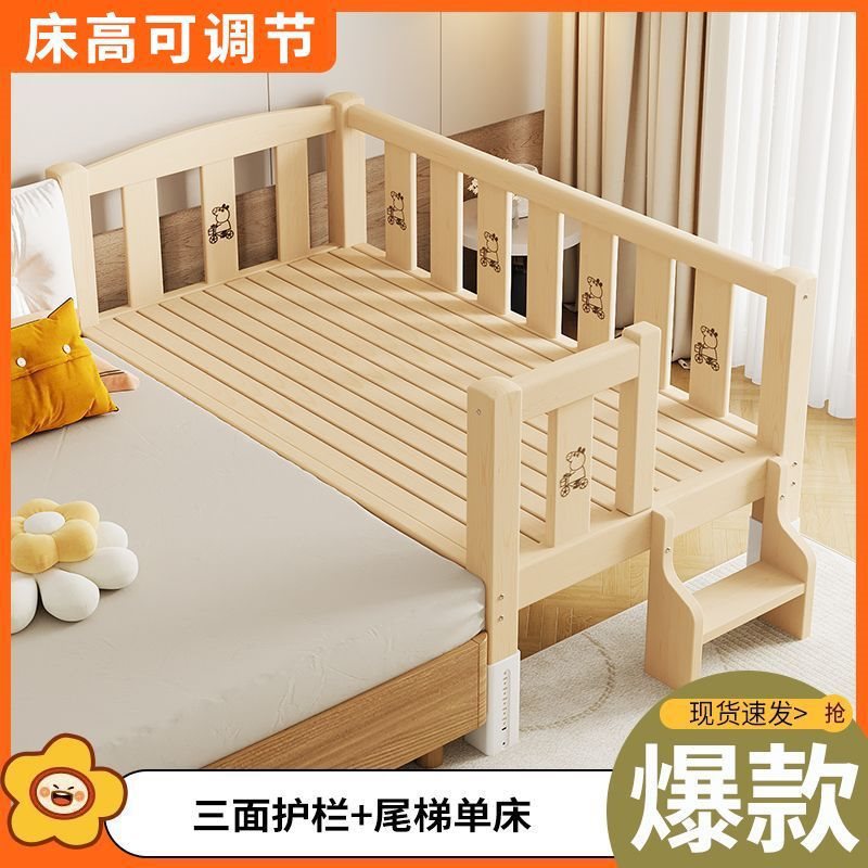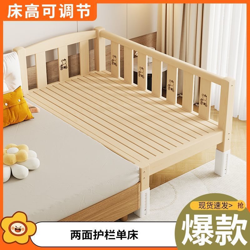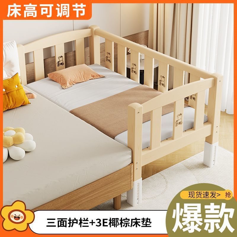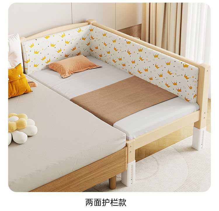 단단한 나무 접합 침대, 넓은 침대 옆, 남녀 아기 싱글 침대, 가드 레일이 있는 어린이 침대, 조절 가능한 유아용 침대