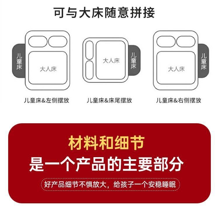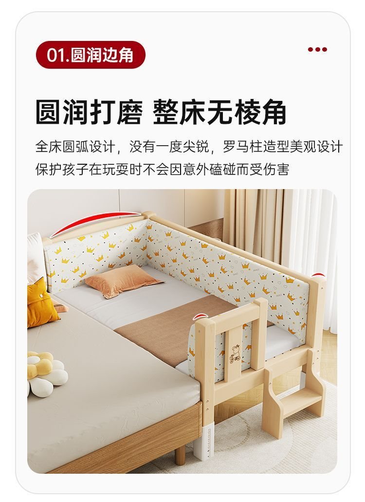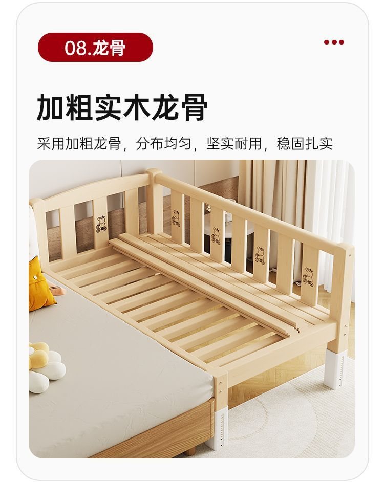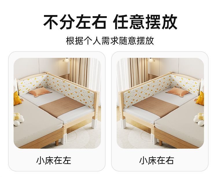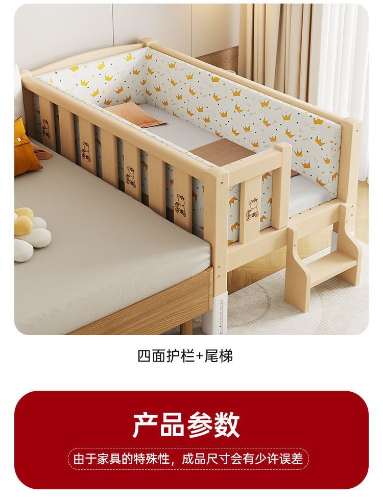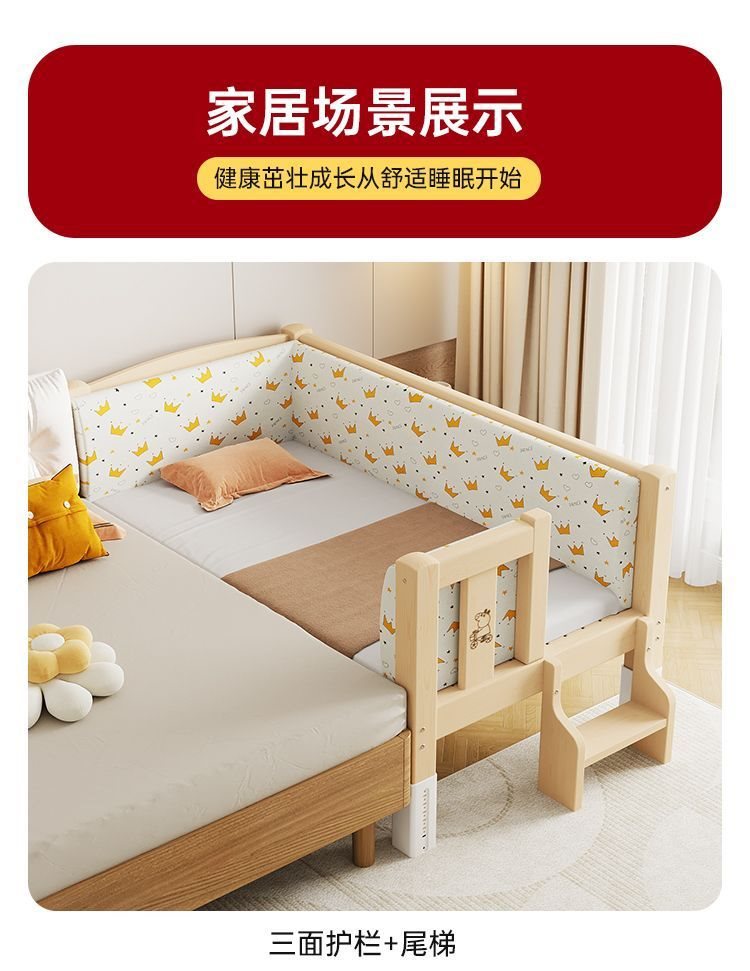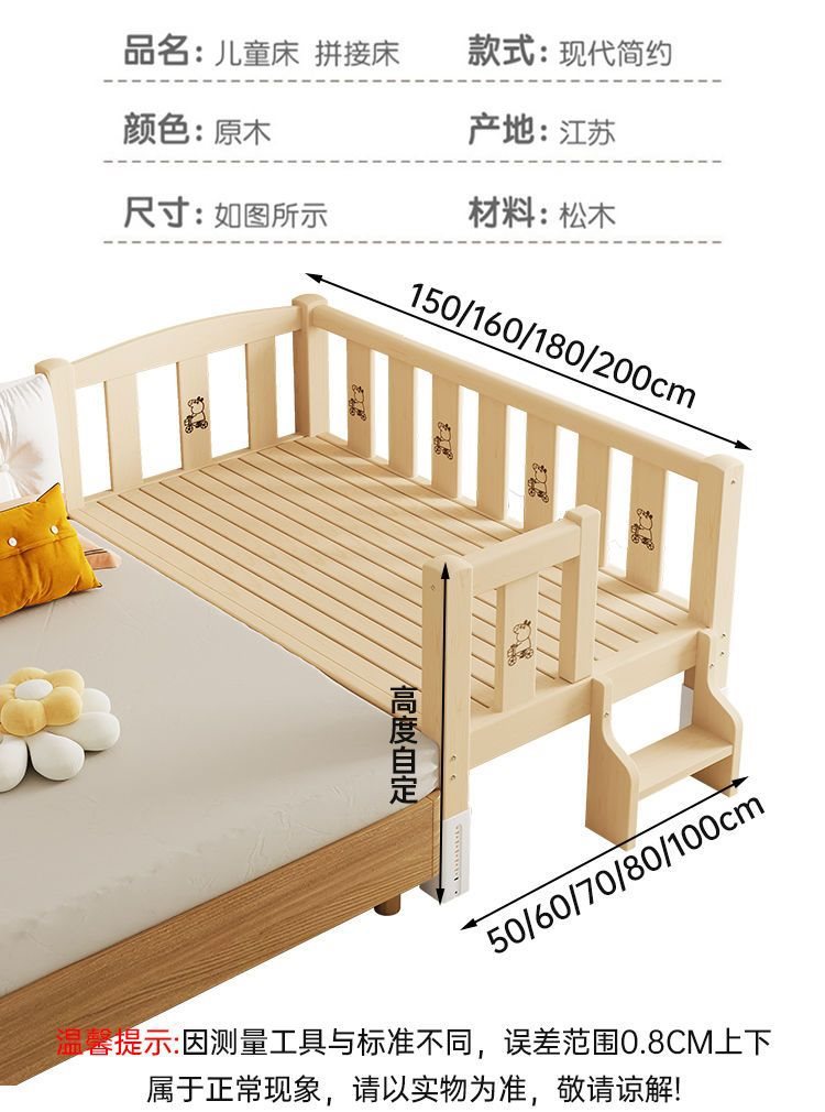 단단한 나무 접합 침대, 넓은 침대 옆, 남녀 아기 싱글 침대, 가드 레일이 있는 어린이 침대, 조절 가능한 유아용 침대