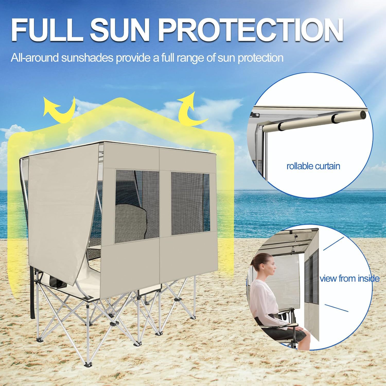 태양 보호를 위한 2인용 야외용 차양 의자, 휴대용 연인 의자 TK 인기 모델 Yuxiao 캠핑 비치 의자스토어 가기