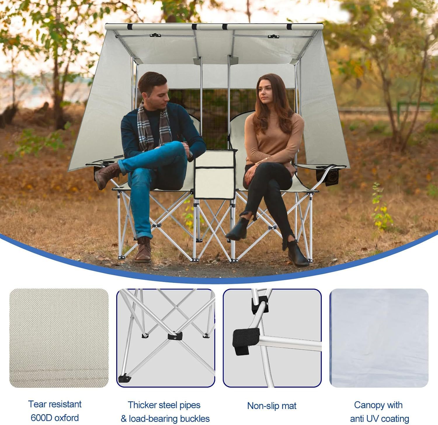 태양 보호를 위한 2인용 야외용 차양 의자, 휴대용 연인 의자 TK 인기 모델 Yuxiao 캠핑 비치 의자
