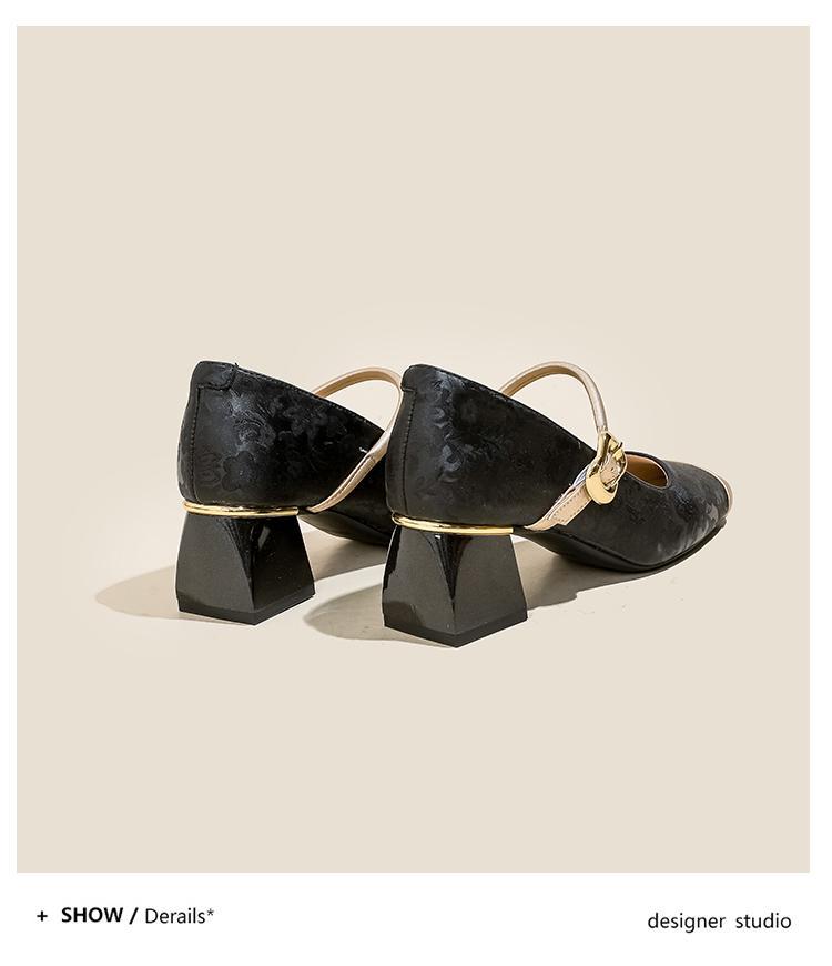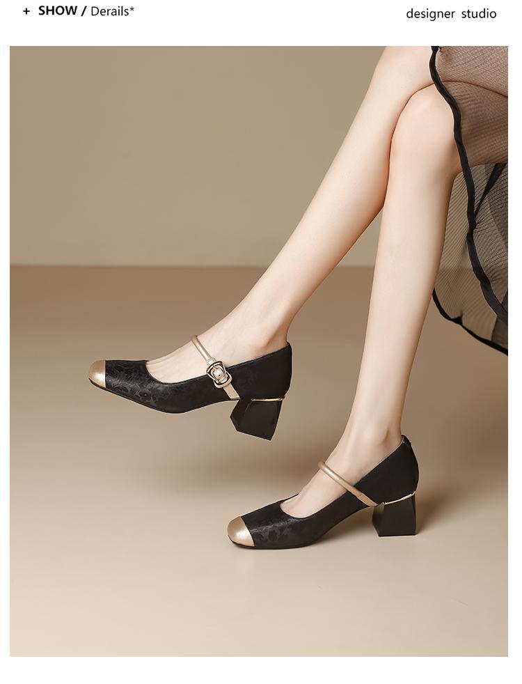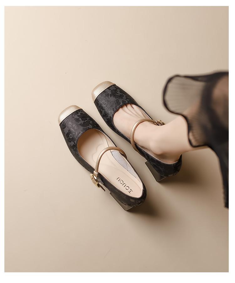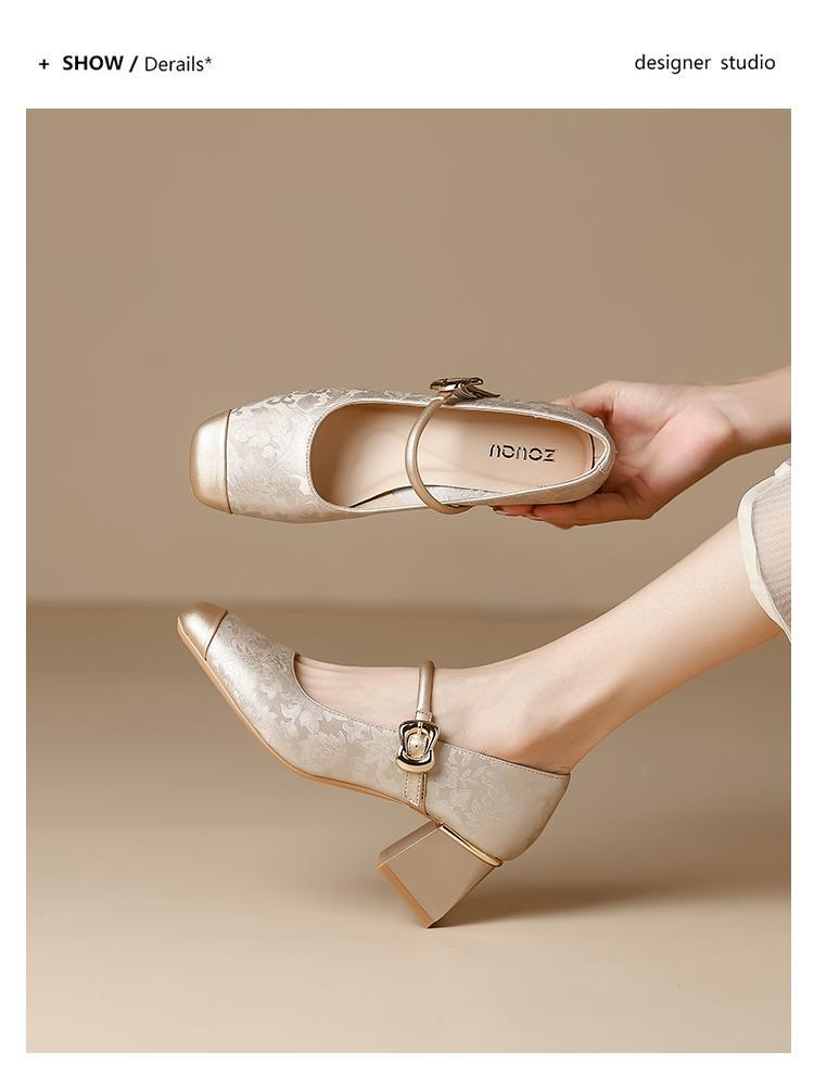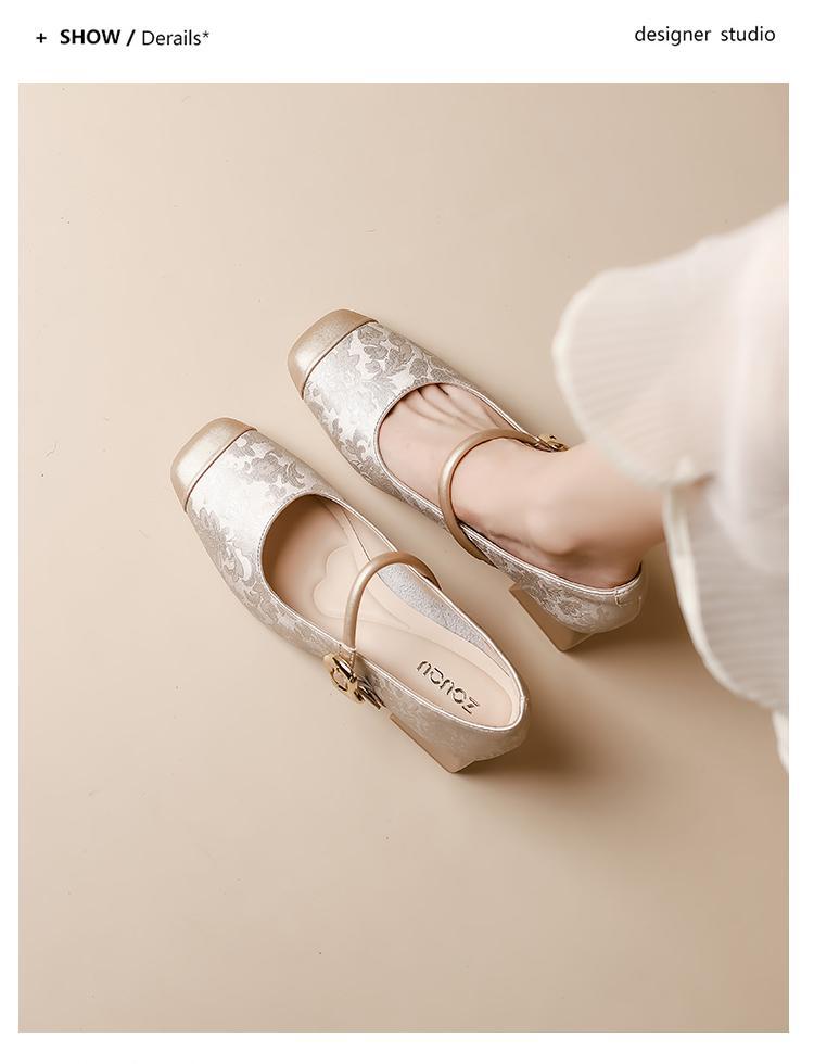 새로운 중국 스타일의 진주 작은 신발 2025 작은 향기 스타일 복고풍 다목적 두꺼운 굽 스퀘어 토우 얕은 입 여성 신발 치파오