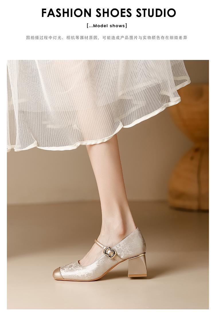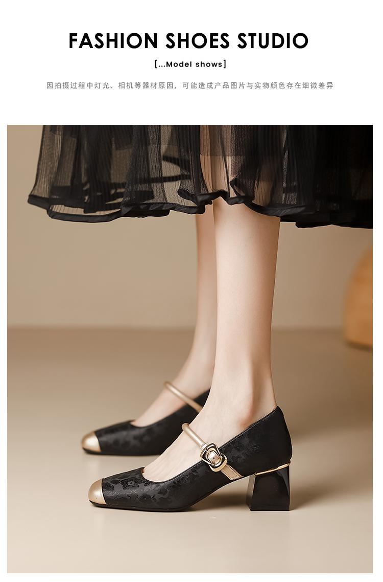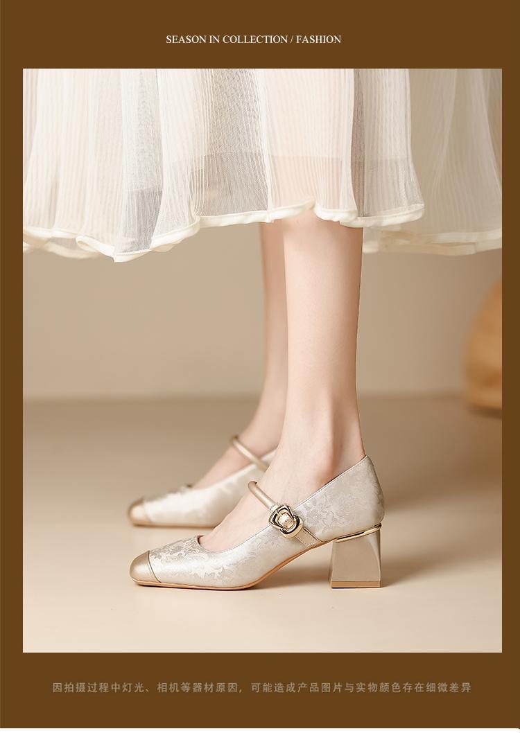 새로운 중국 스타일의 진주 작은 신발 2025 작은 향기 스타일 복고풍 다목적 두꺼운 굽 스퀘어 토우 얕은 입 여성 신발 치파오스토어 가기