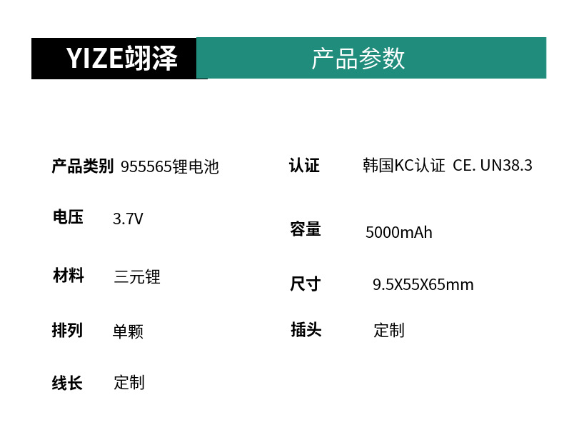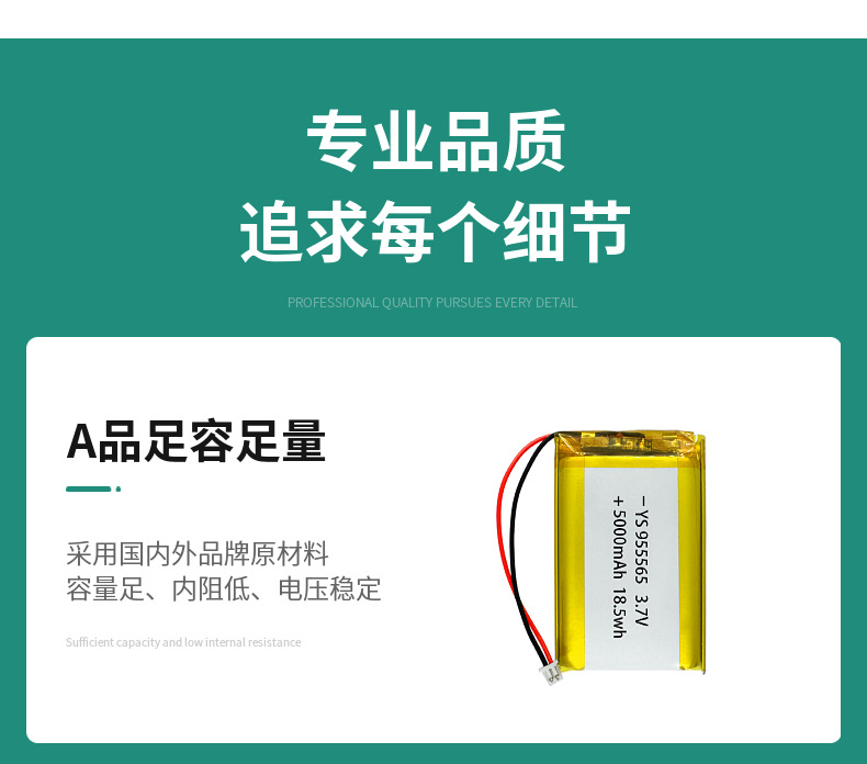 955565 리튬 폴리머 배터리 5000mAh3.7V 휴대용 스피커 청소 로봇 모바일 전원 공급 장치