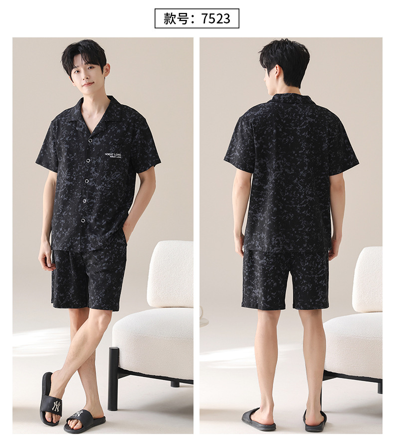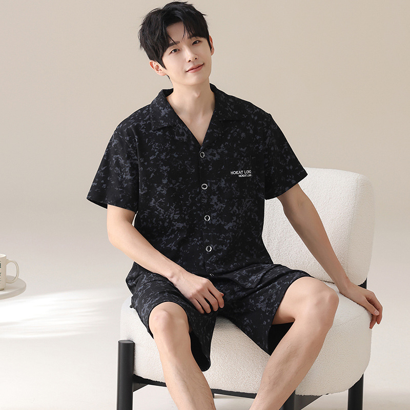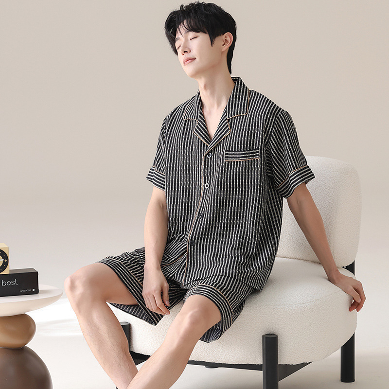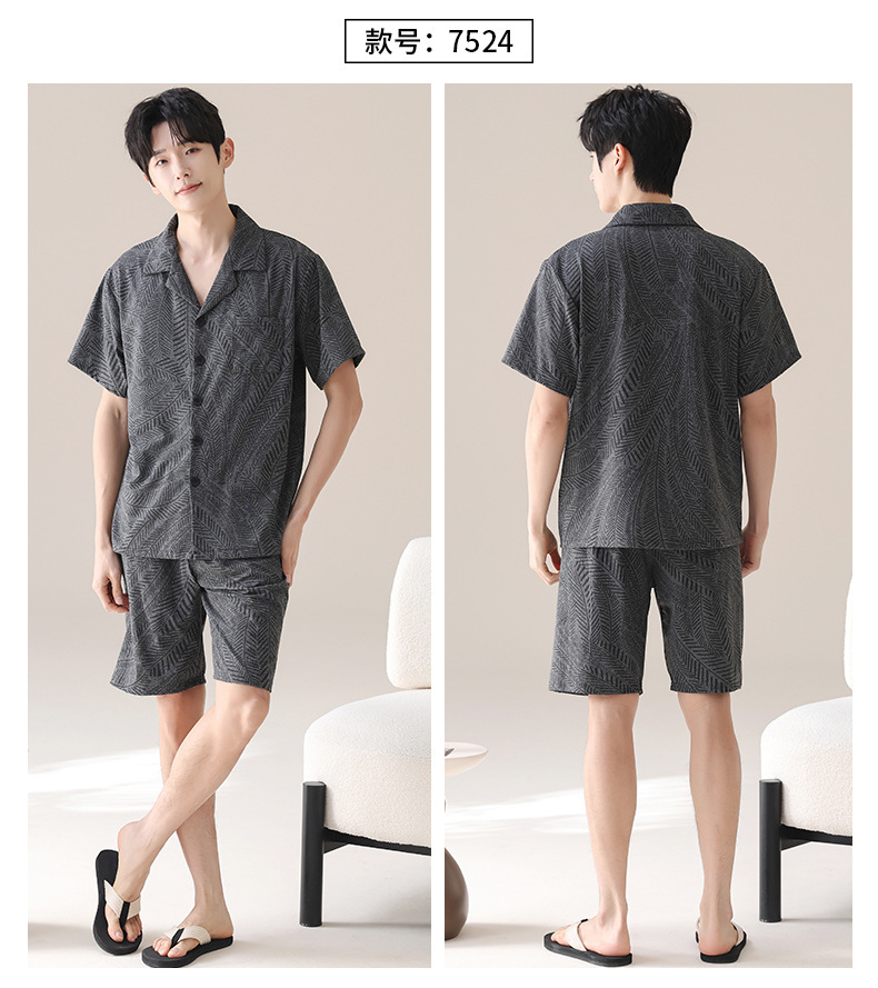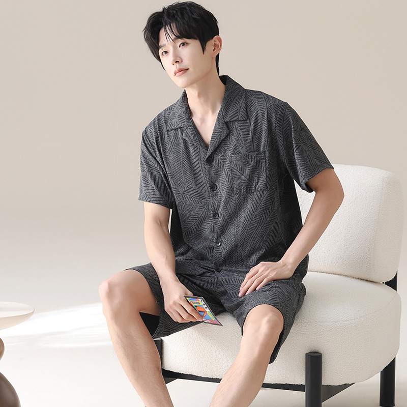 남성용 여름 새 잠옷, 빗질면 가디건, 반팔 반바지, 홈웨어, 플러스 사이즈 루즈 슈트, 200파운드 4XL스토어 가기