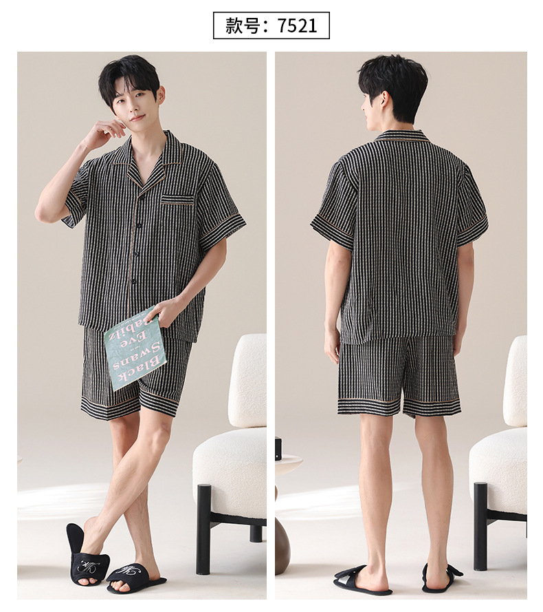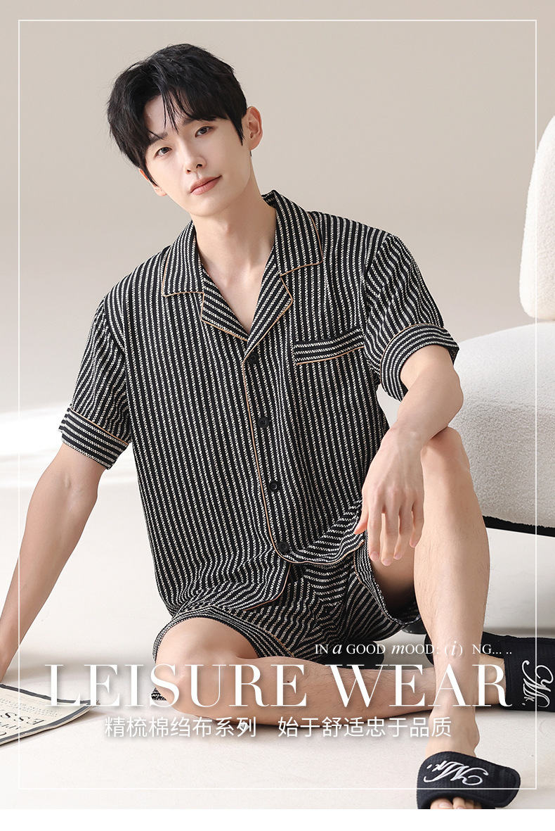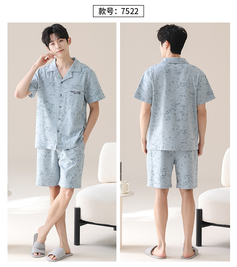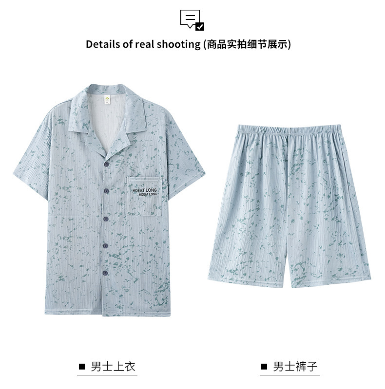남성용 여름 새 잠옷, 빗질면 가디건, 반팔 반바지, 홈웨어, 플러스 사이즈 루즈 슈트, 200파운드 4XL스토어 가기