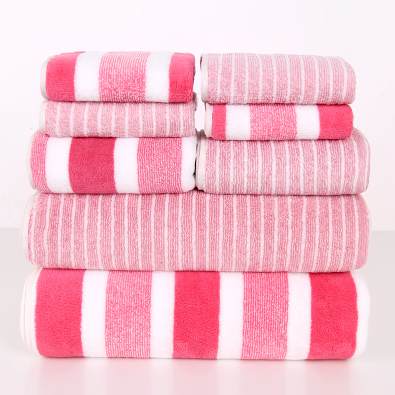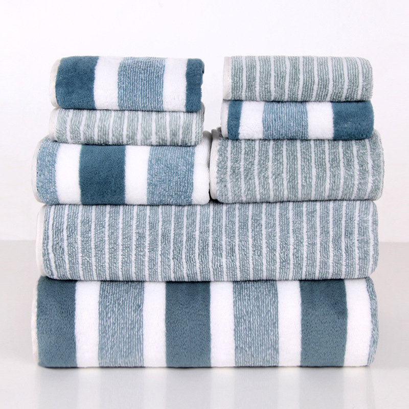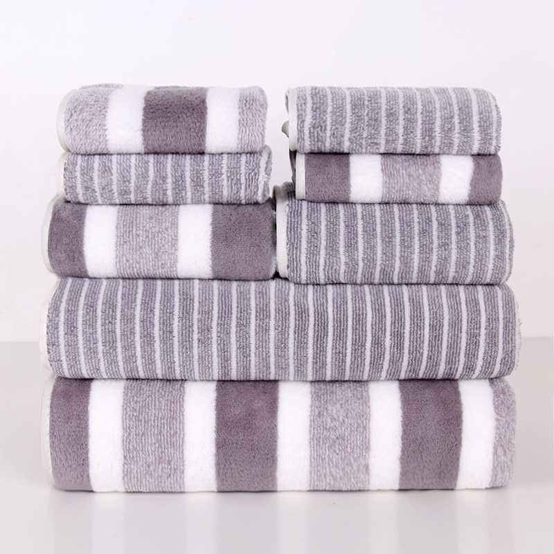 가정용 두껍고 부드럽고 흡수성이 뛰어나며 보푸라기가 없는 배송을 위한 크로스보더 산호 벨벳 넓고 좁은 수건과 목욕 수건 조합 8종 세트