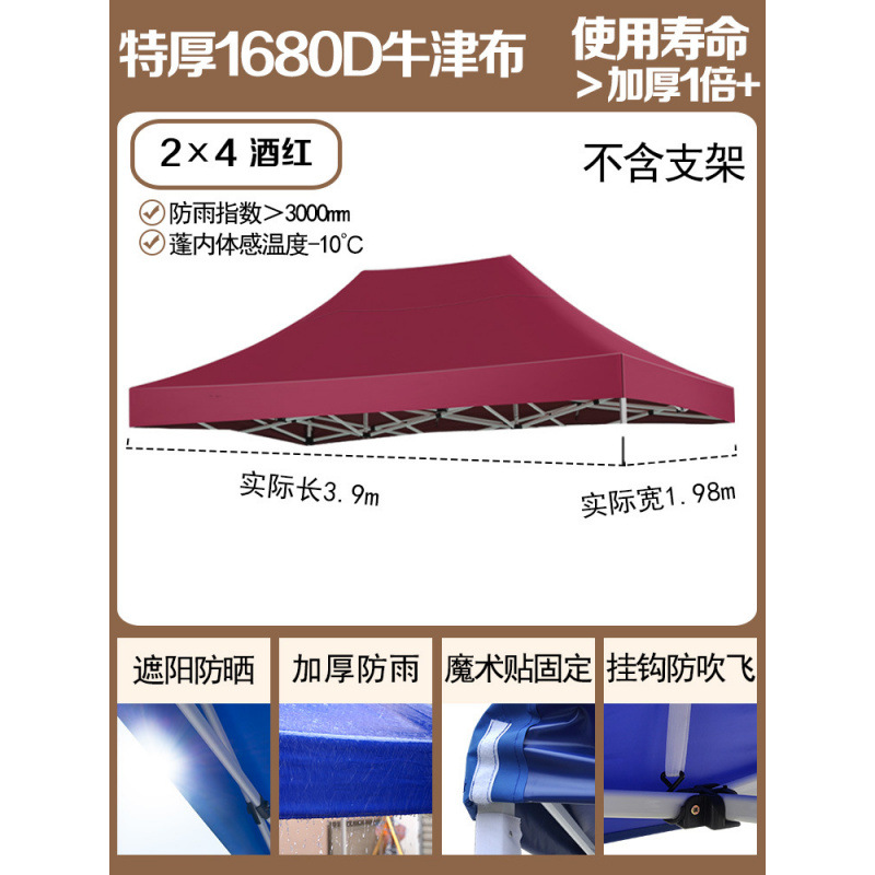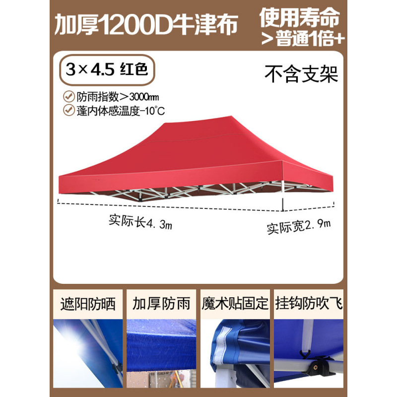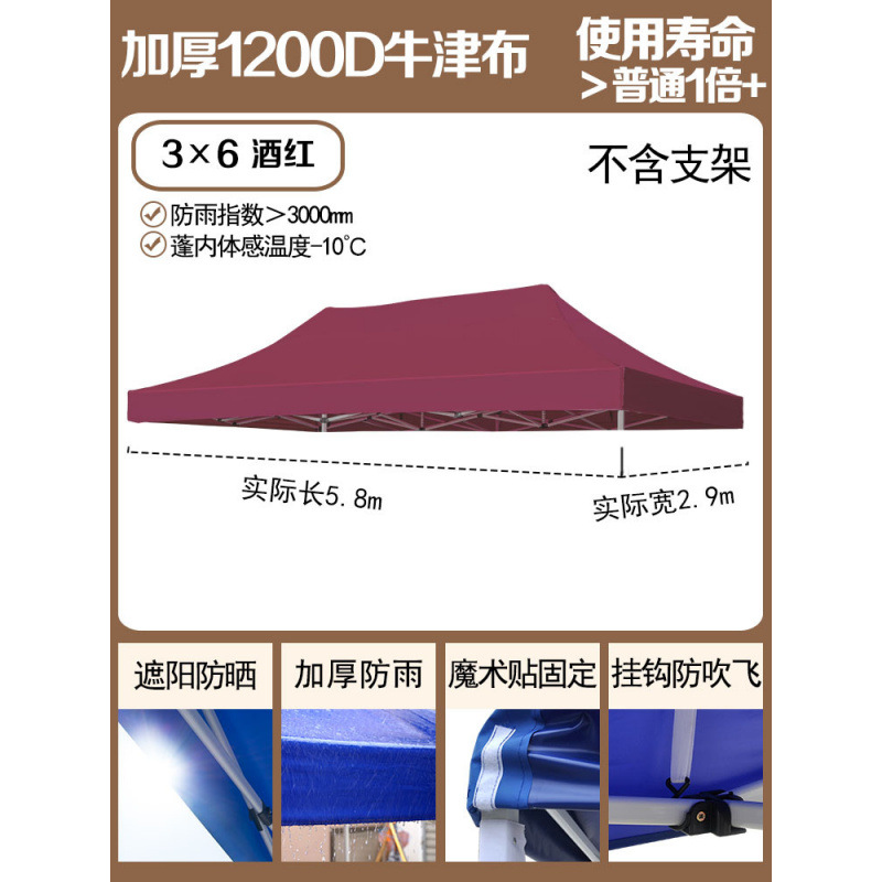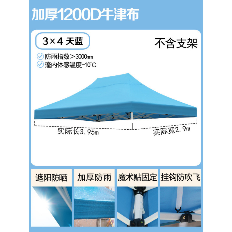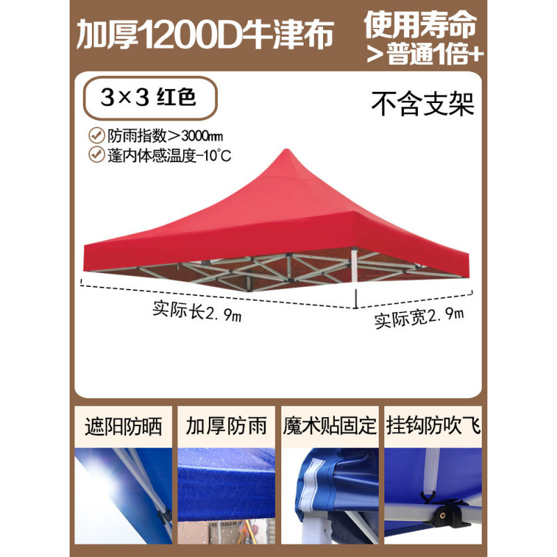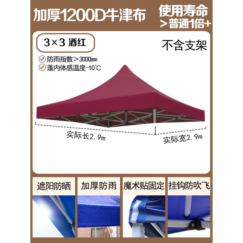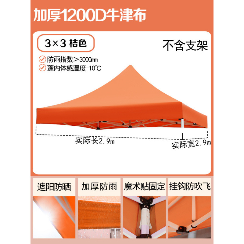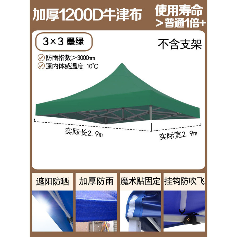 4각형 텐트 지붕 천막 3x 3m 두꺼운 방수 캔버스 야외 천막 천막 바닥 매점 태양 우산 천