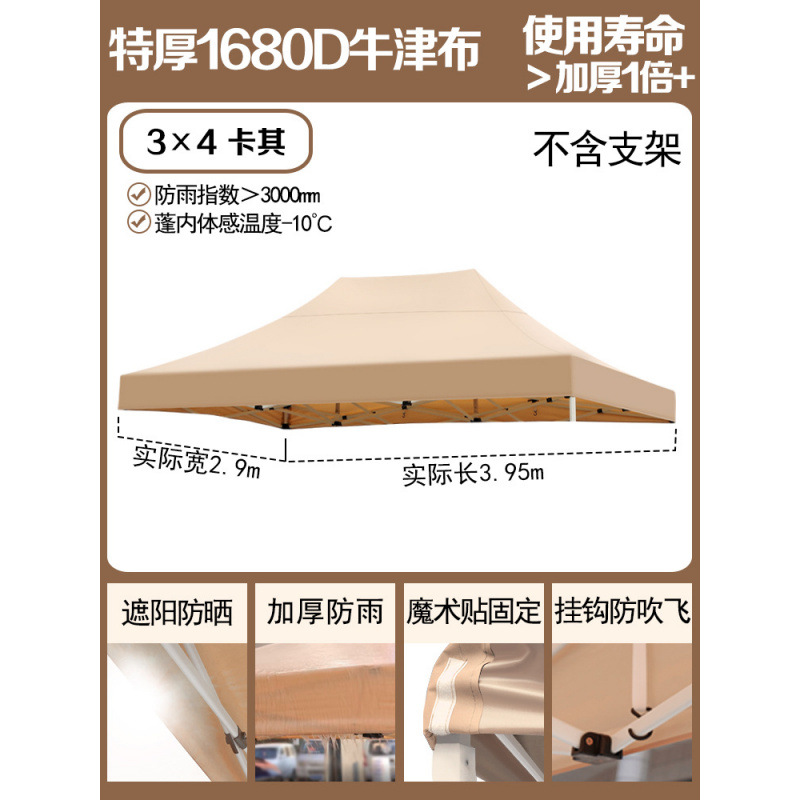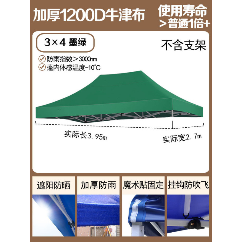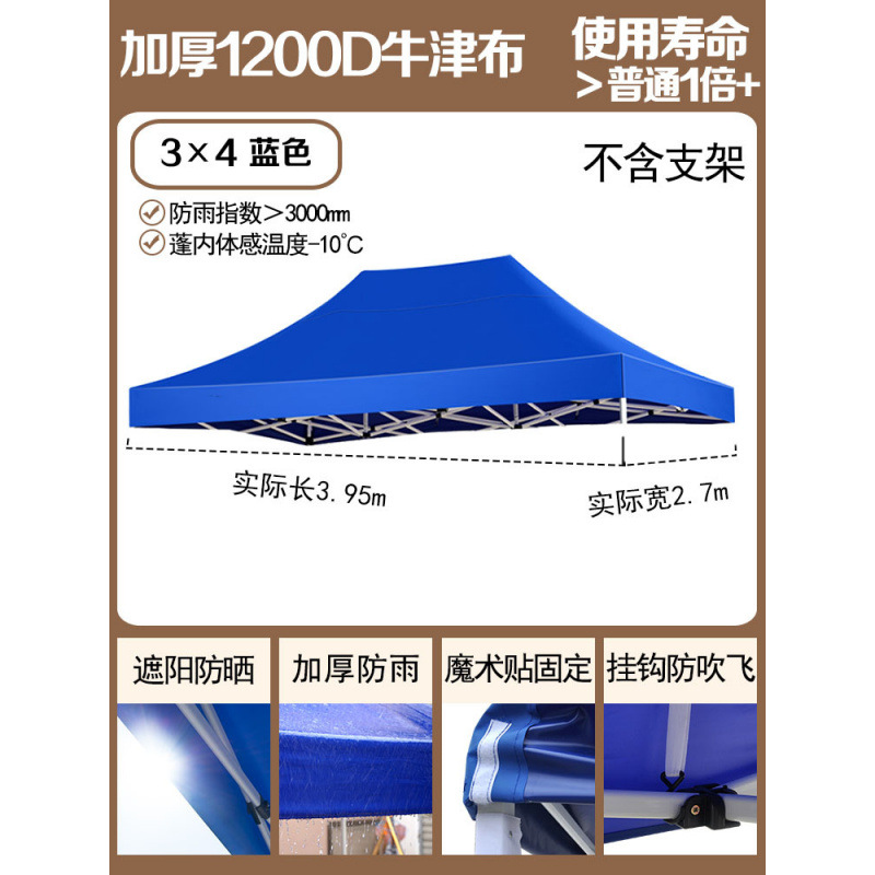 4각형 텐트 지붕 천막 3x 3m 두꺼운 방수 캔버스 야외 천막 천막 바닥 매점 태양 우산 천스토어 가기