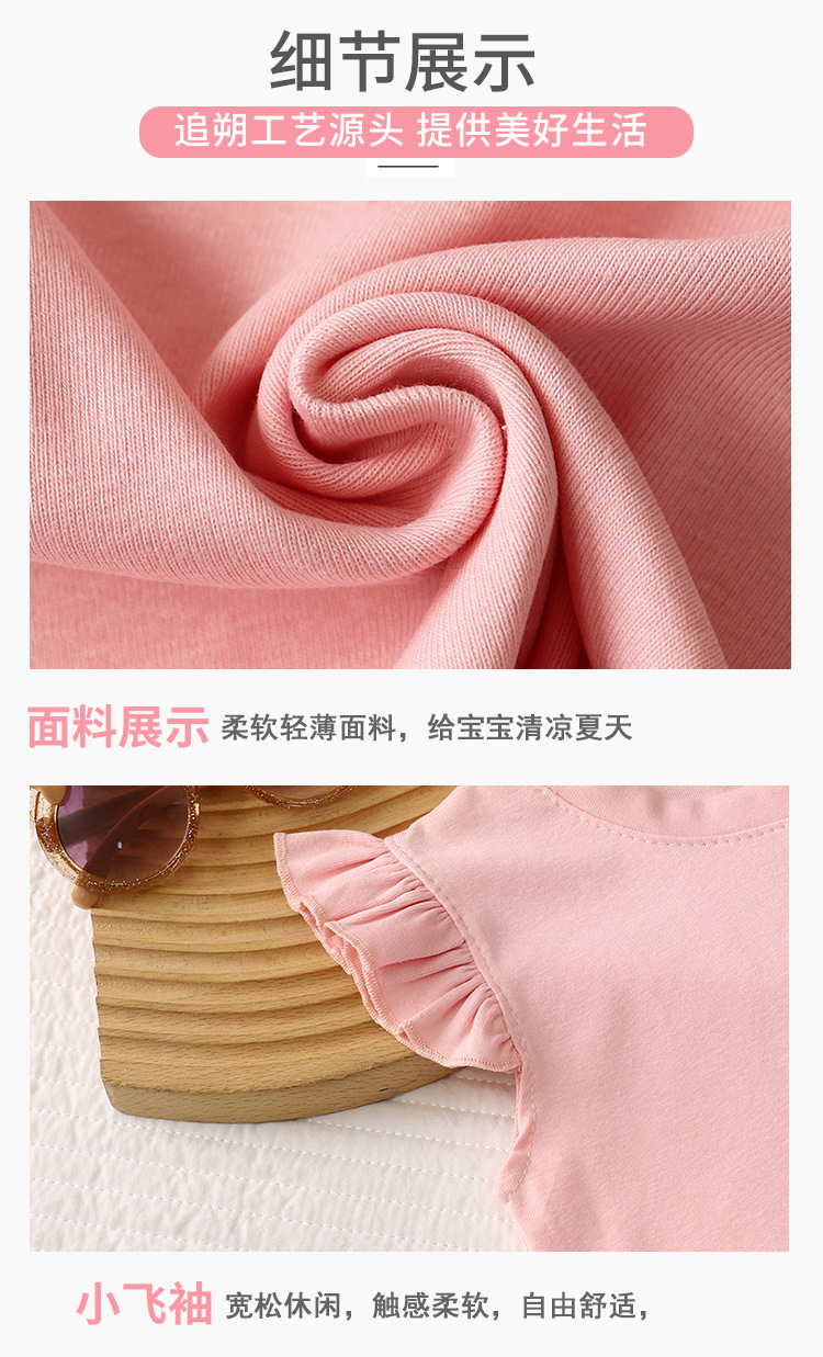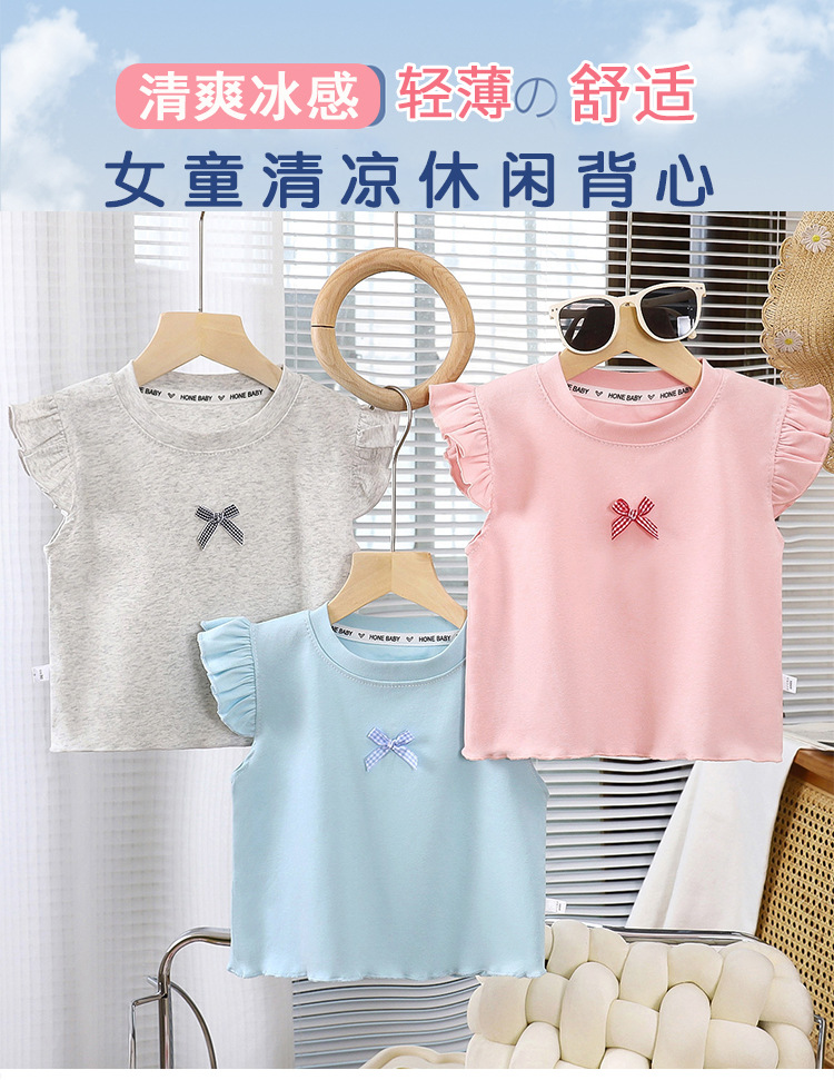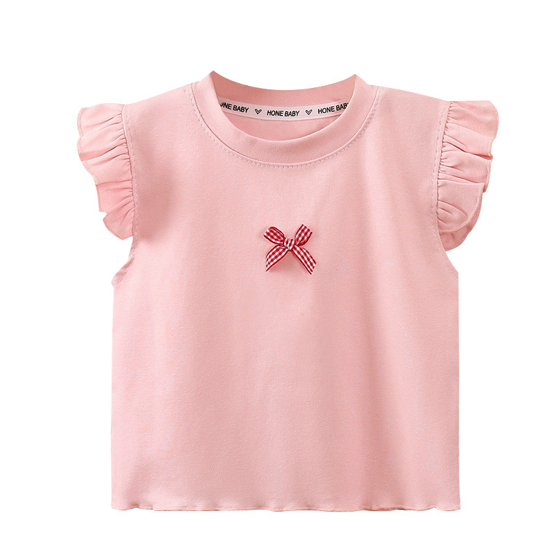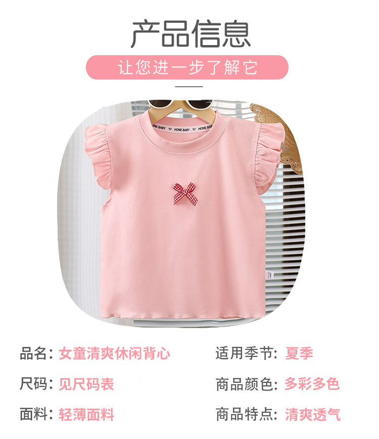 여아용 조끼, 얇은 면 반팔, 부드럽고 통기성이 뛰어나고 패셔너블한 베이비 티셔츠, 패셔너블한 아동용 플라이 슬리브 탑 트렌드