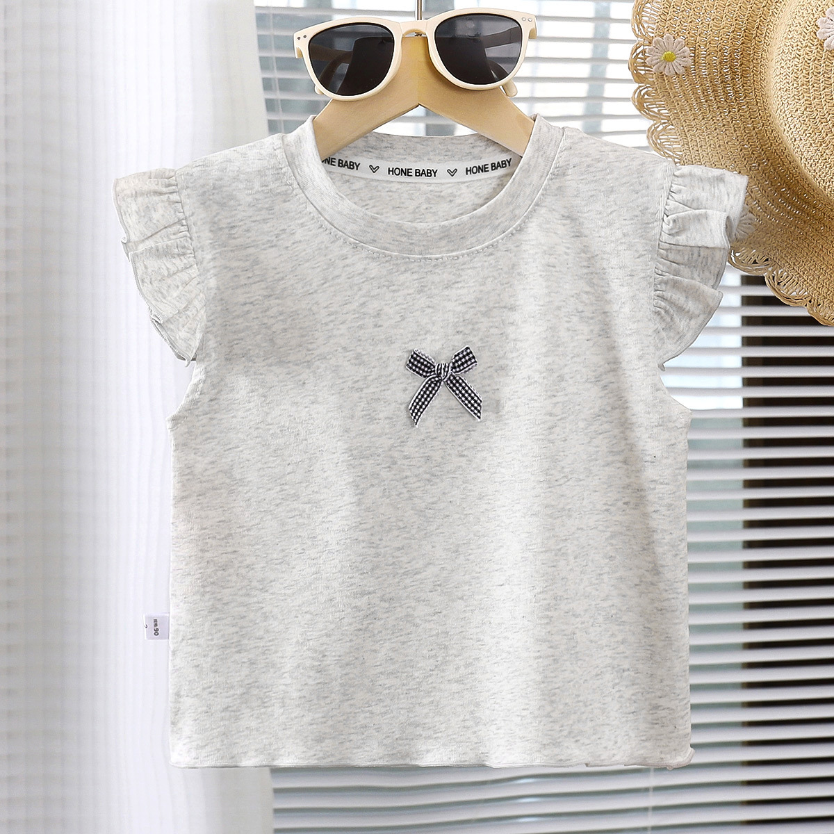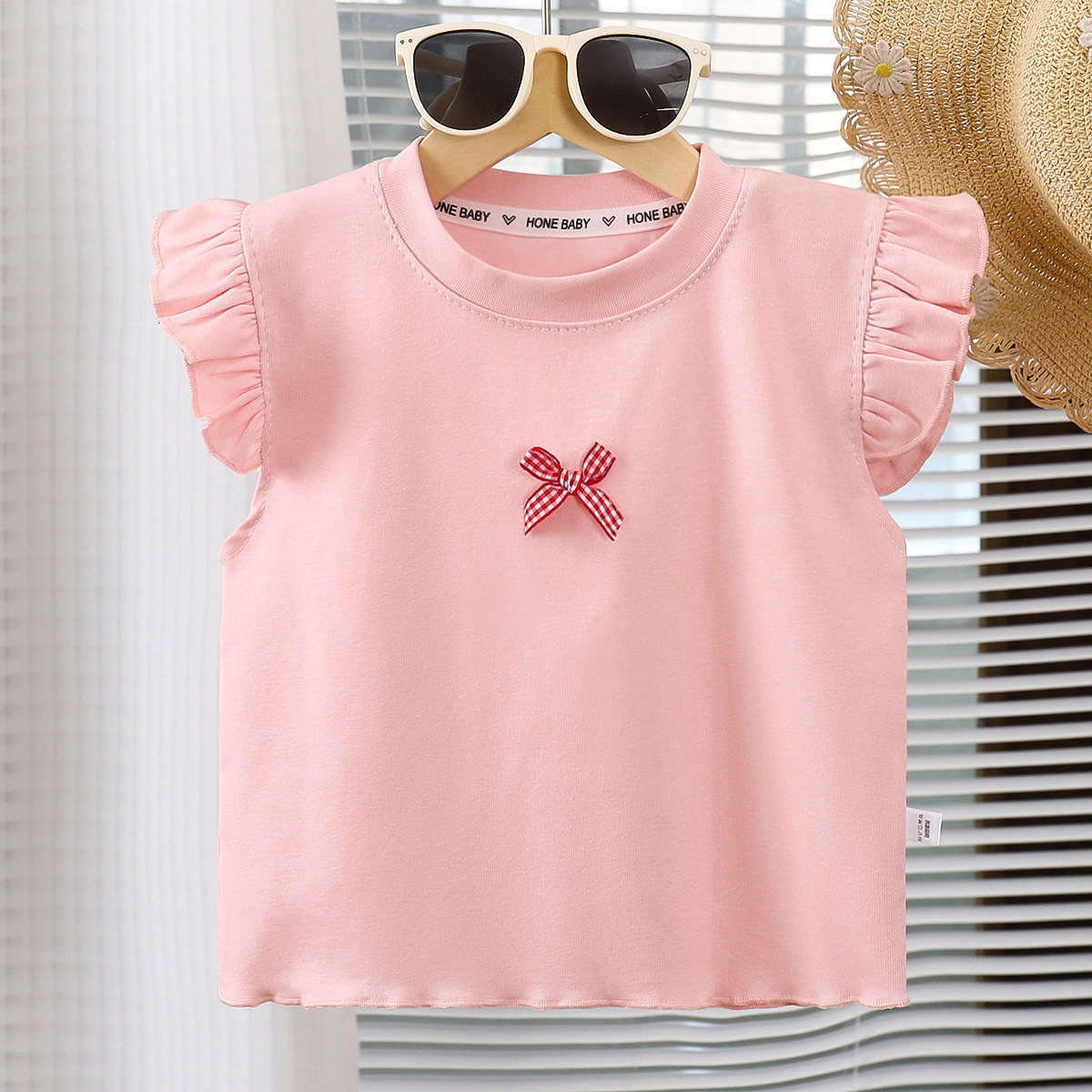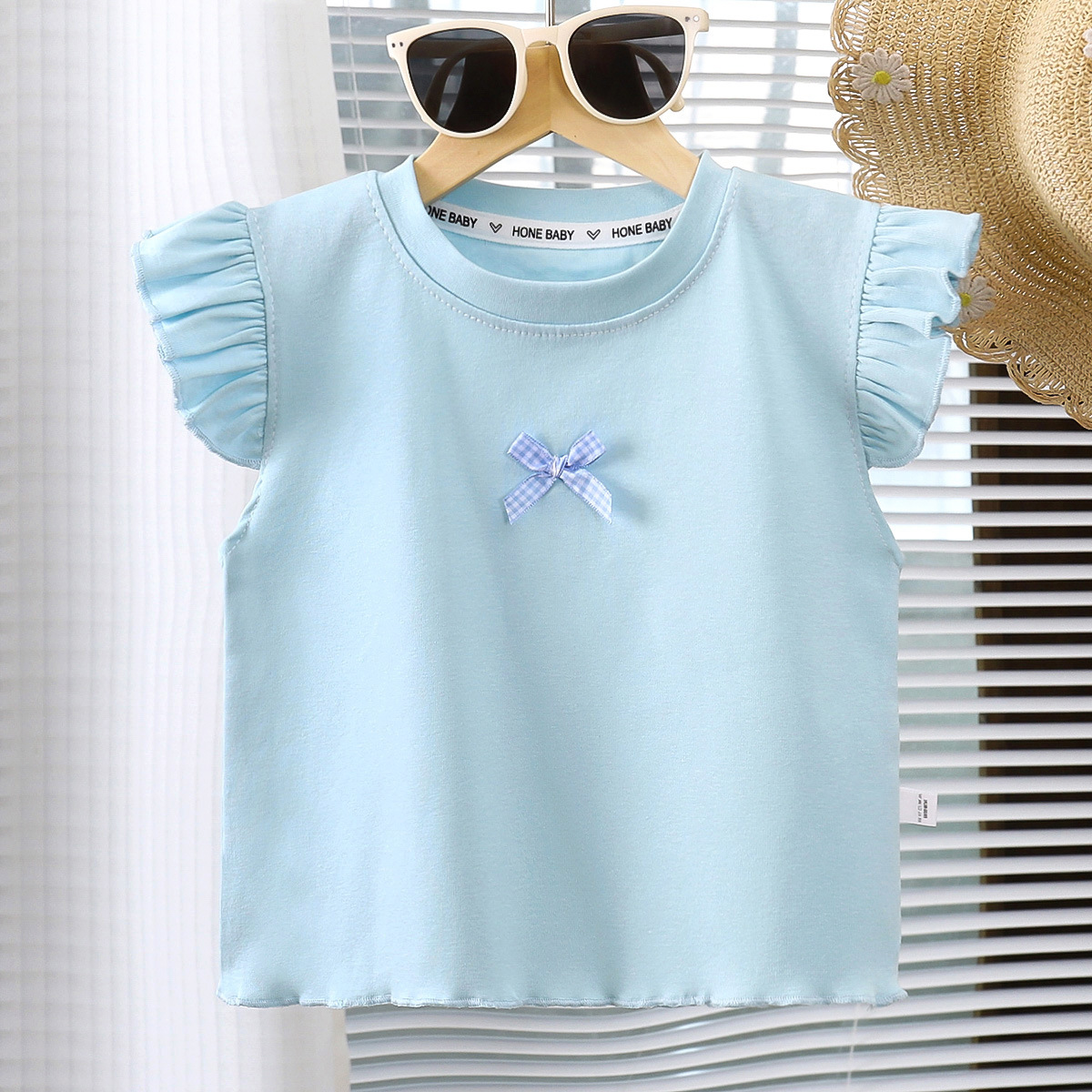 여아용 조끼, 얇은 면 반팔, 부드럽고 통기성이 뛰어나고 패셔너블한 베이비 티셔츠, 패셔너블한 아동용 플라이 슬리브 탑 트렌드스토어 가기