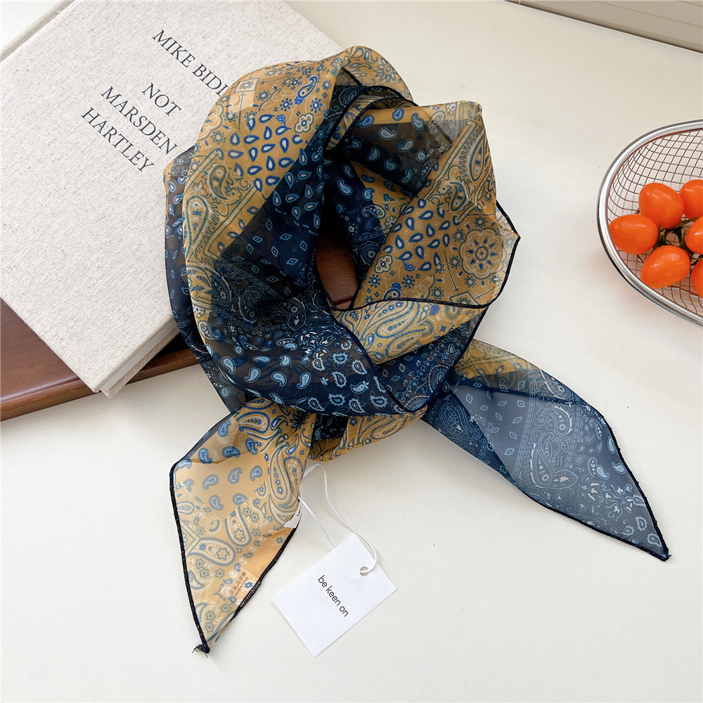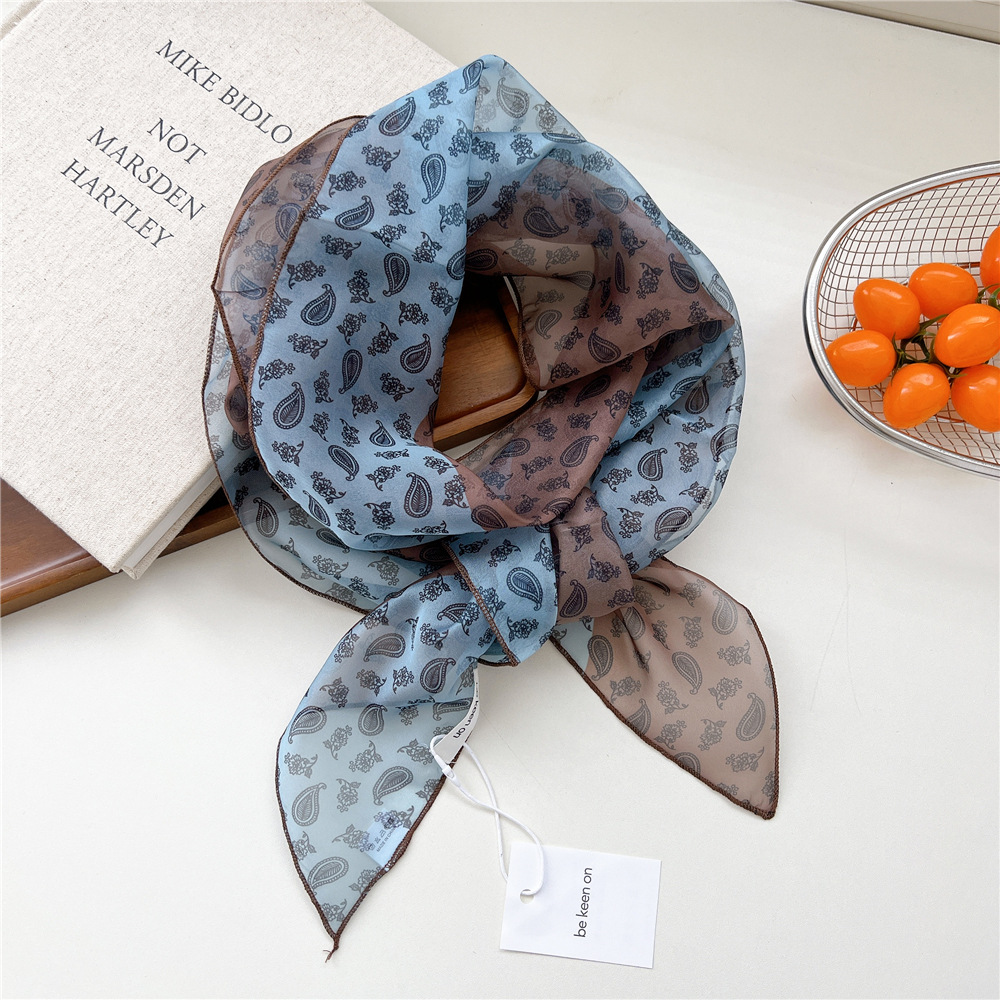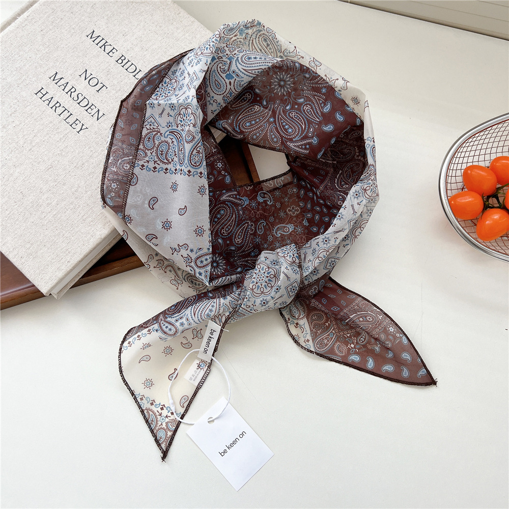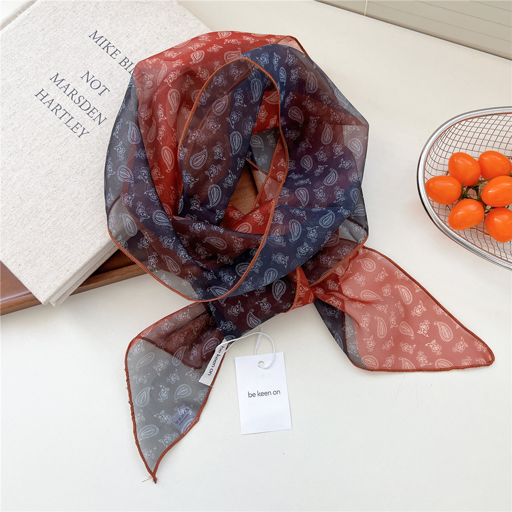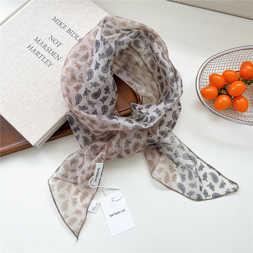 봄, 가을, 여름 여성용 얇고 가벼운 단층 복고풍 캐슈 실크 스카프, 다용도 머리띠, 긴 대각선 스카프