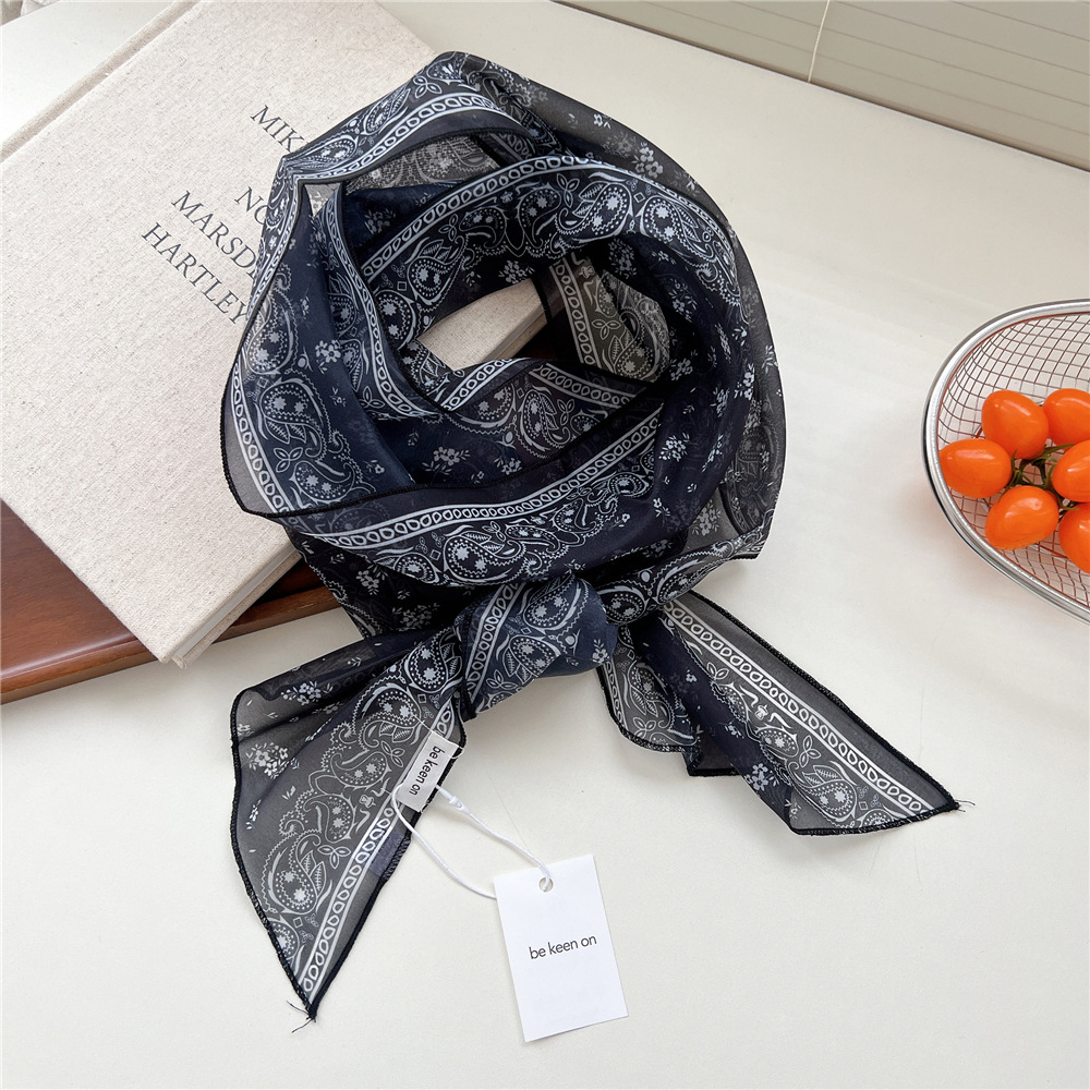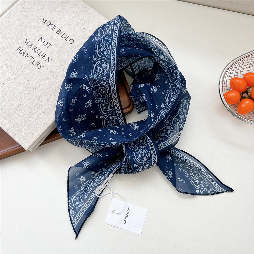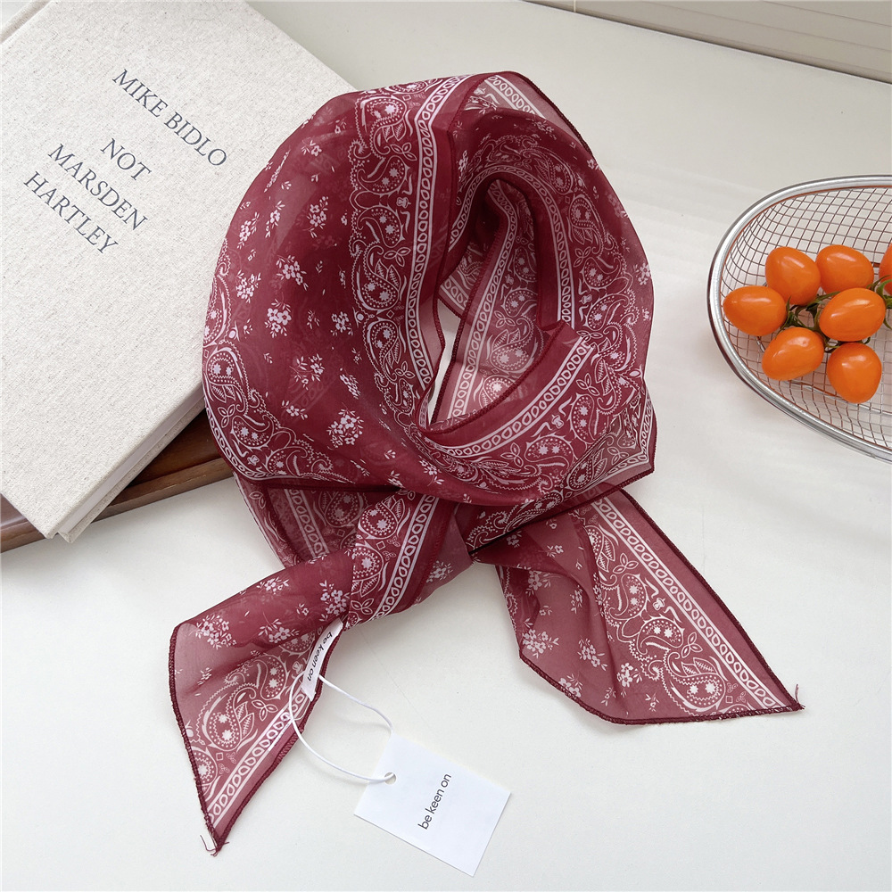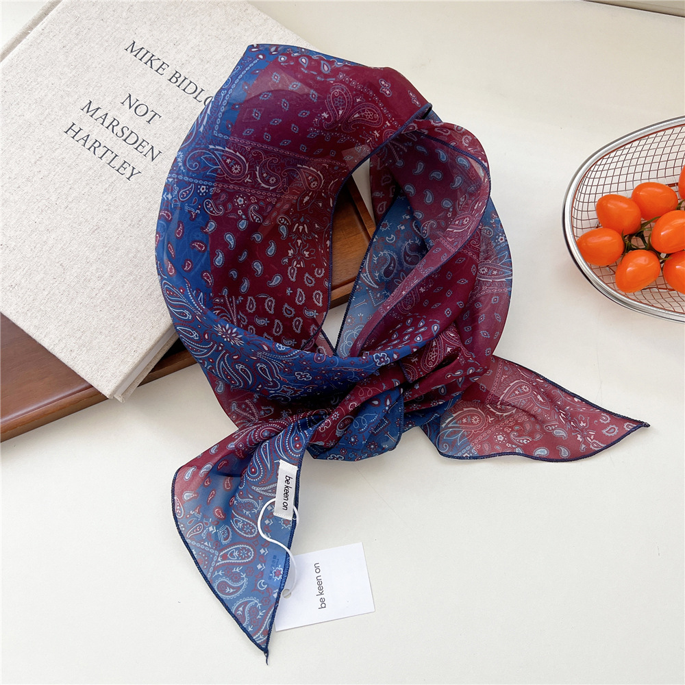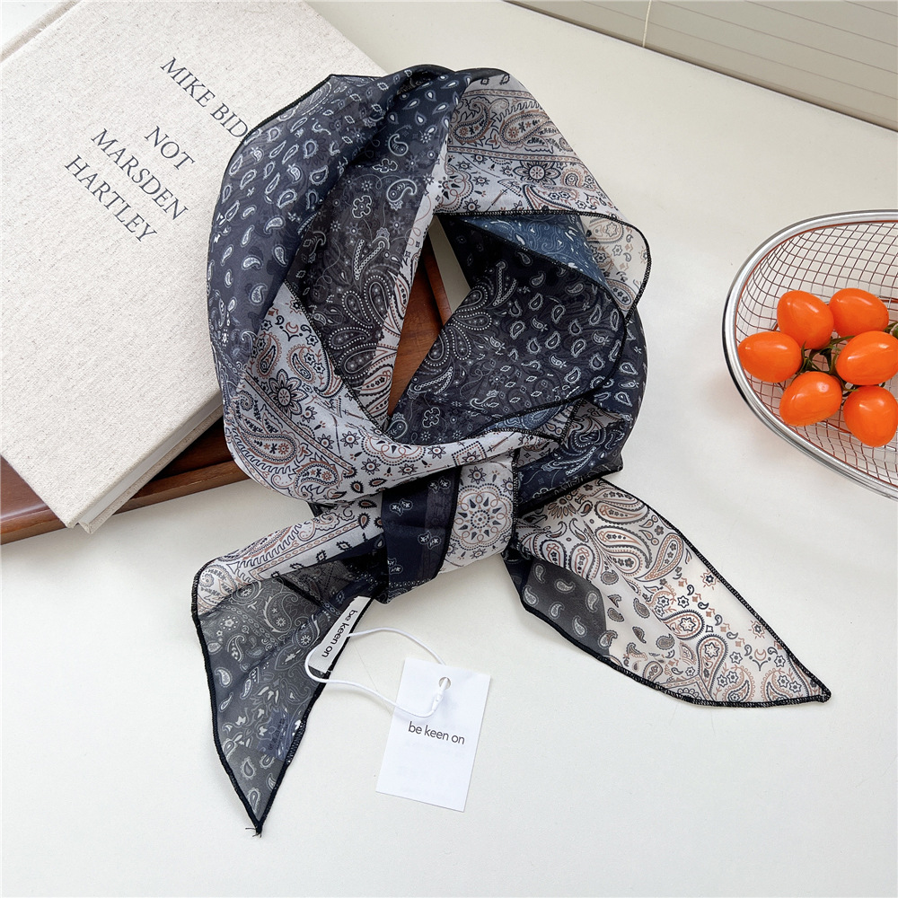 봄, 가을, 여름 여성용 얇고 가벼운 단층 복고풍 캐슈 실크 스카프, 다용도 머리띠, 긴 대각선 스카프
