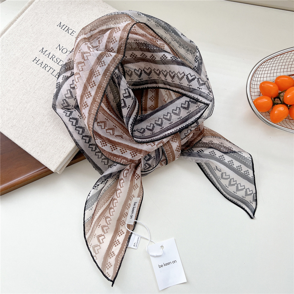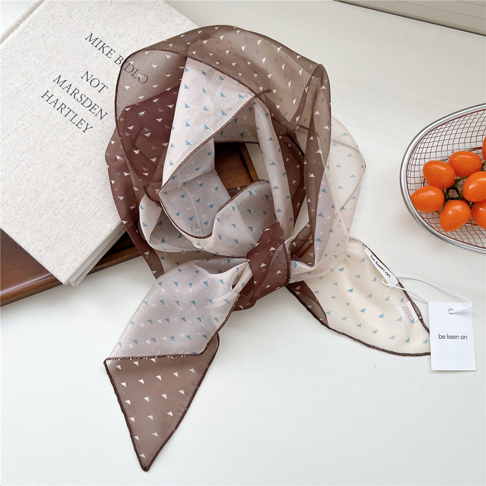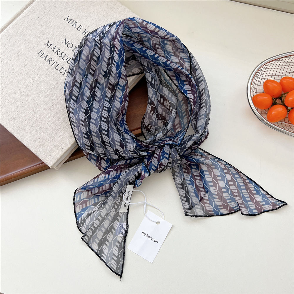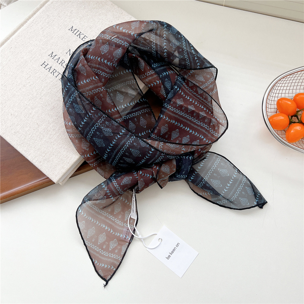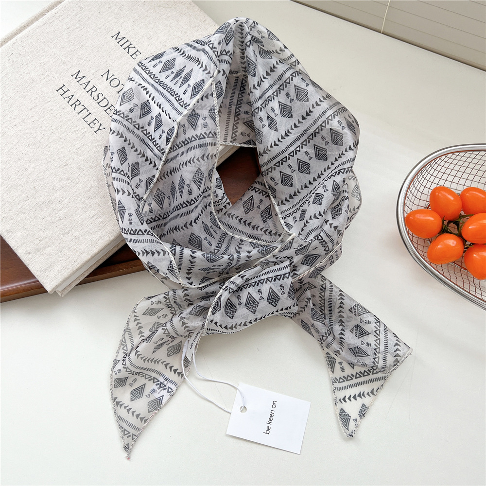 봄, 가을, 여름 여성용 얇고 가벼운 단층 복고풍 캐슈 실크 스카프, 다용도 머리띠, 긴 대각선 스카프