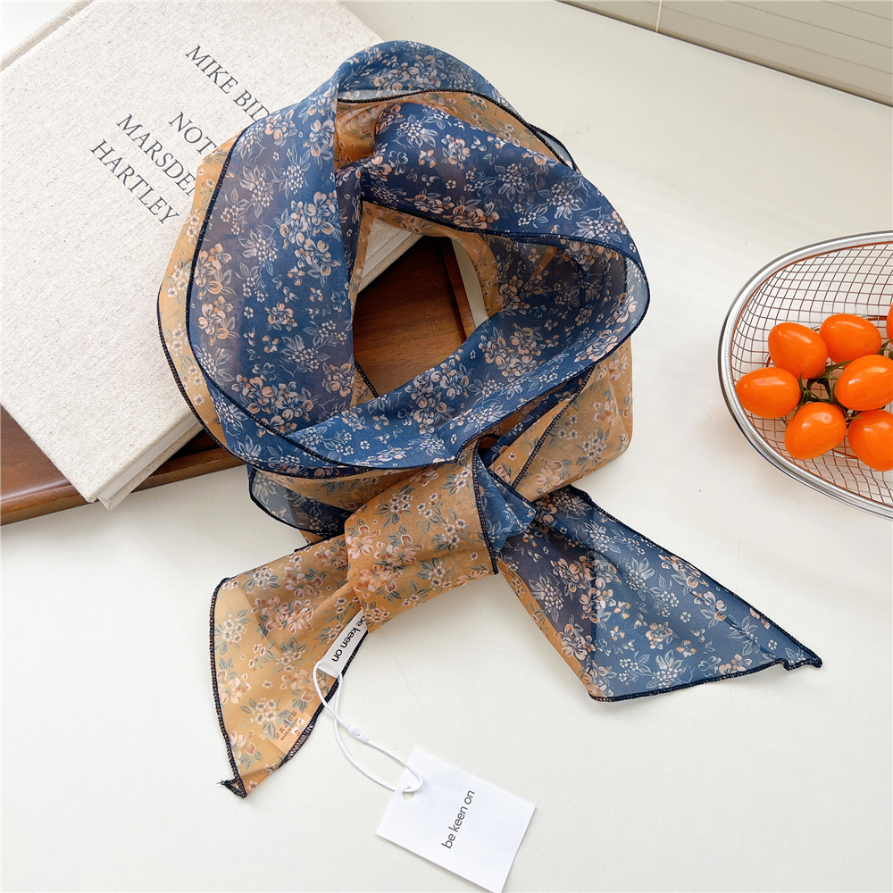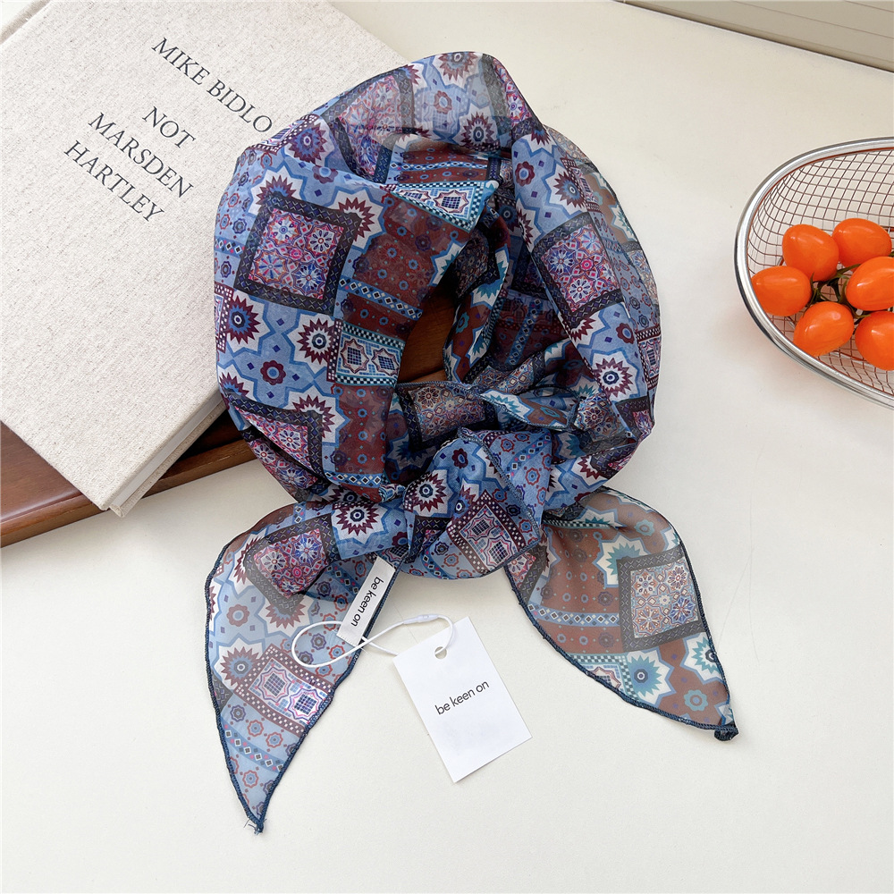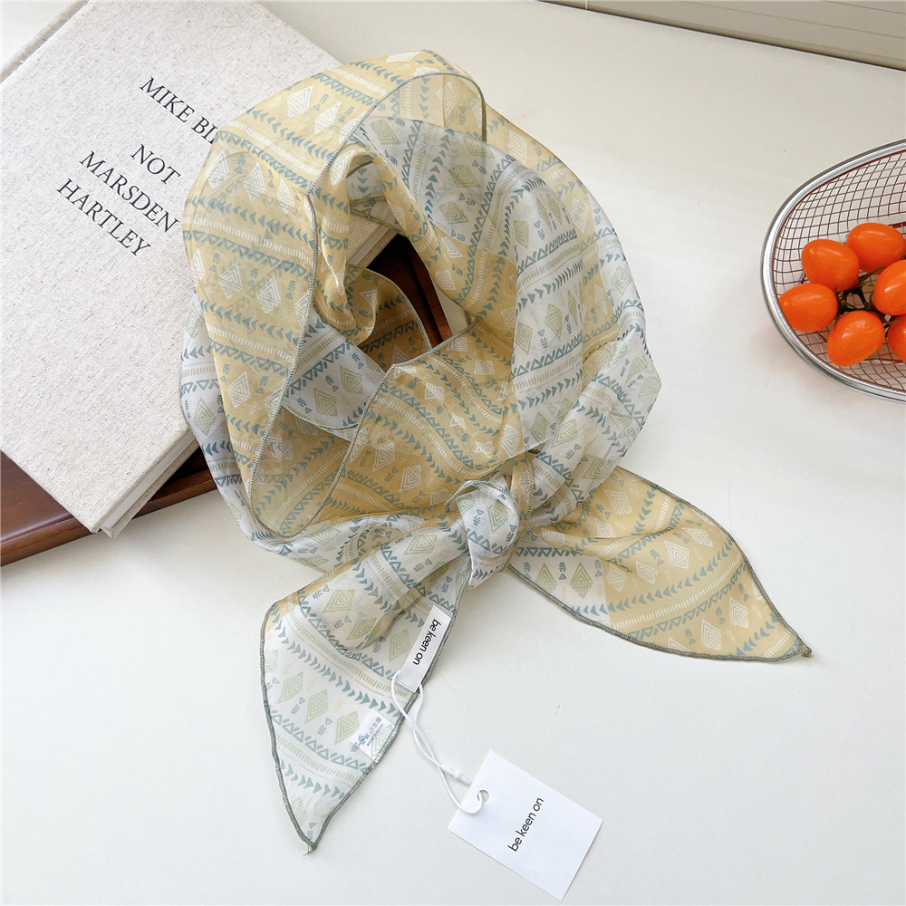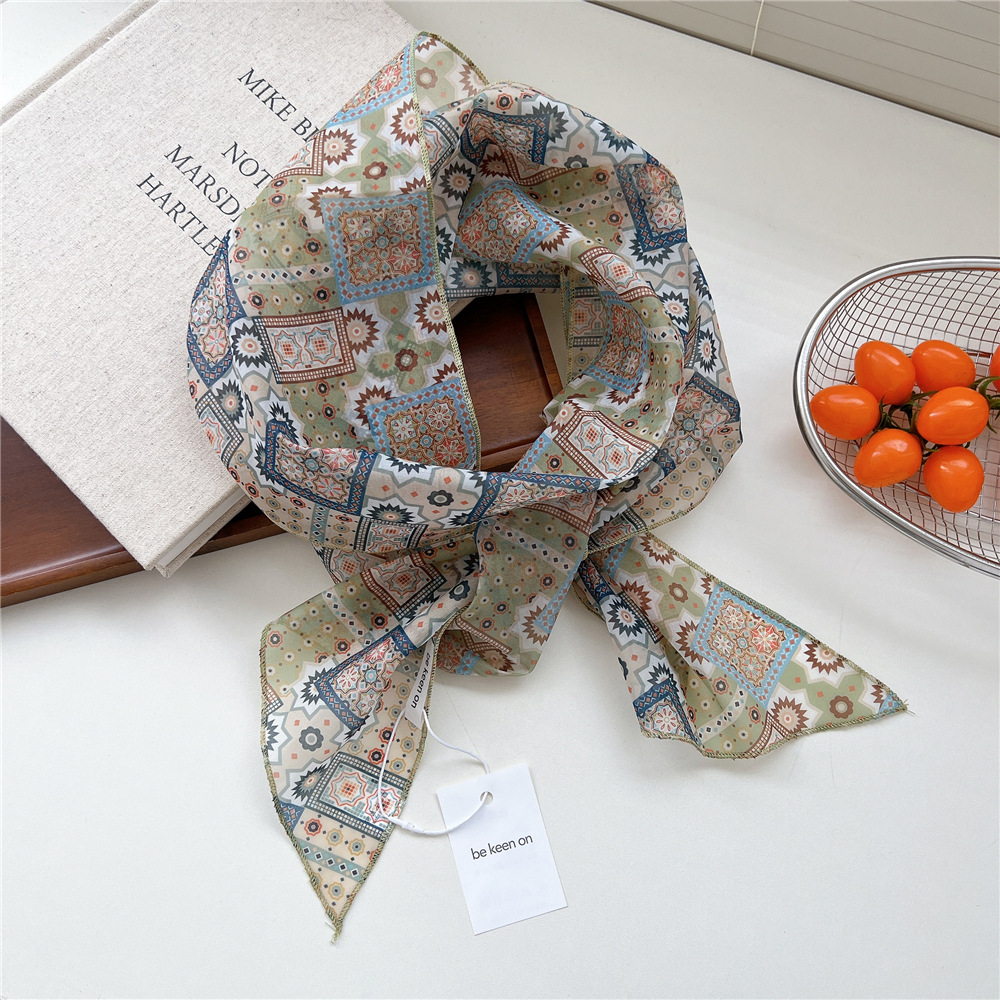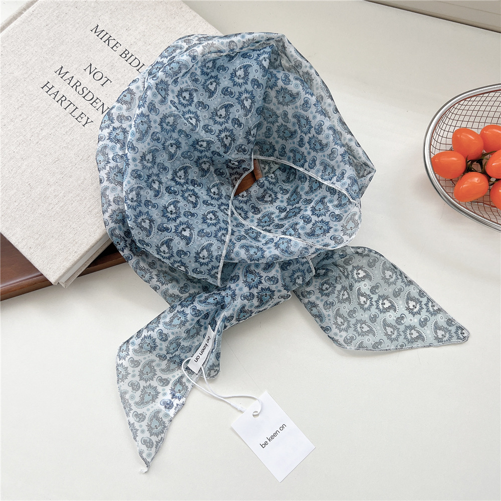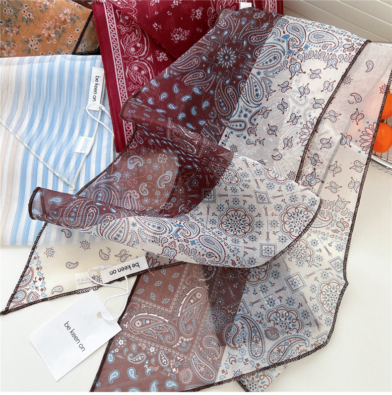 봄, 가을, 여름 여성용 얇고 가벼운 단층 복고풍 캐슈 실크 스카프, 다용도 머리띠, 긴 대각선 스카프스토어 가기
