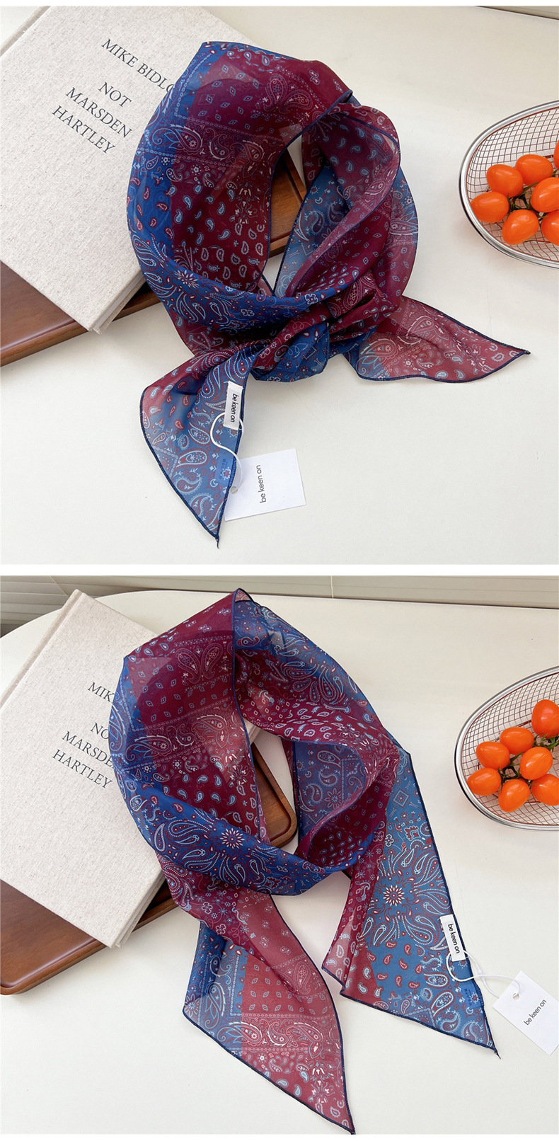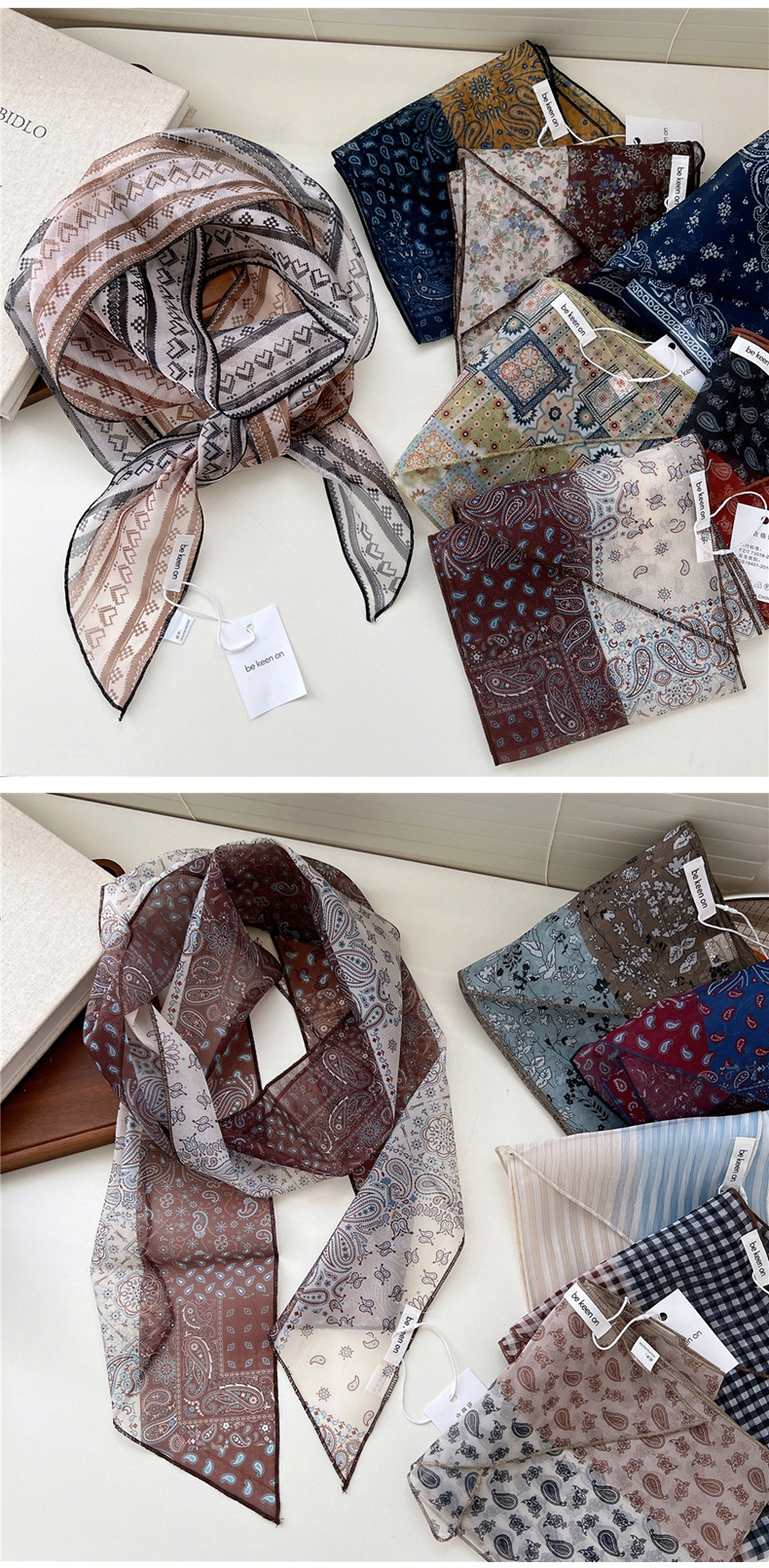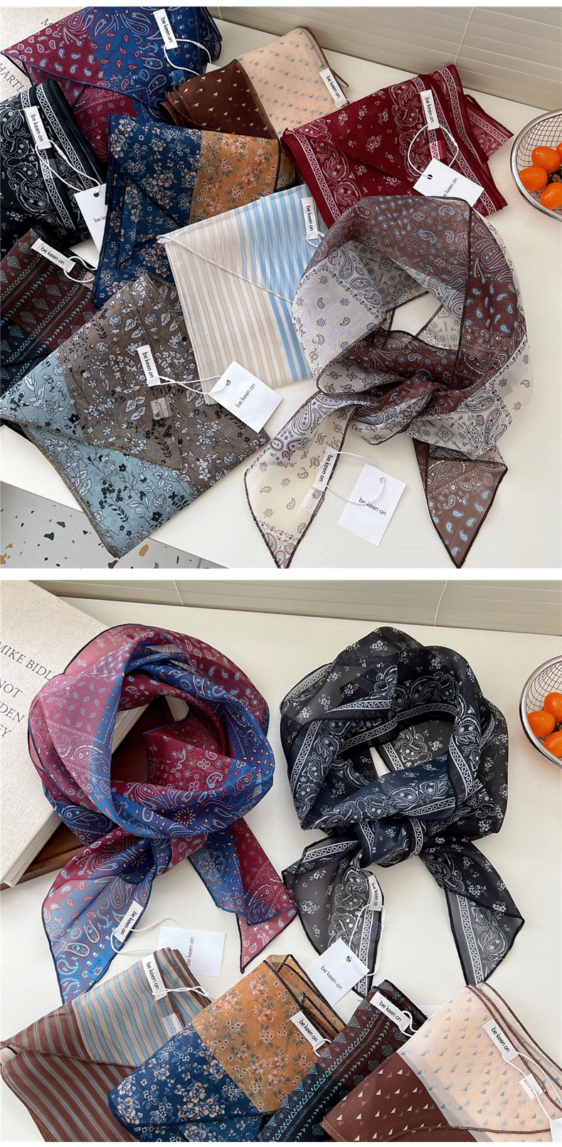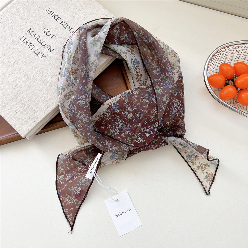 봄, 가을, 여름 여성용 얇고 가벼운 단층 복고풍 캐슈 실크 스카프, 다용도 머리띠, 긴 대각선 스카프스토어 가기