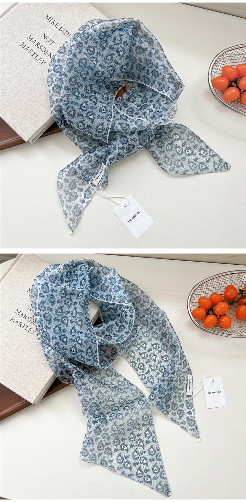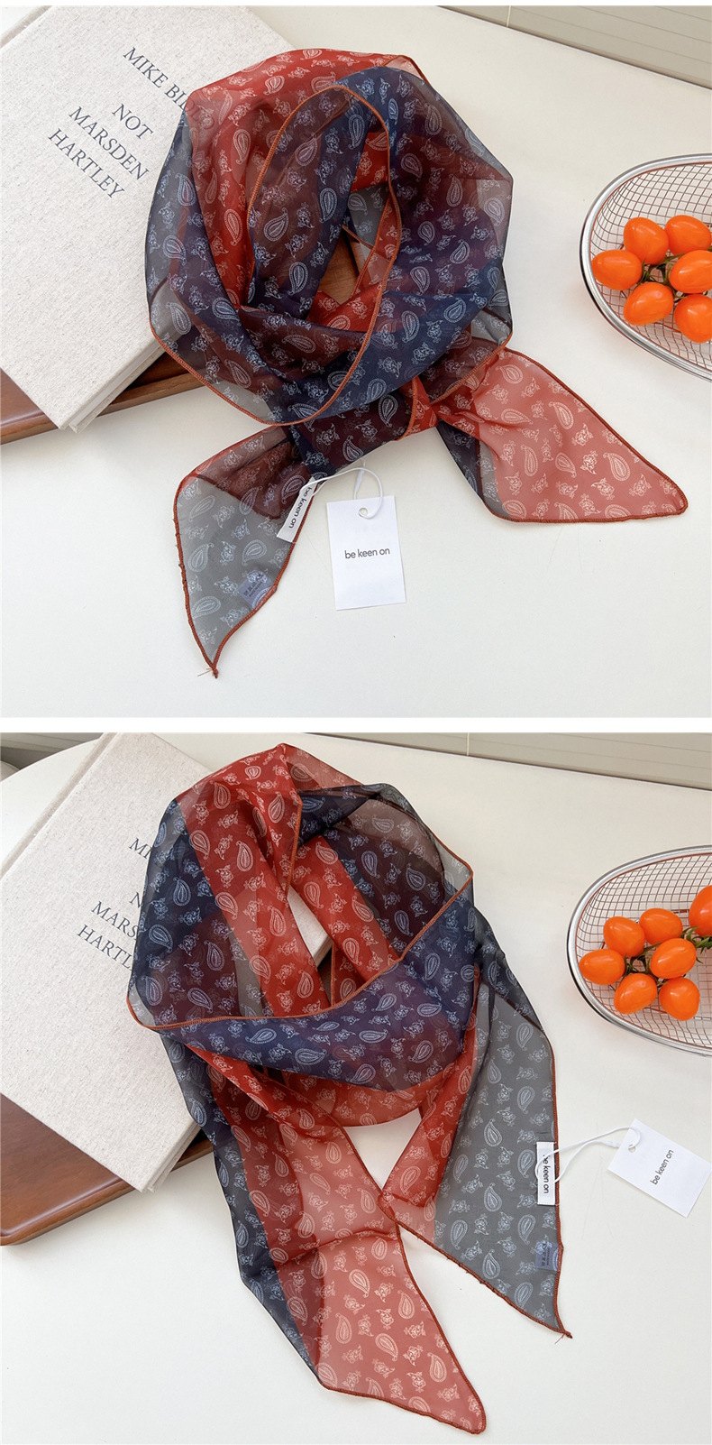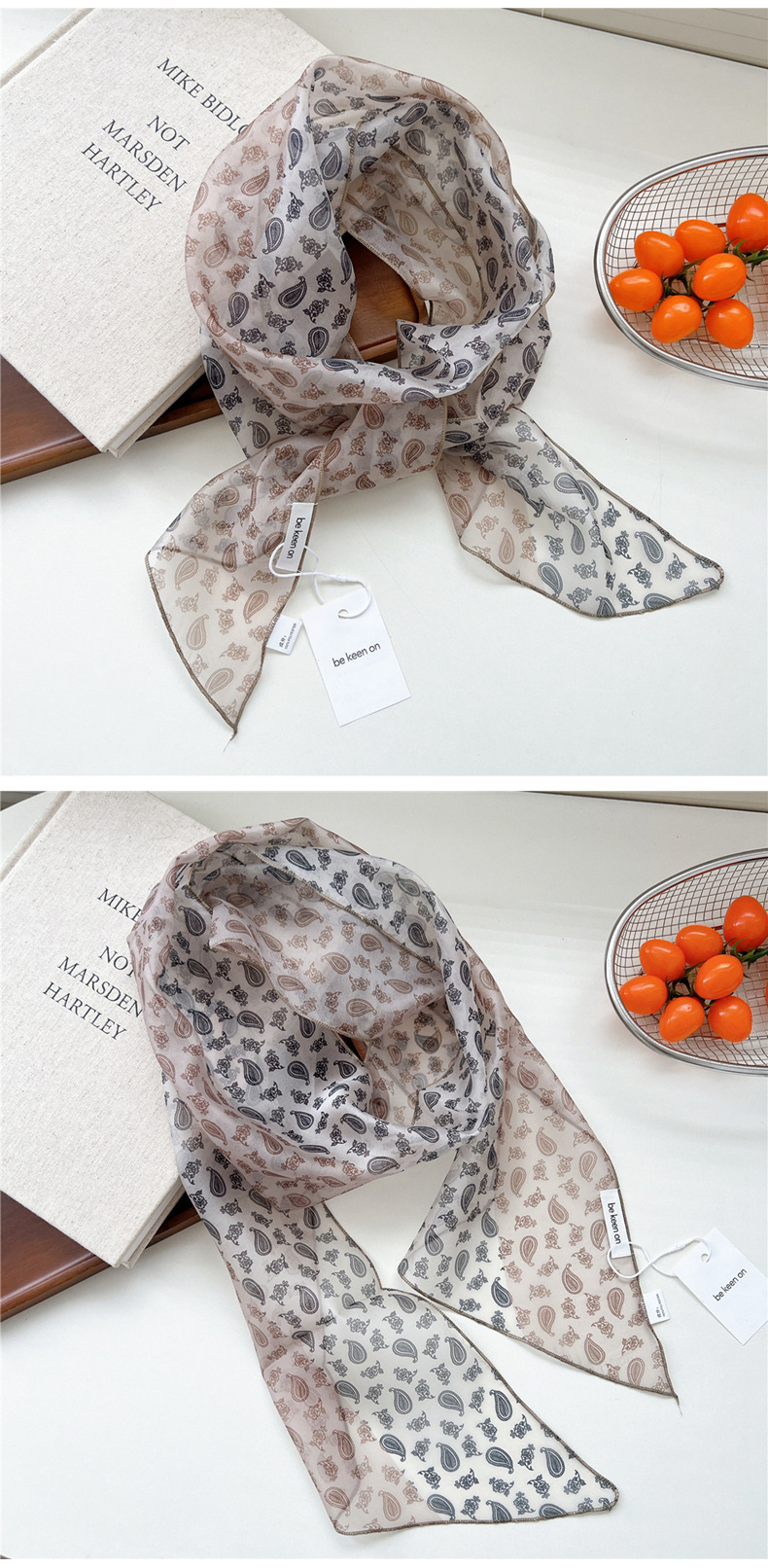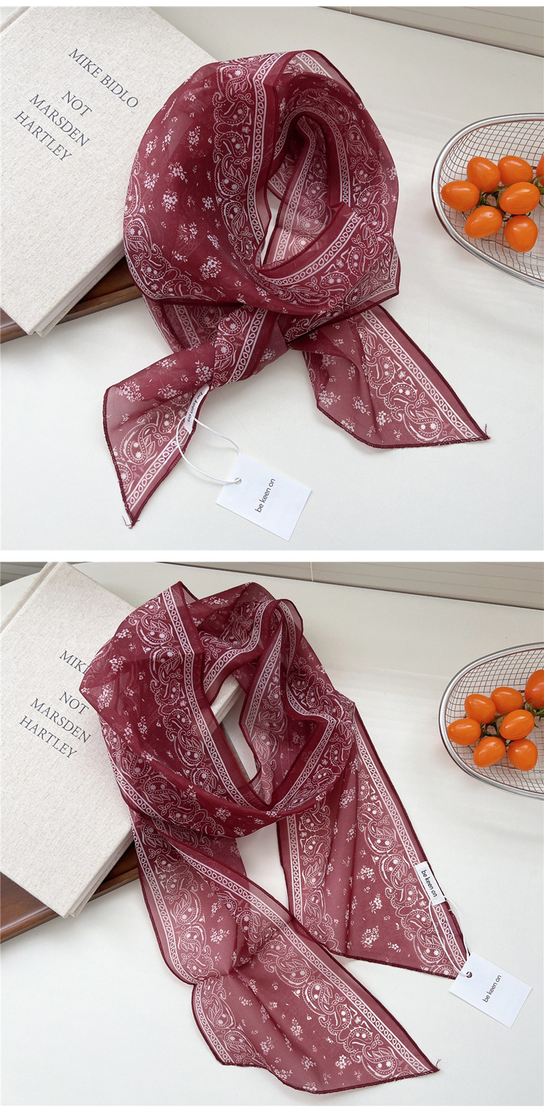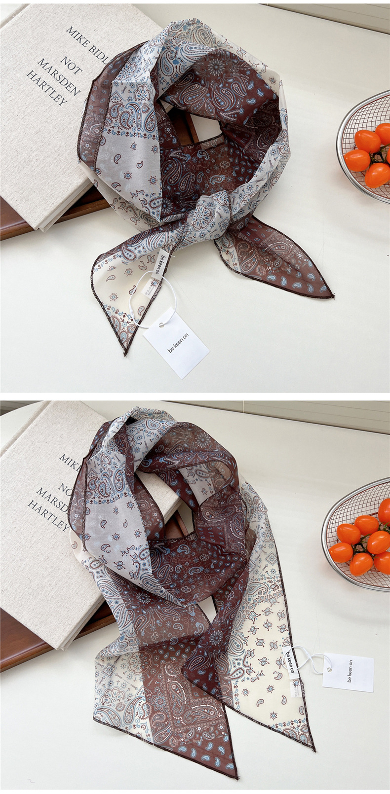 봄, 가을, 여름 여성용 얇고 가벼운 단층 복고풍 캐슈 실크 스카프, 다용도 머리띠, 긴 대각선 스카프스토어 가기