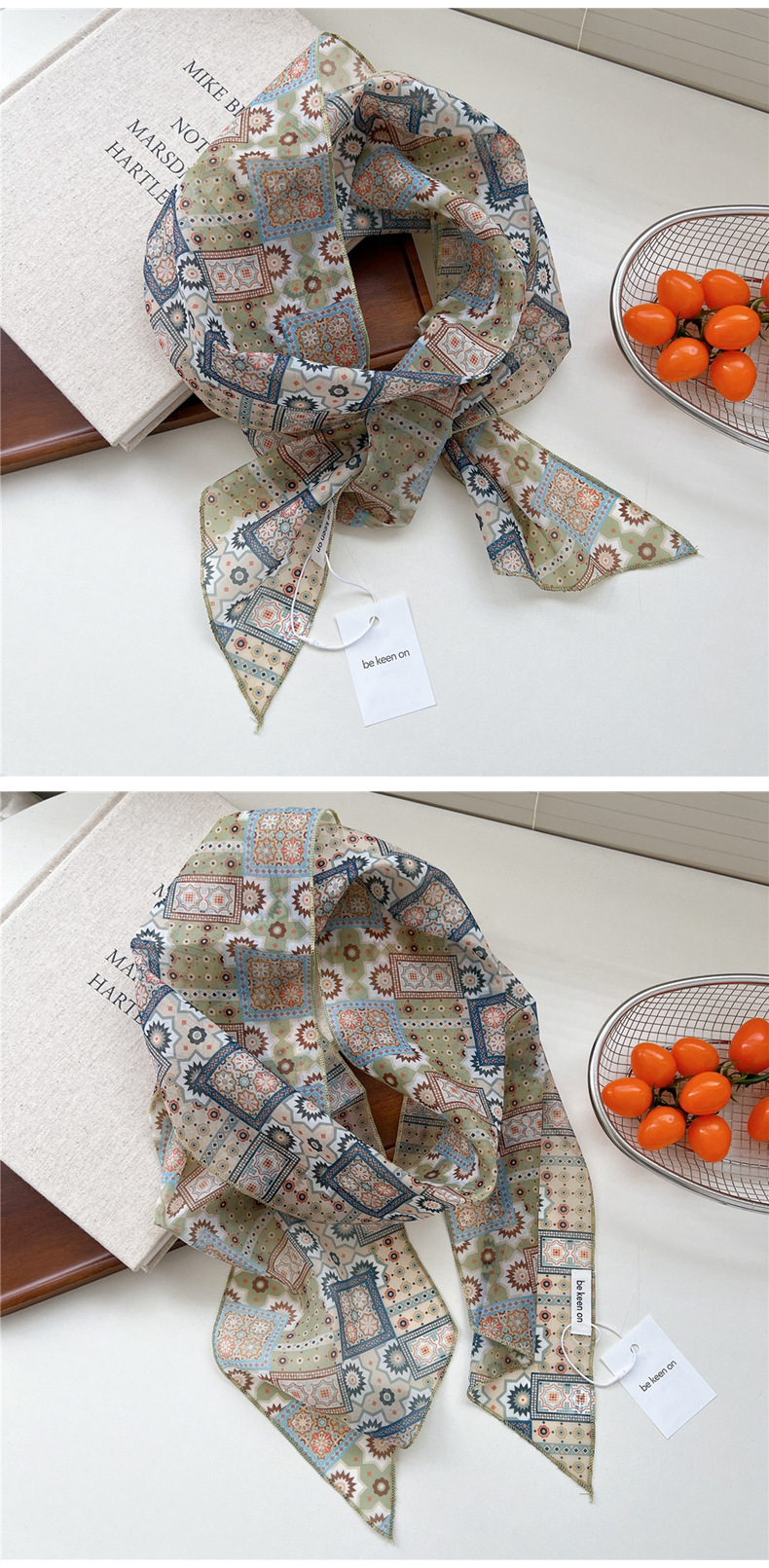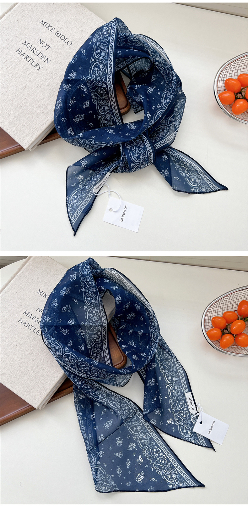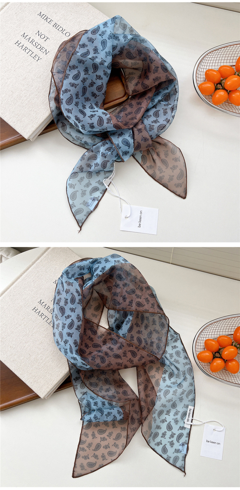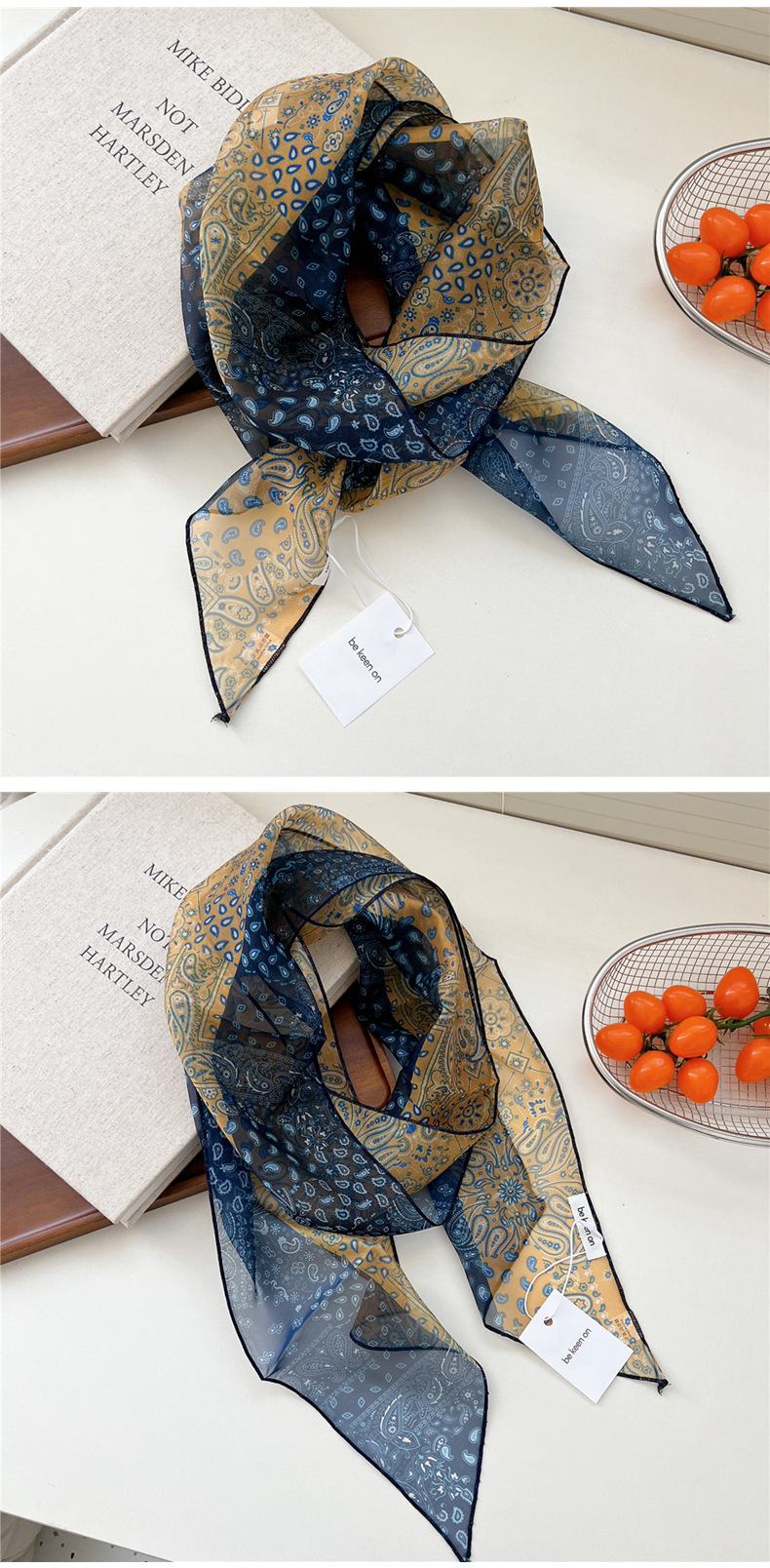 봄, 가을, 여름 여성용 얇고 가벼운 단층 복고풍 캐슈 실크 스카프, 다용도 머리띠, 긴 대각선 스카프스토어 가기