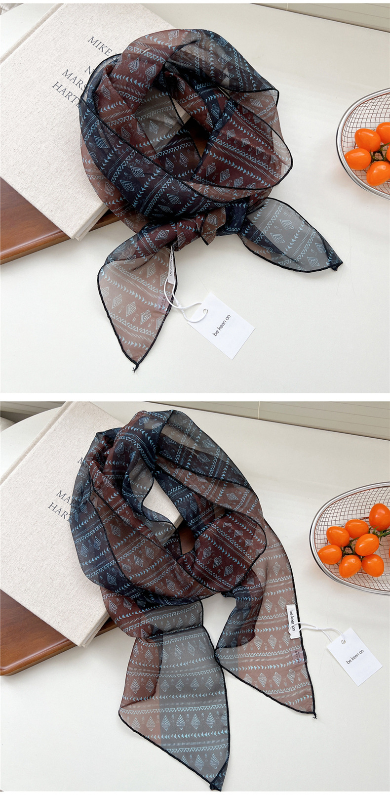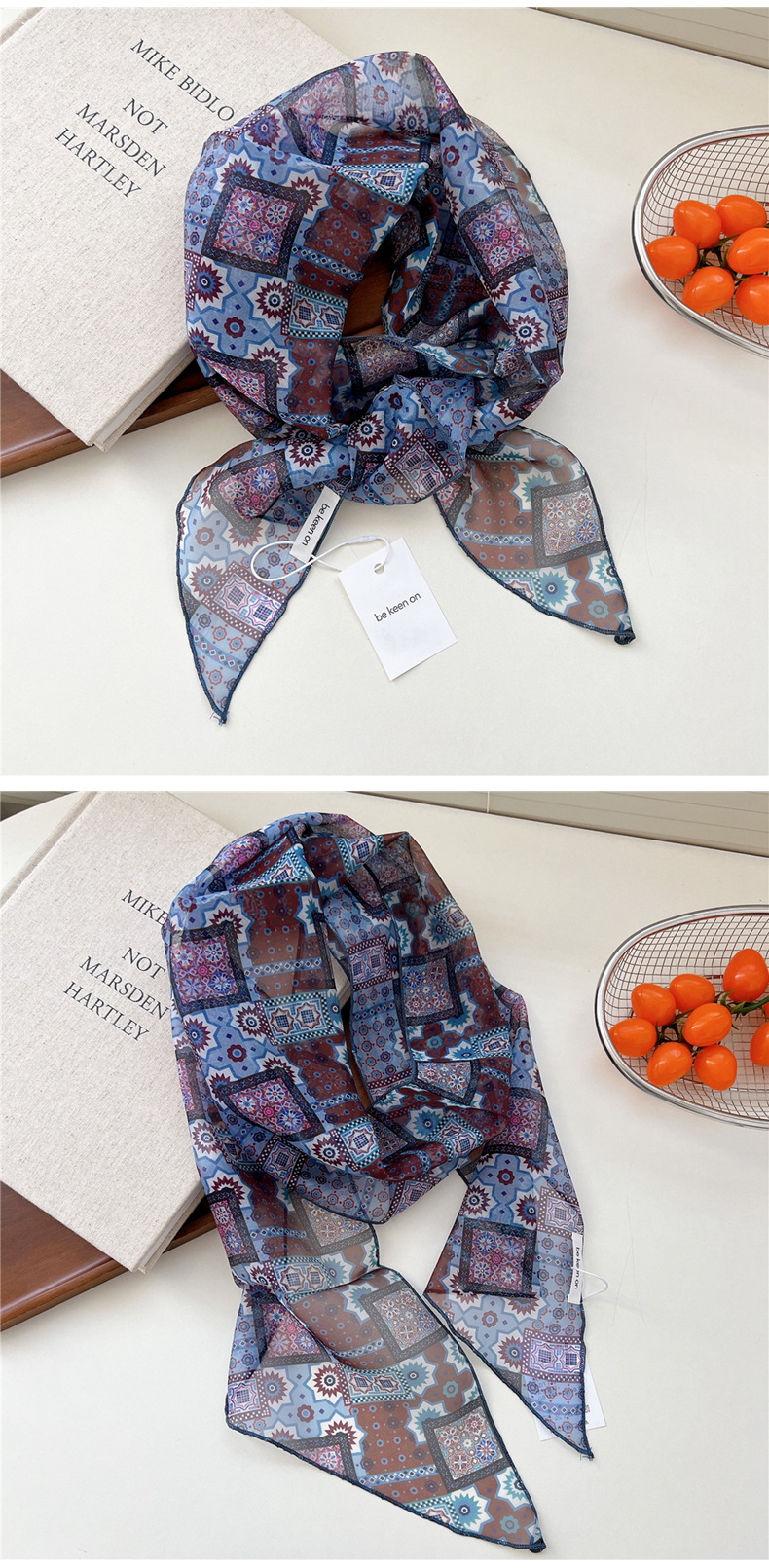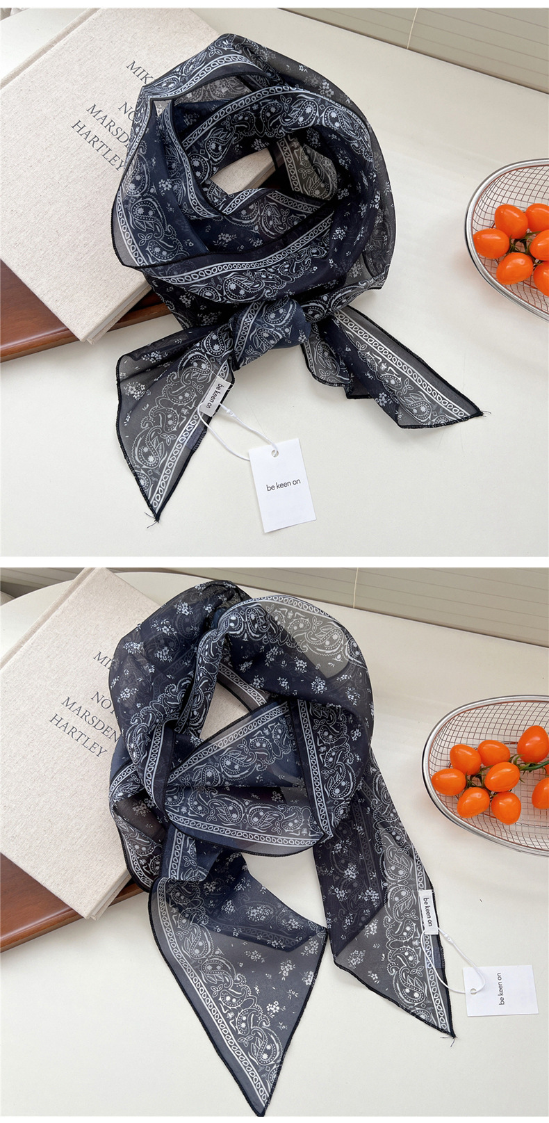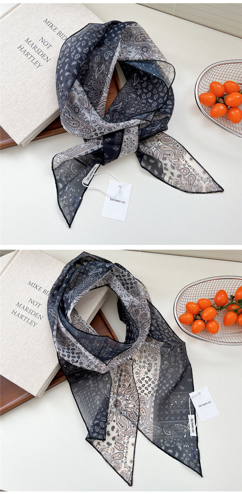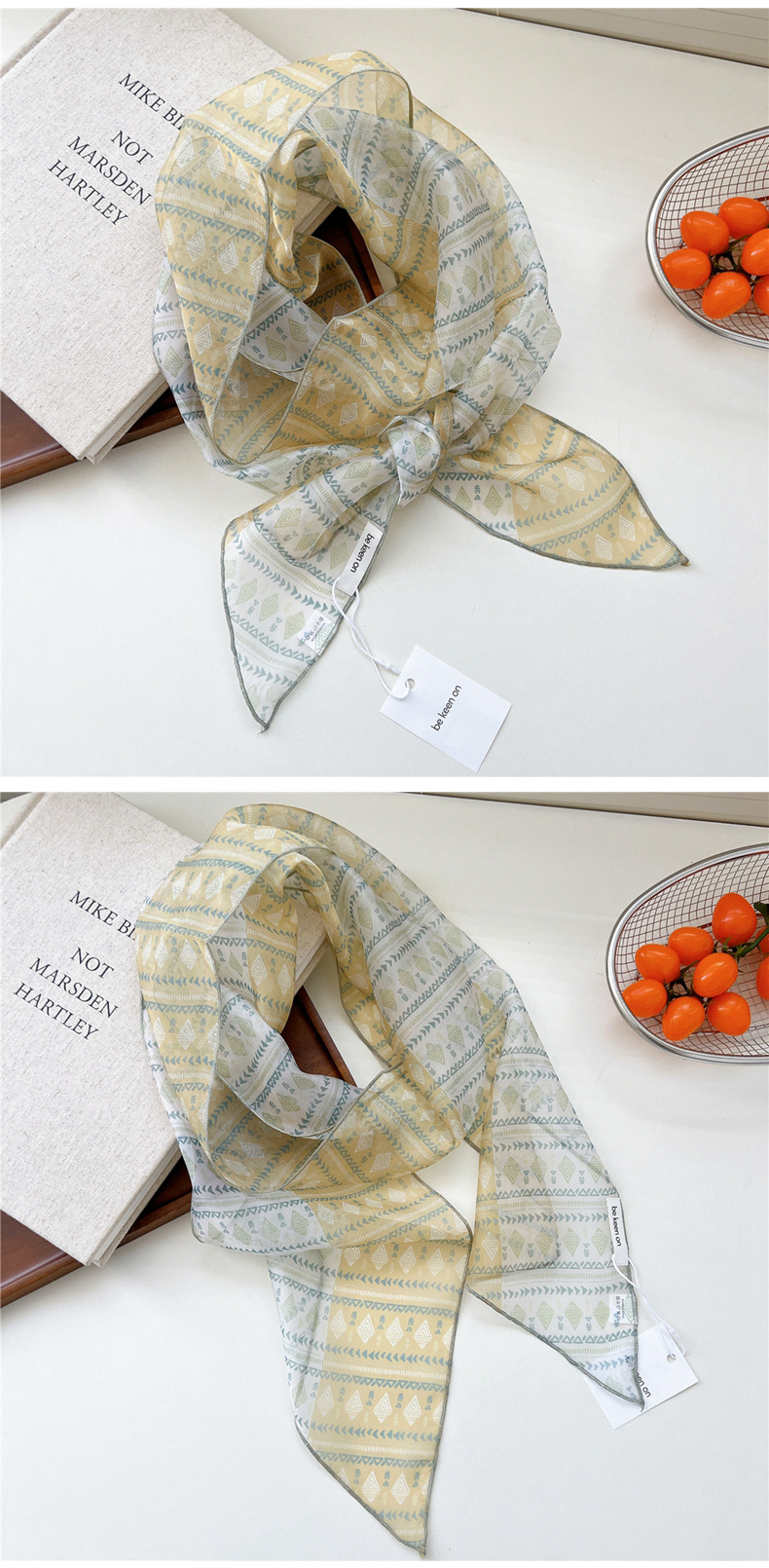 봄, 가을, 여름 여성용 얇고 가벼운 단층 복고풍 캐슈 실크 스카프, 다용도 머리띠, 긴 대각선 스카프스토어 가기
