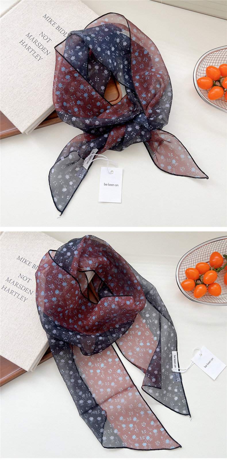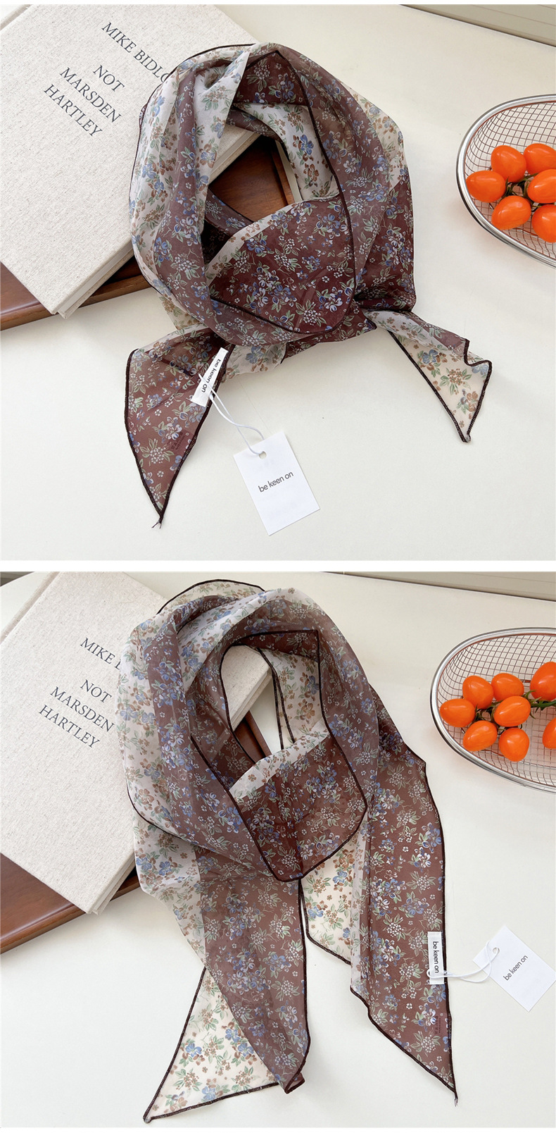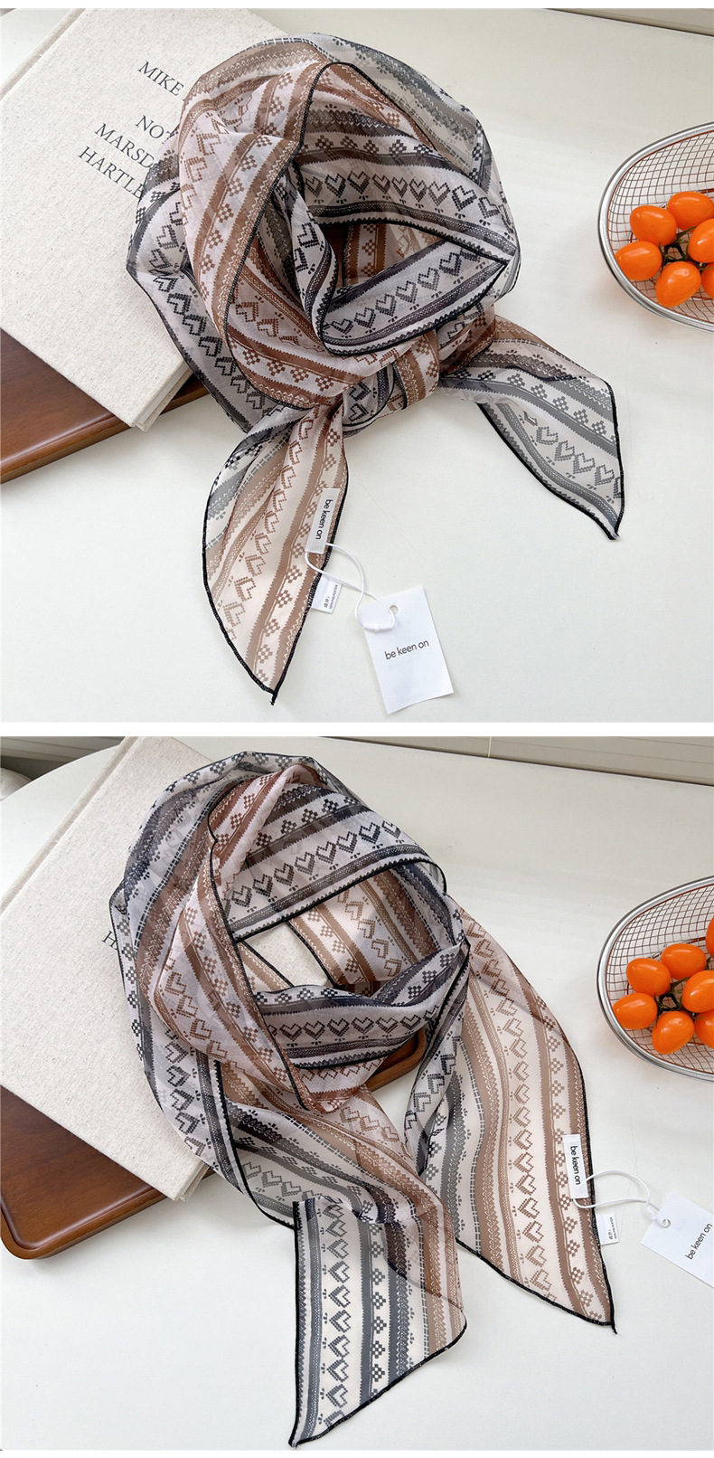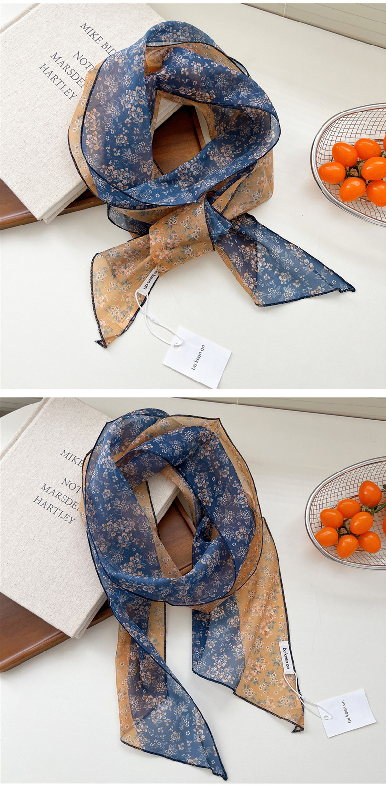 봄, 가을, 여름 여성용 얇고 가벼운 단층 복고풍 캐슈 실크 스카프, 다용도 머리띠, 긴 대각선 스카프스토어 가기