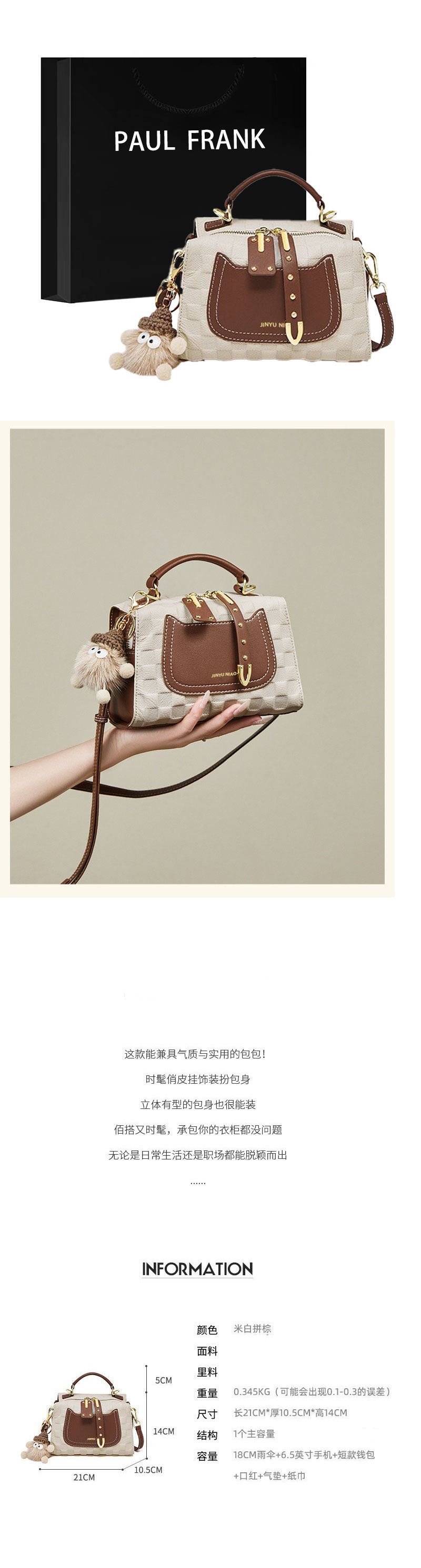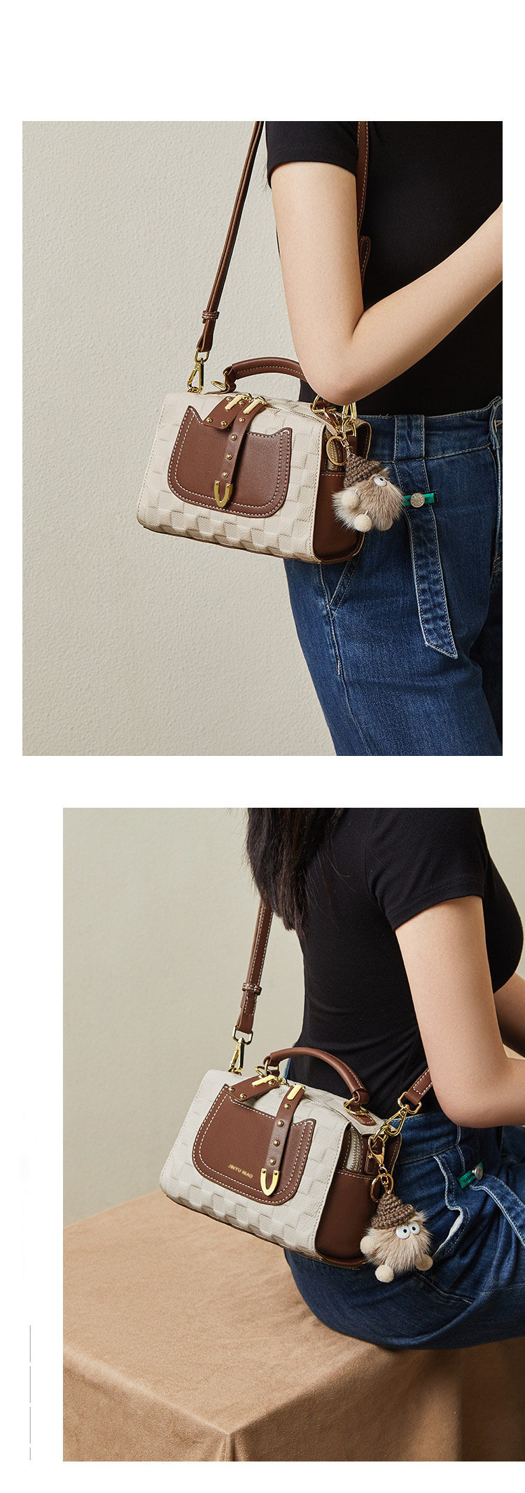 • 액세서리가 없는 미색 및 갈색 싱글 백