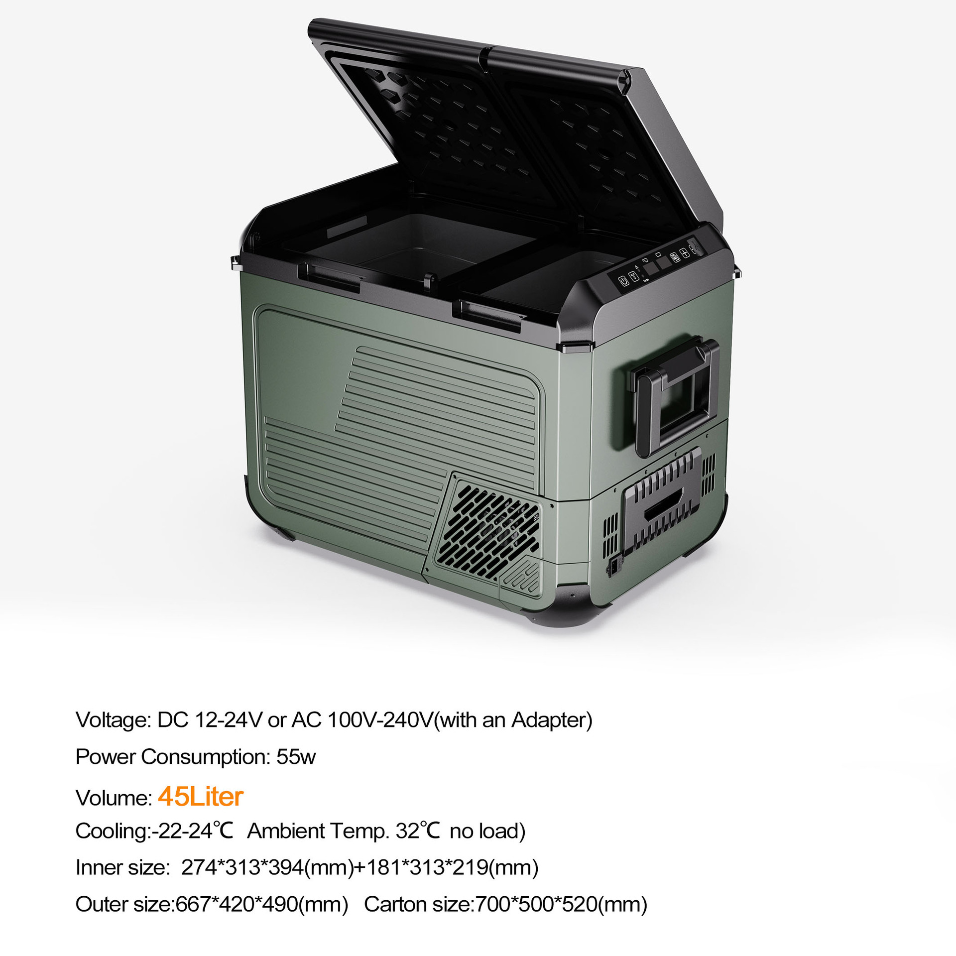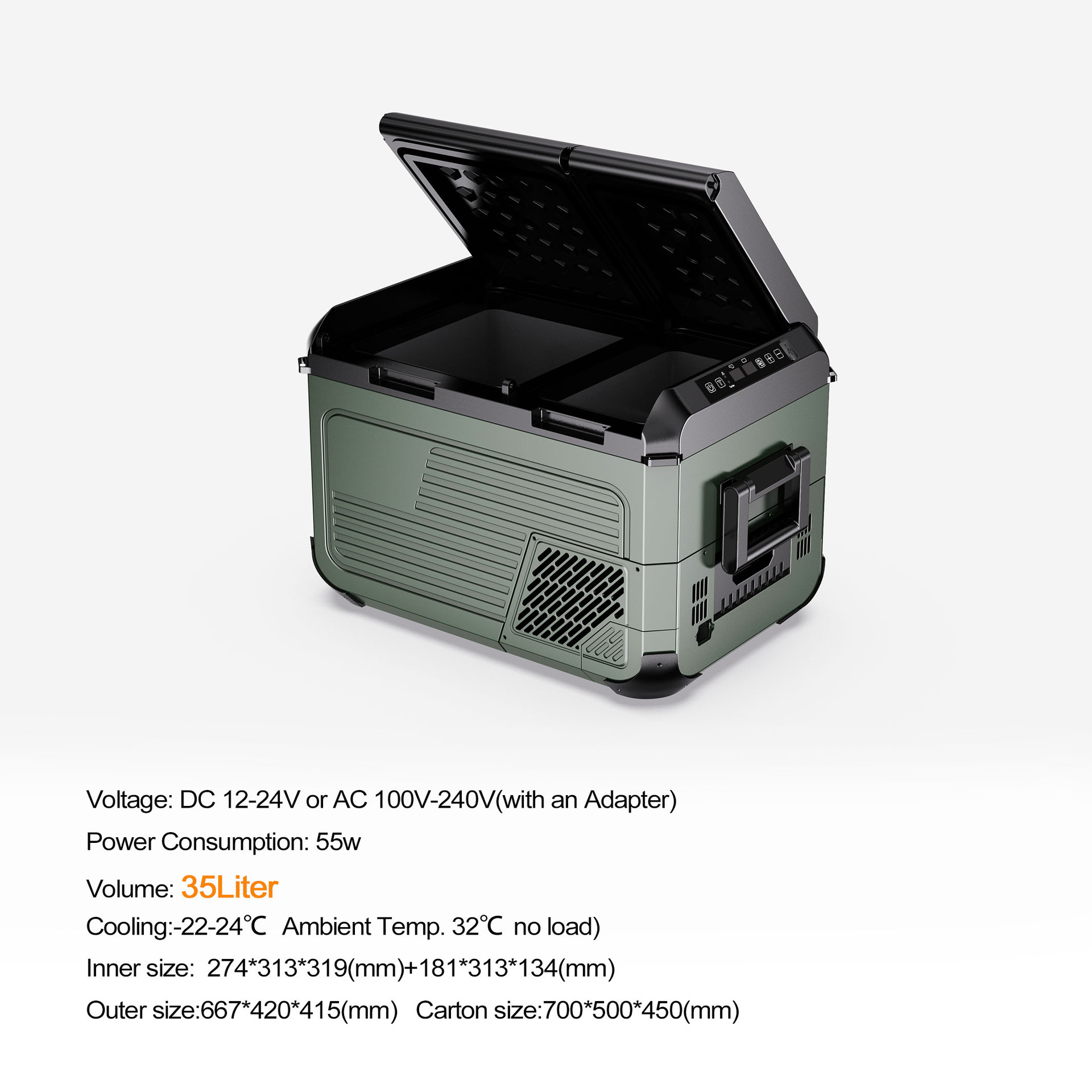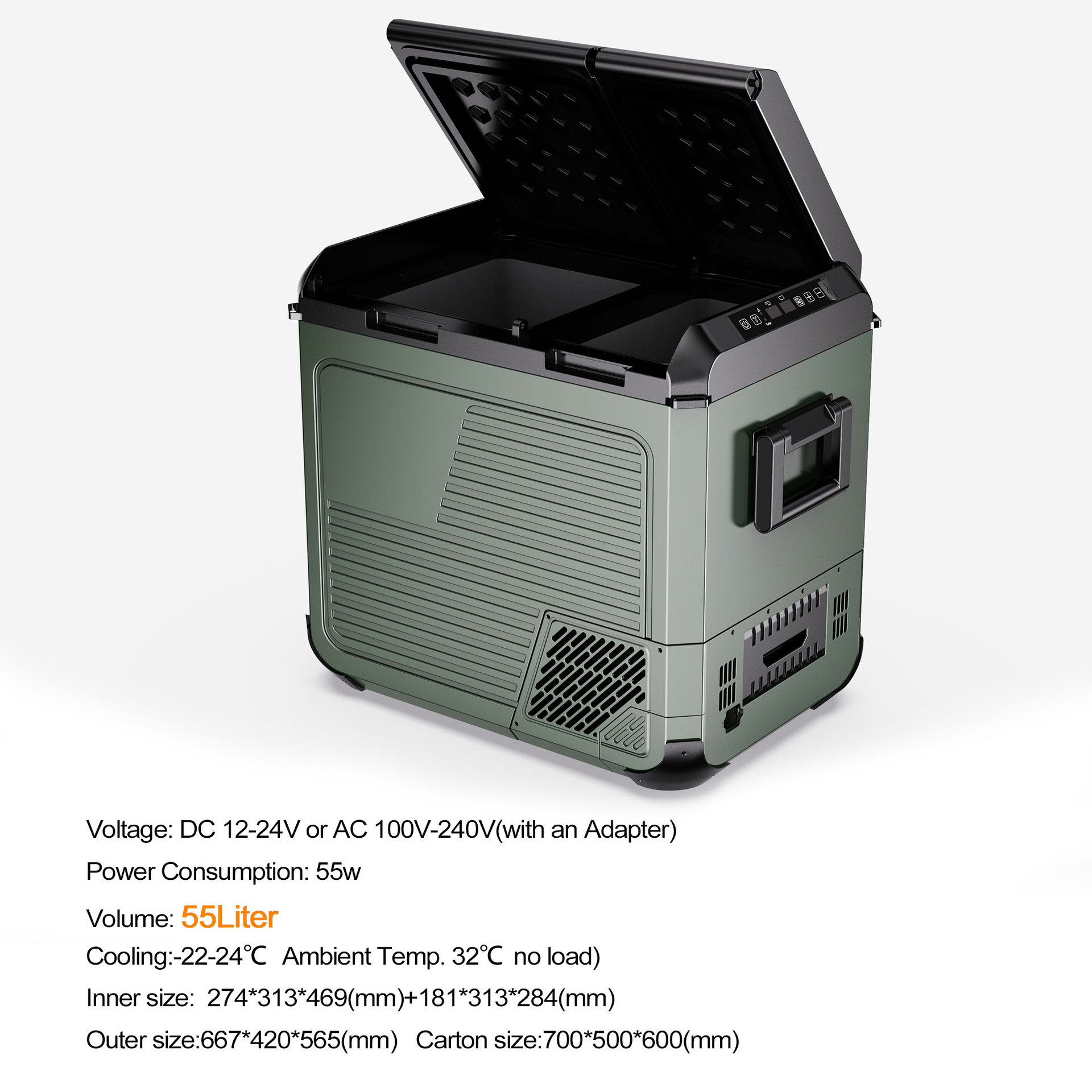 12V 24볼트 차량용 냉장고 RV 야외 캠핑 35L 45L 55L 휴대용 냉장고 외국 무역 공장 직판스토어 가기