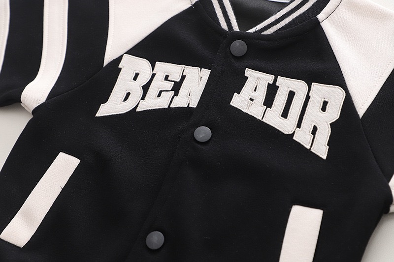 아기 가을 옷 소년 2024 새로운 스타일 세련되고 잘 생긴 어린이 봄, 가을 옷 편지 야구 유니폼 3 피스 세트