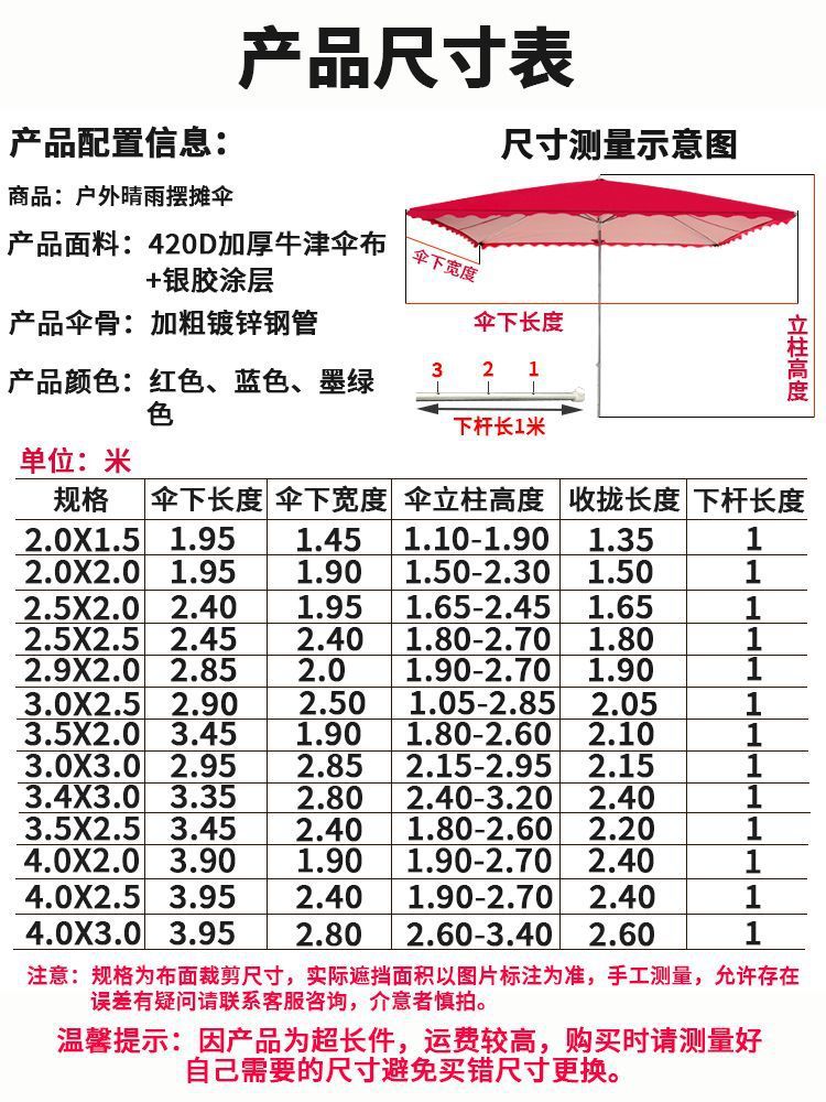 태양 우산 거리 매점 대형 우산 두꺼운 상업용 자외선 차단 및 단열 직사각형 우산 대형 우산 야외 매점