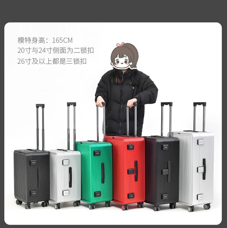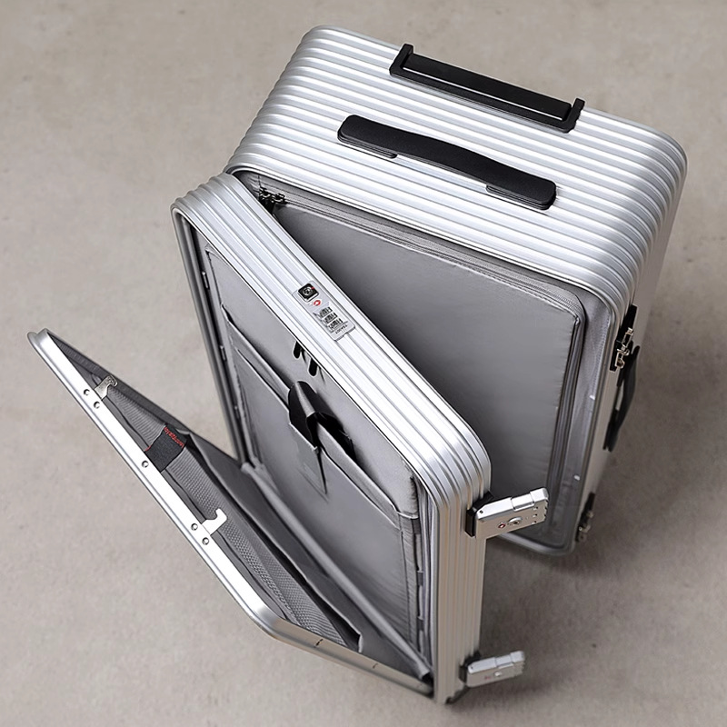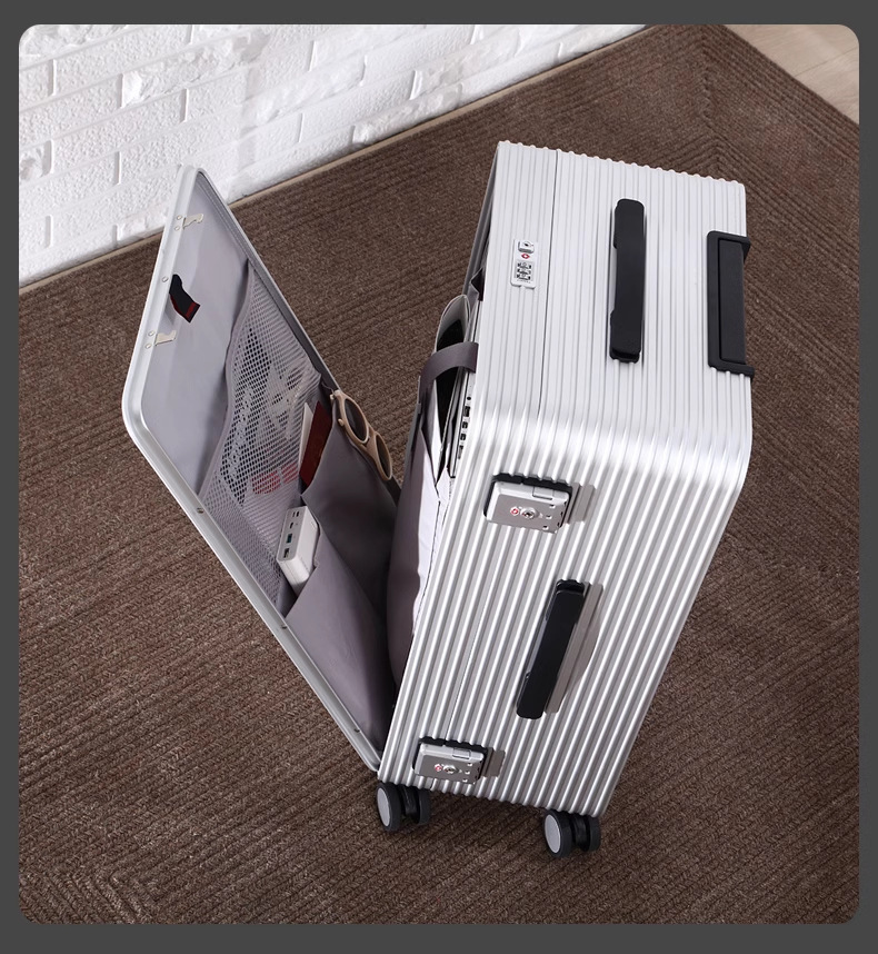전면 개방형 알루미늄-마그네슘 합금 여행가방 20inch 탑승 케이스 금속 트롤리 케이스 측면 개방형 여행가방 24inch 비밀번호 가방스토어 가기