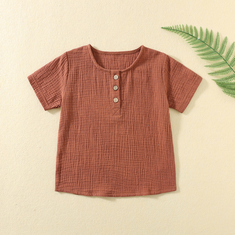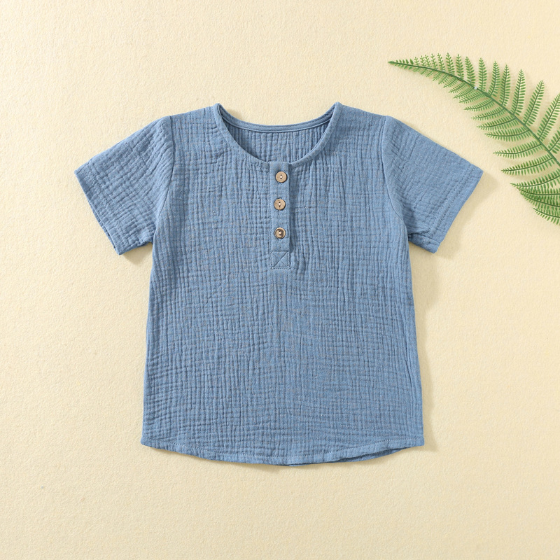 ins男童宝宝短袖双层纱布男宝夏季薄款上衣儿童绉布T恤女童衣服t恤,支持小批量定制。undefined