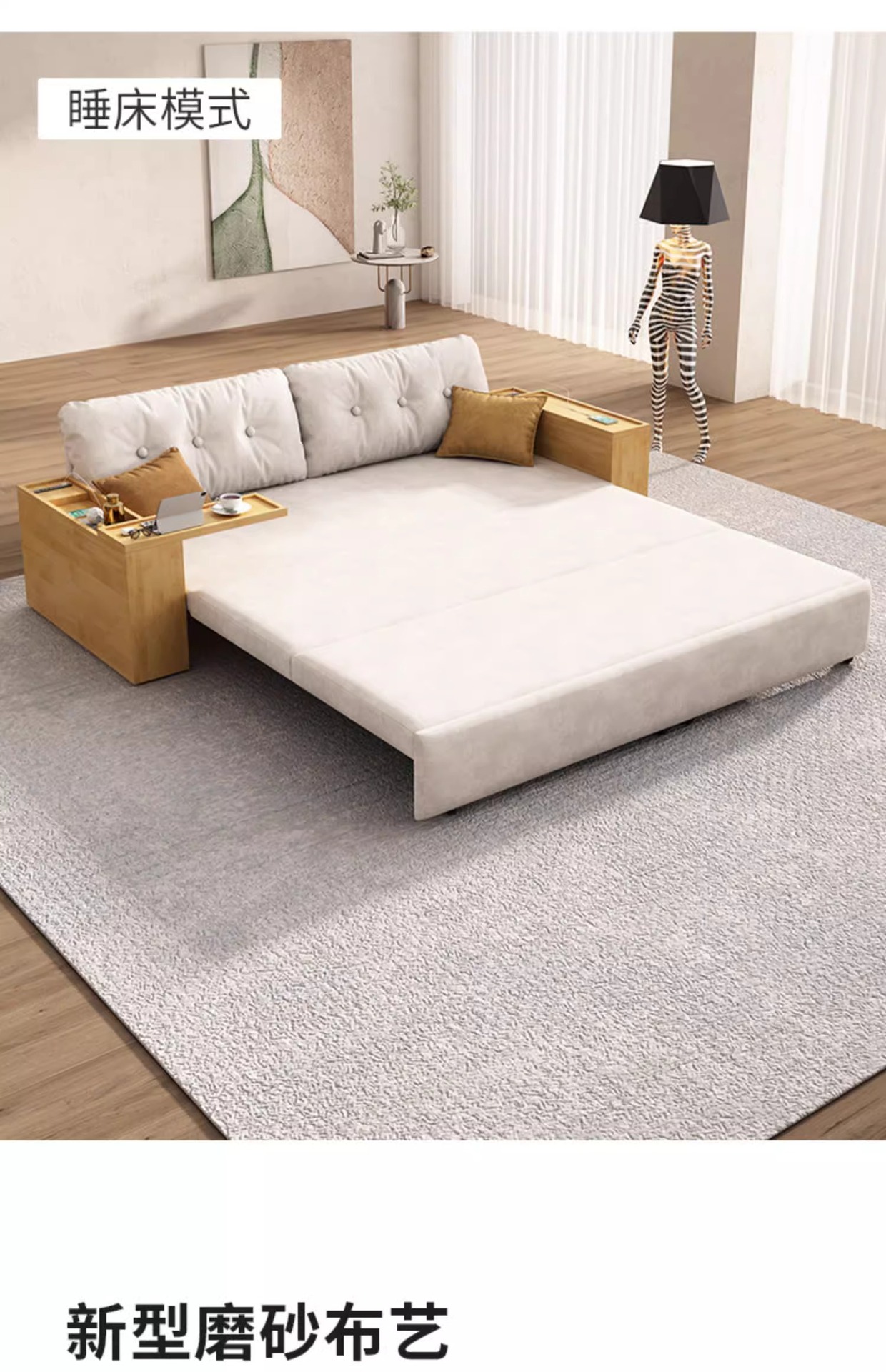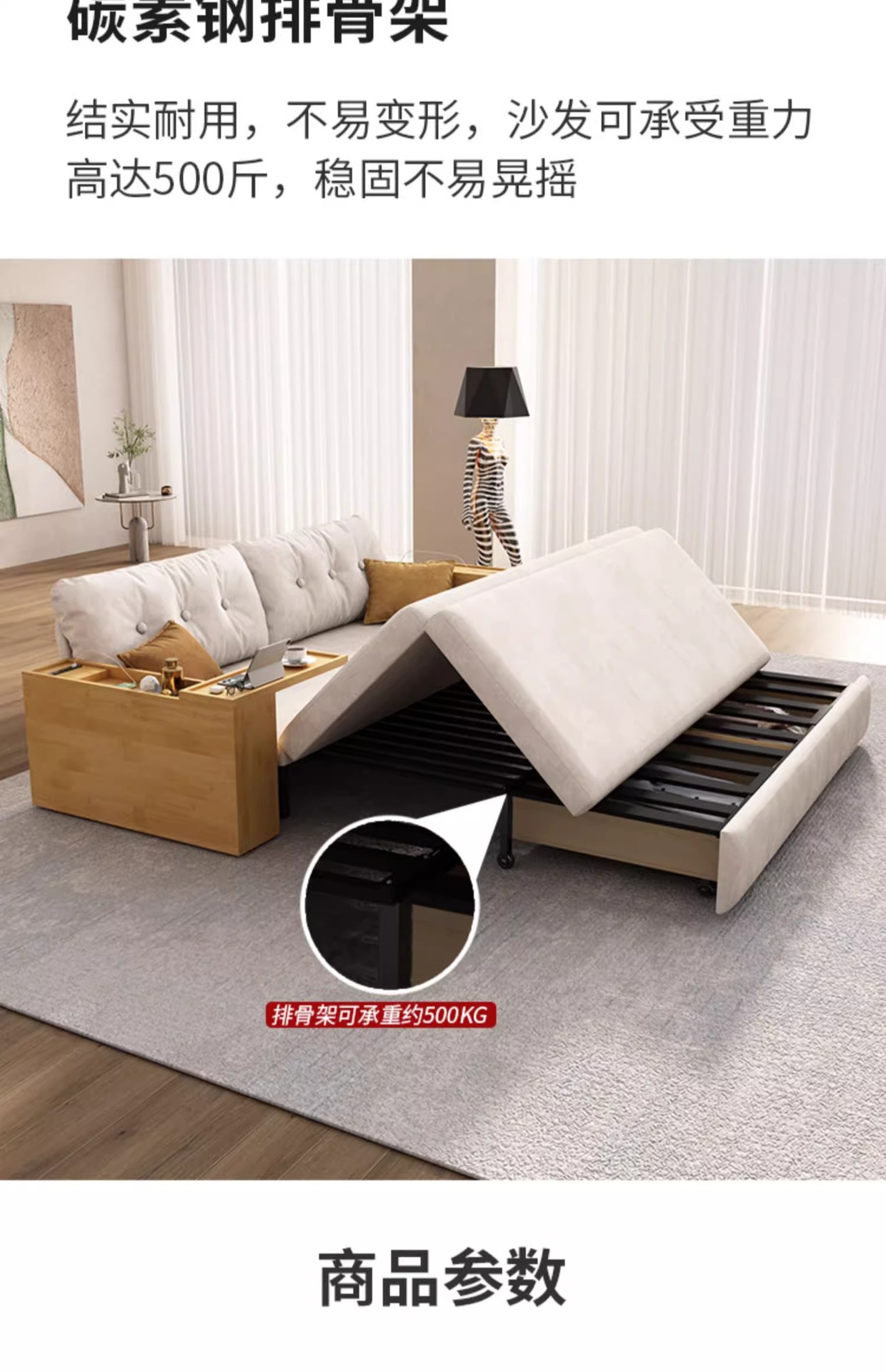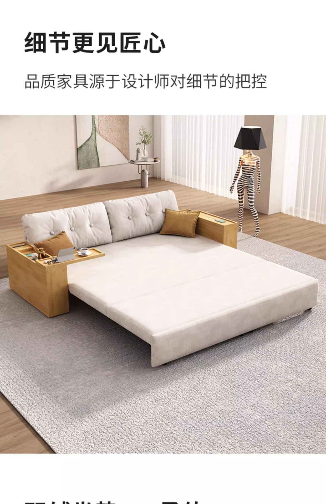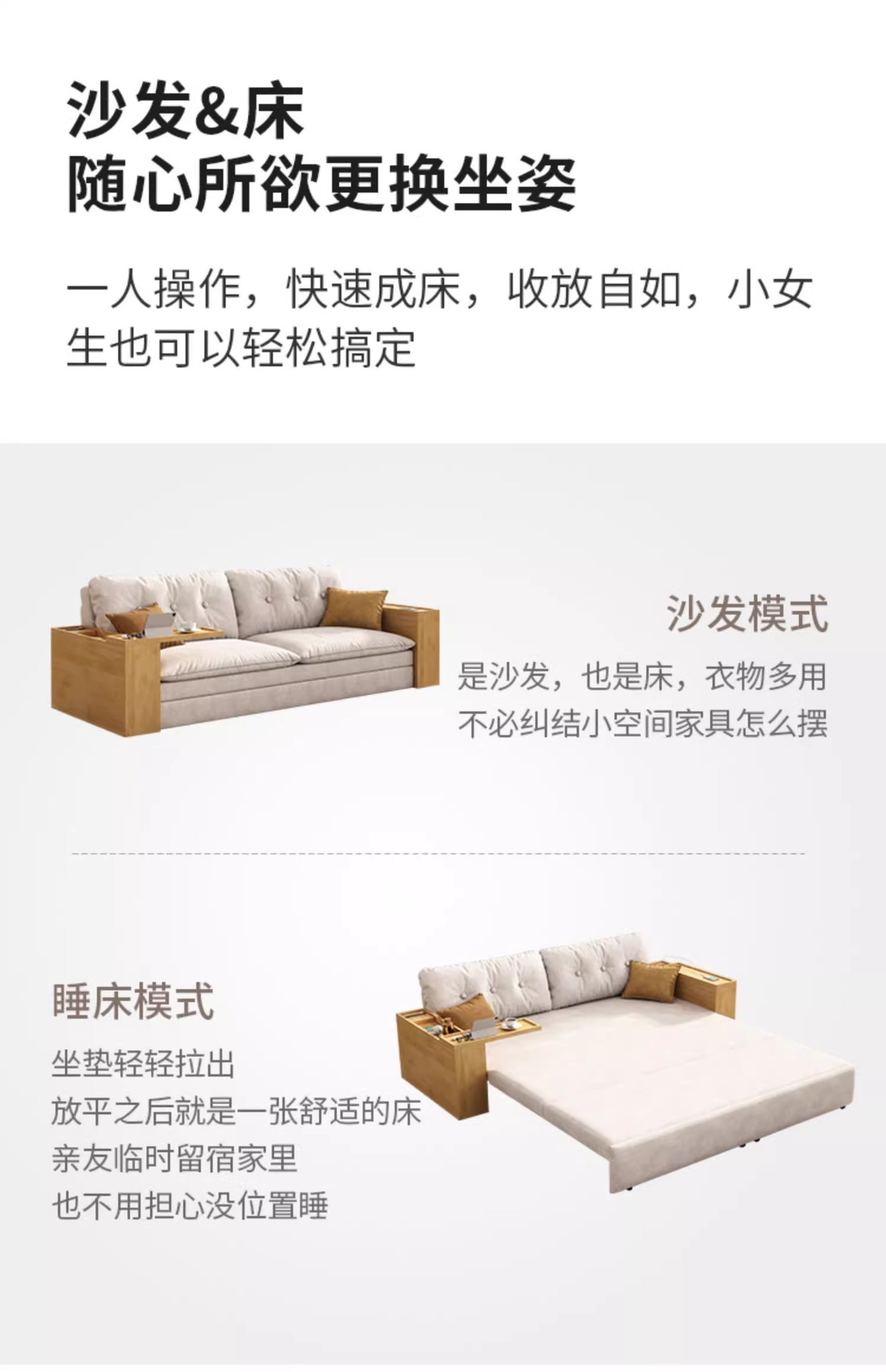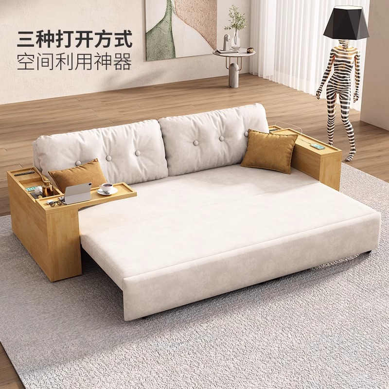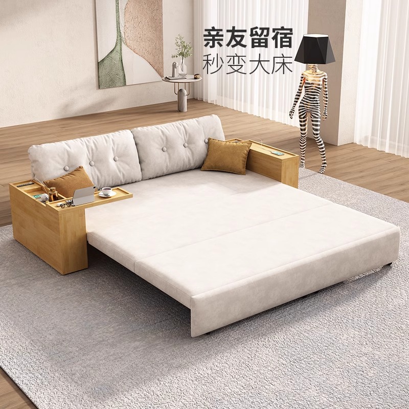 단단한 나무 소파 베드, 접이식 싱글 및 더블, 다기능, 좌식 및 수면, 소형 거실, 심플하고 모던한 인터넷 연예인 모델스토어 가기