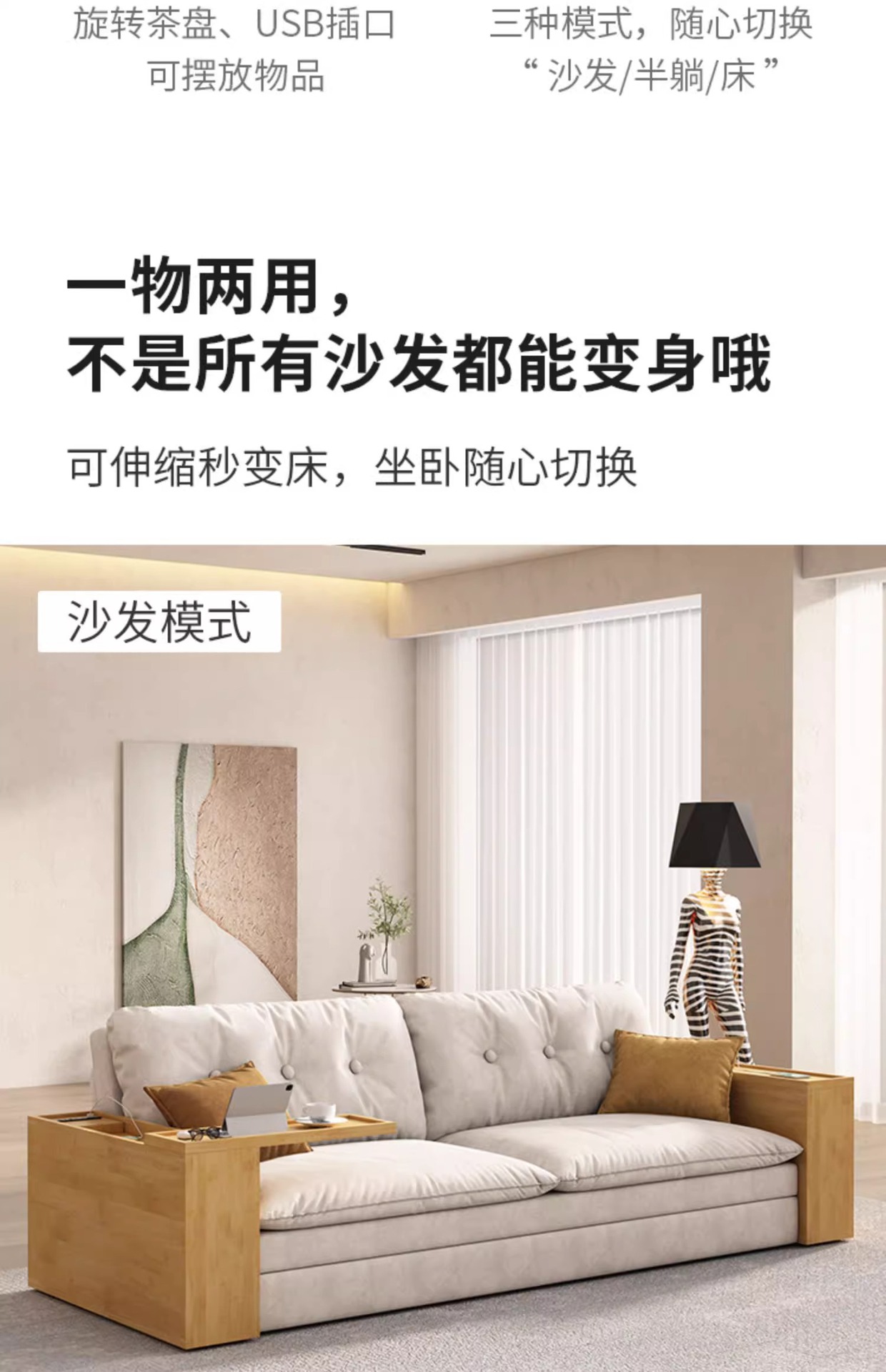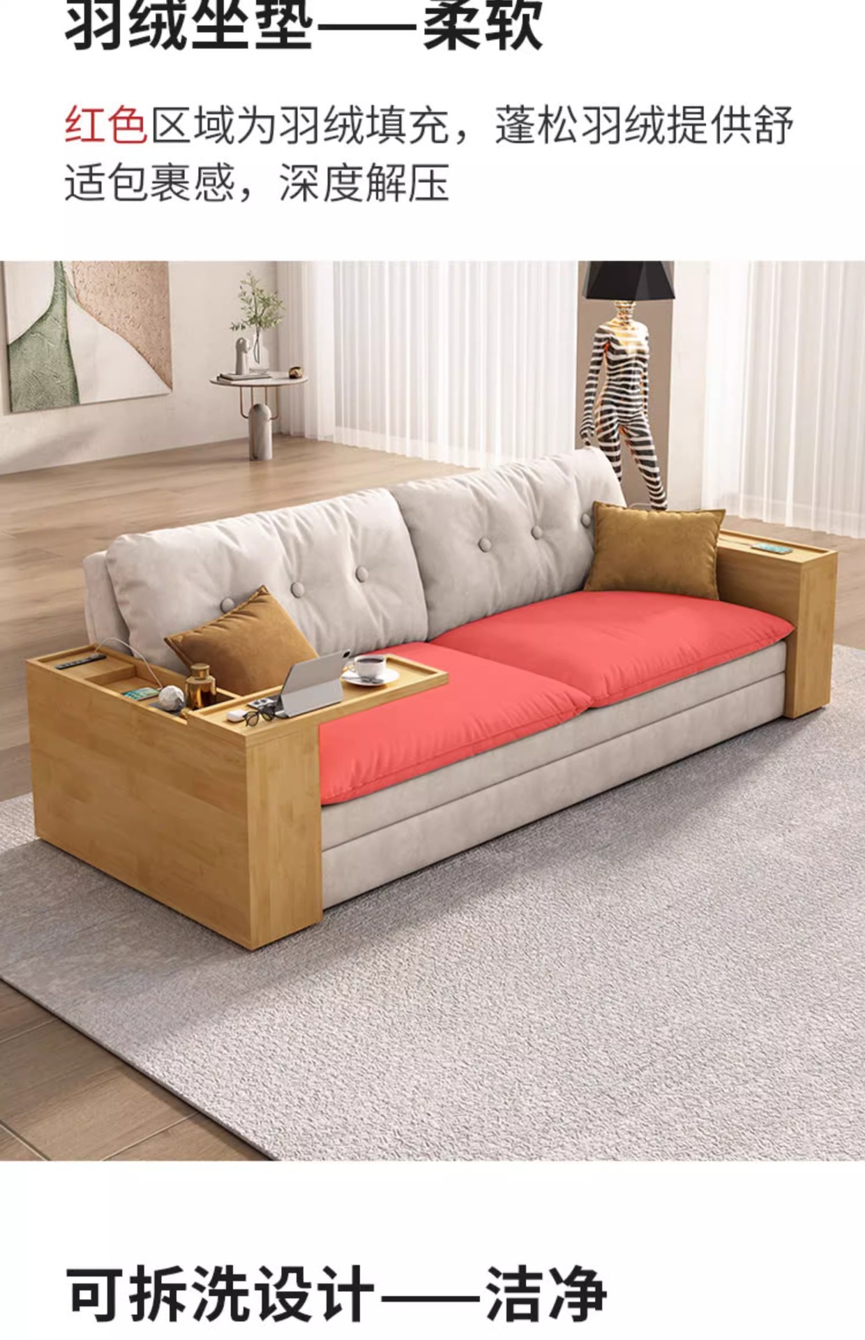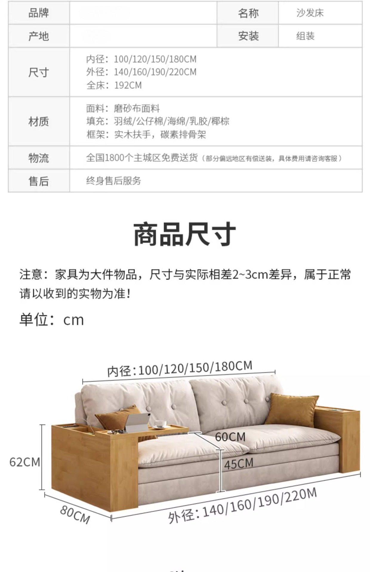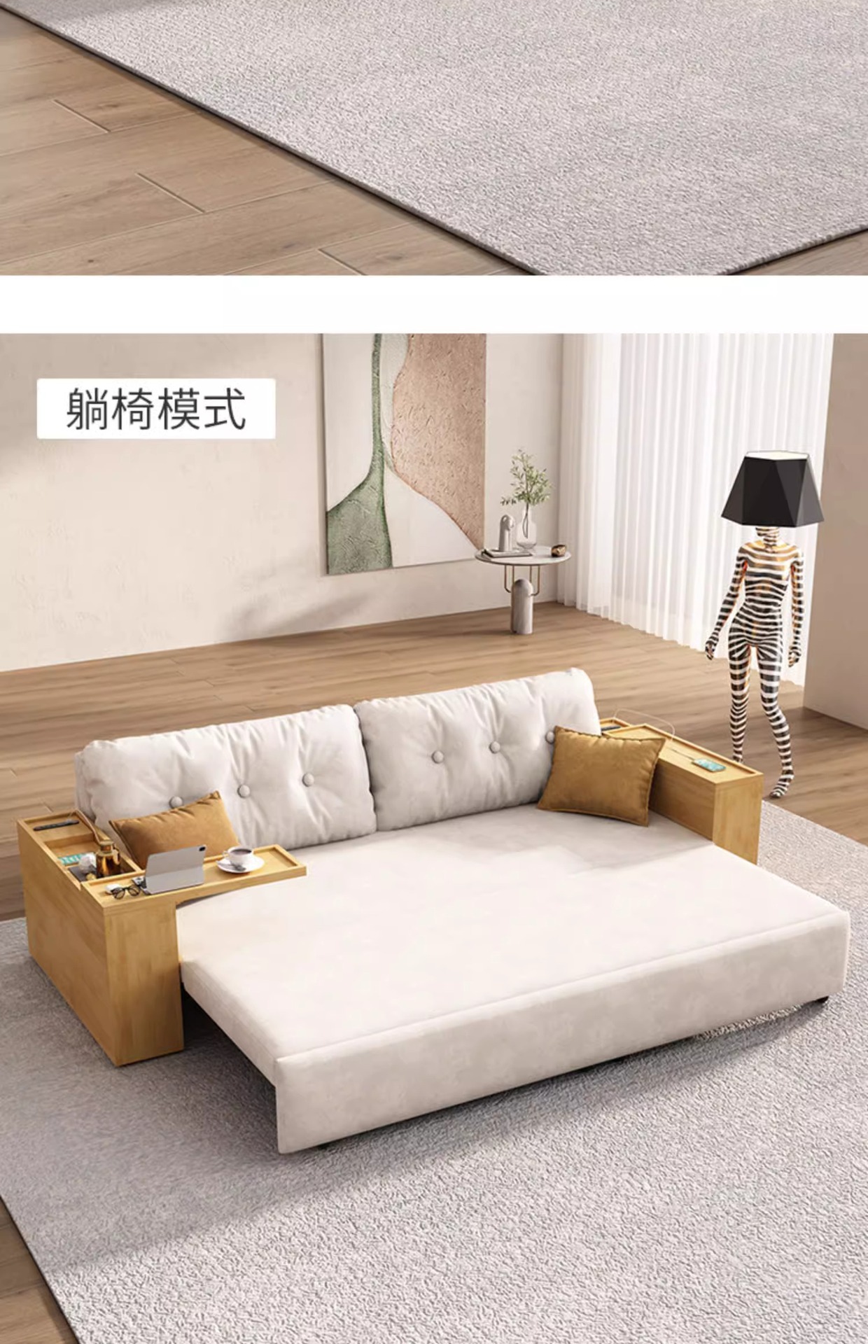 단단한 나무 소파 베드, 접이식 싱글 및 더블, 다기능, 좌식 및 수면, 소형 거실, 심플하고 모던한 인터넷 연예인 모델스토어 가기