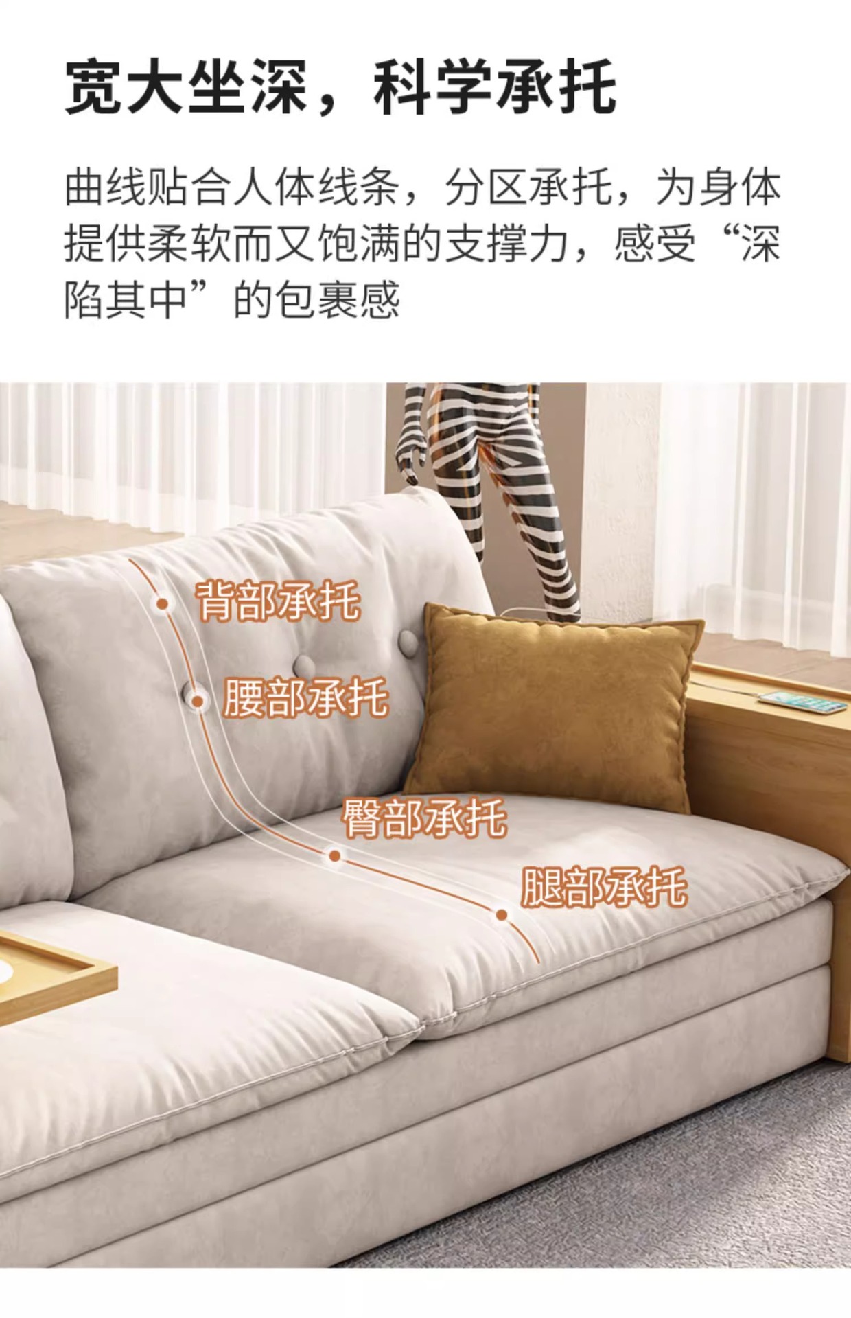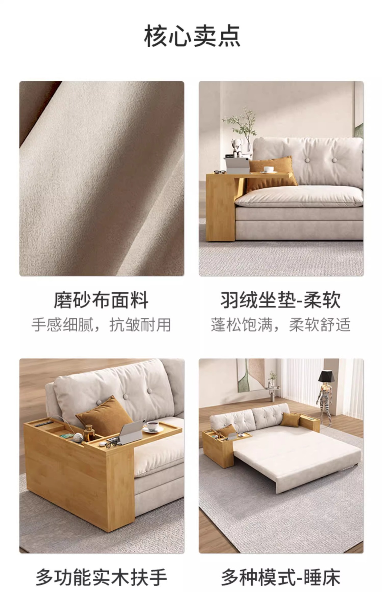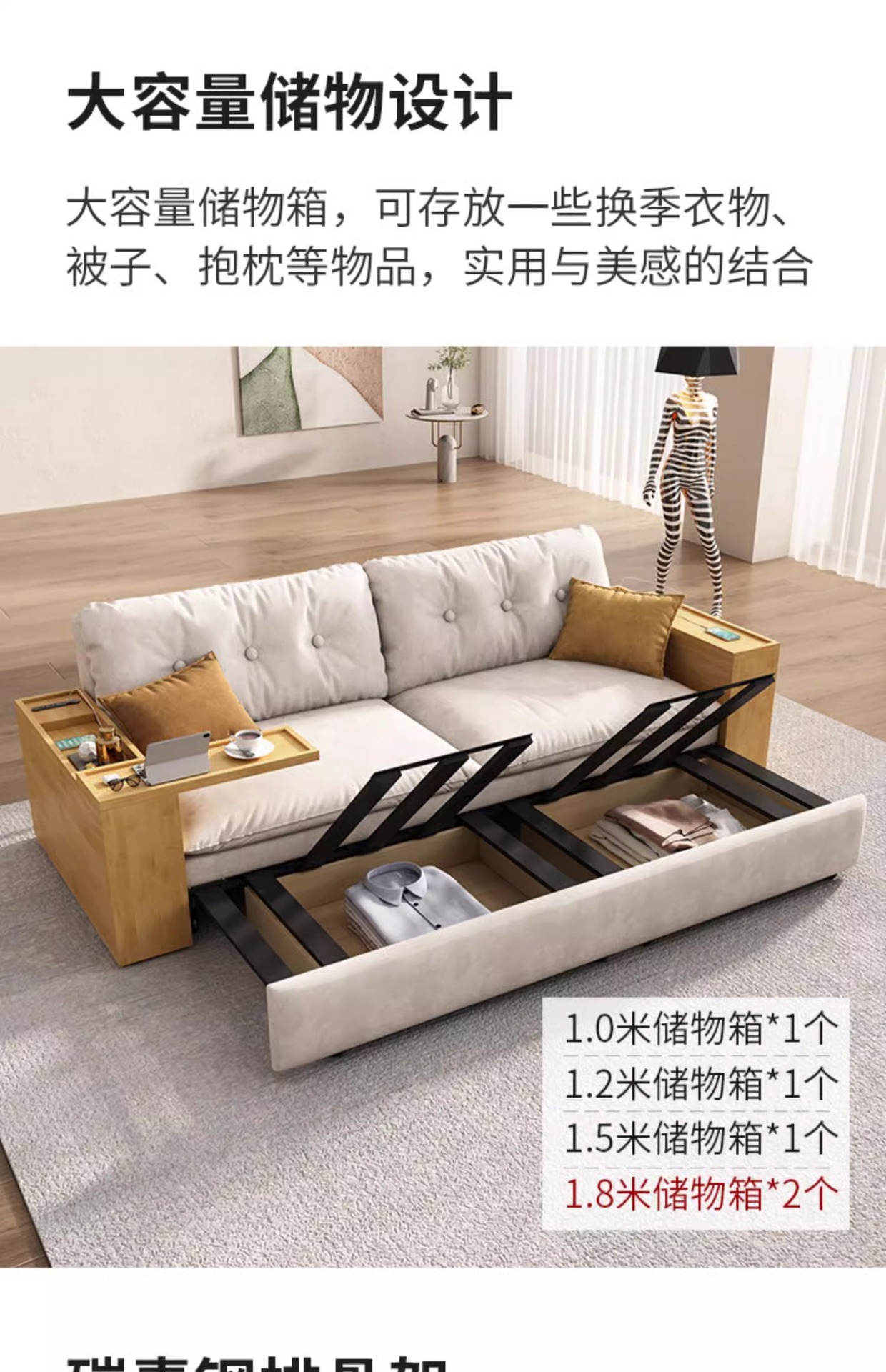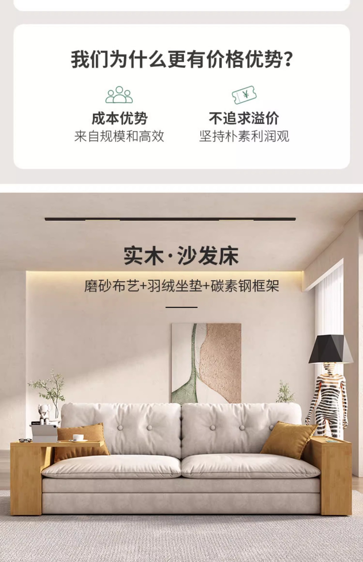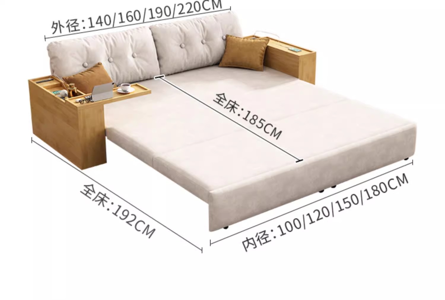 단단한 나무 소파 베드, 접이식 싱글 및 더블, 다기능, 좌식 및 수면, 소형 거실, 심플하고 모던한 인터넷 연예인 모델스토어 가기