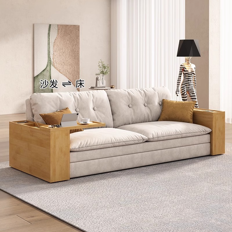 단단한 나무 소파 베드, 접이식 싱글 및 더블, 다기능, 좌식 및 수면, 소형 거실, 심플하고 모던한 인터넷 연예인 모델