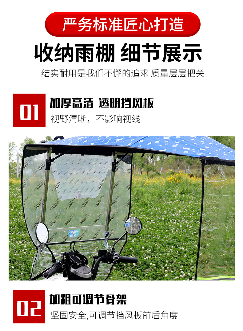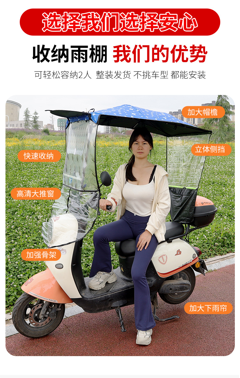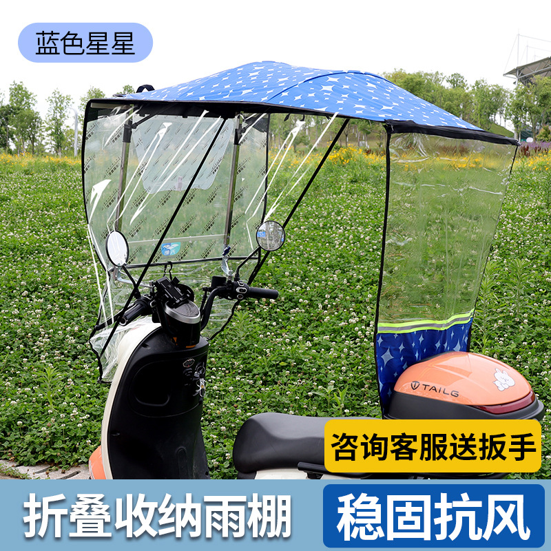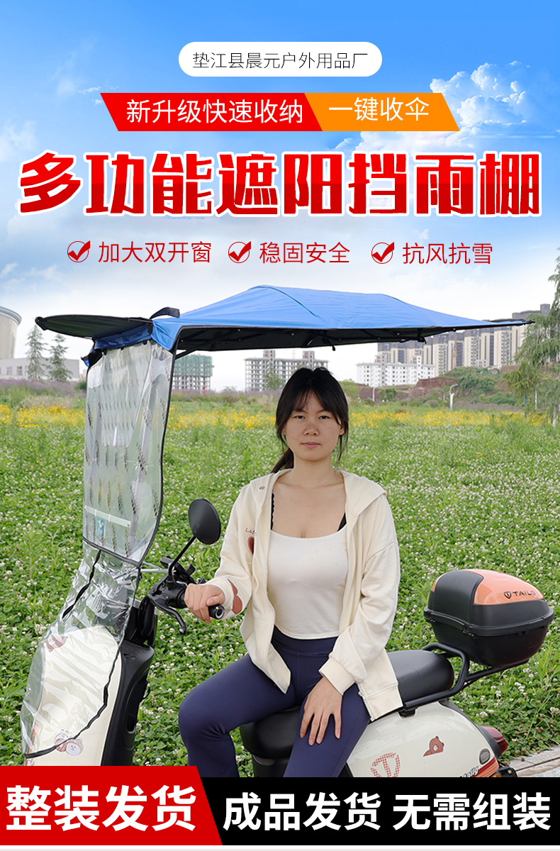 전기 오토바이 캐노피 새로운 개폐식 오토바이 차양 우산 태양 보호 비 파라솔 재고 있음