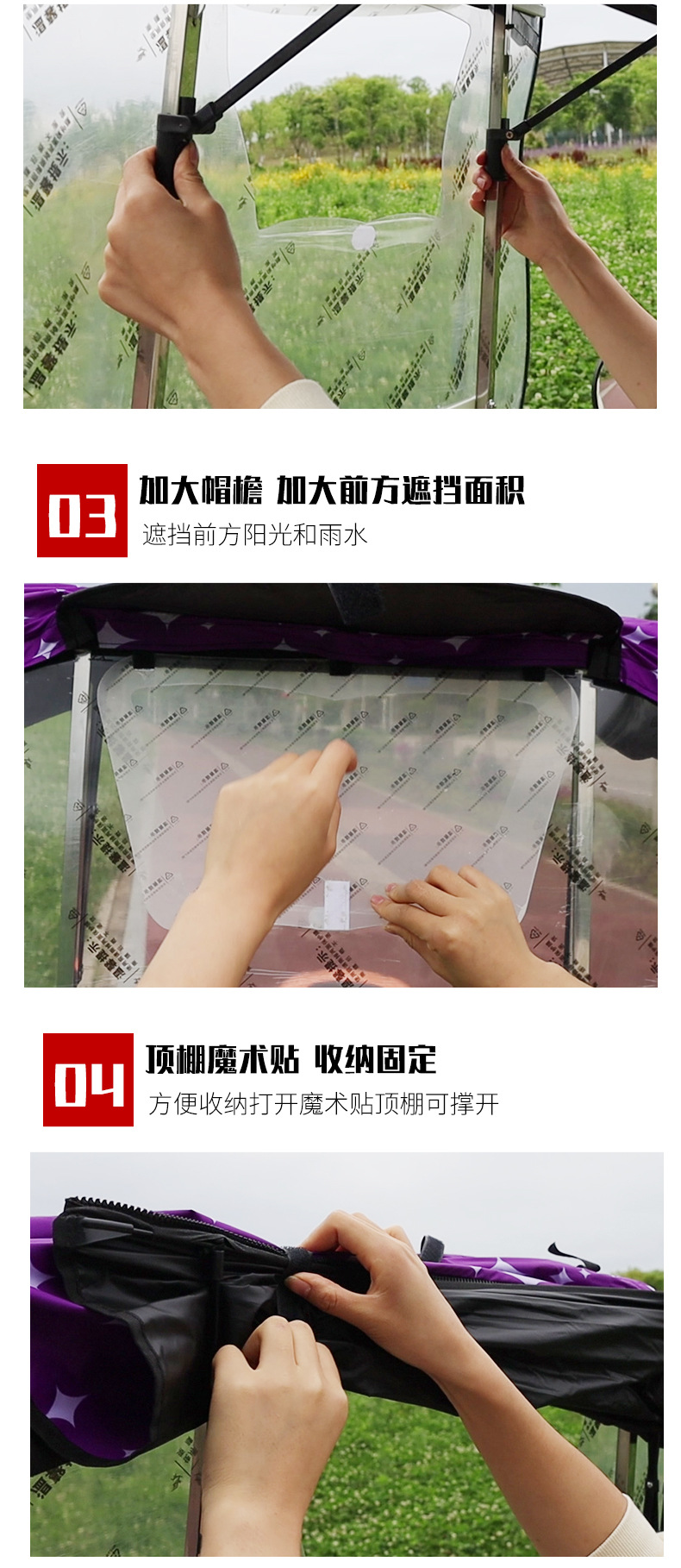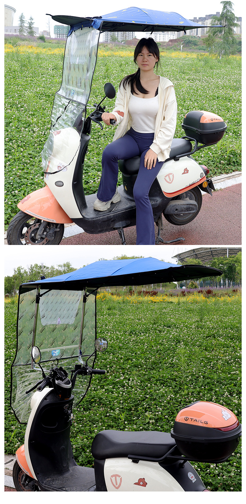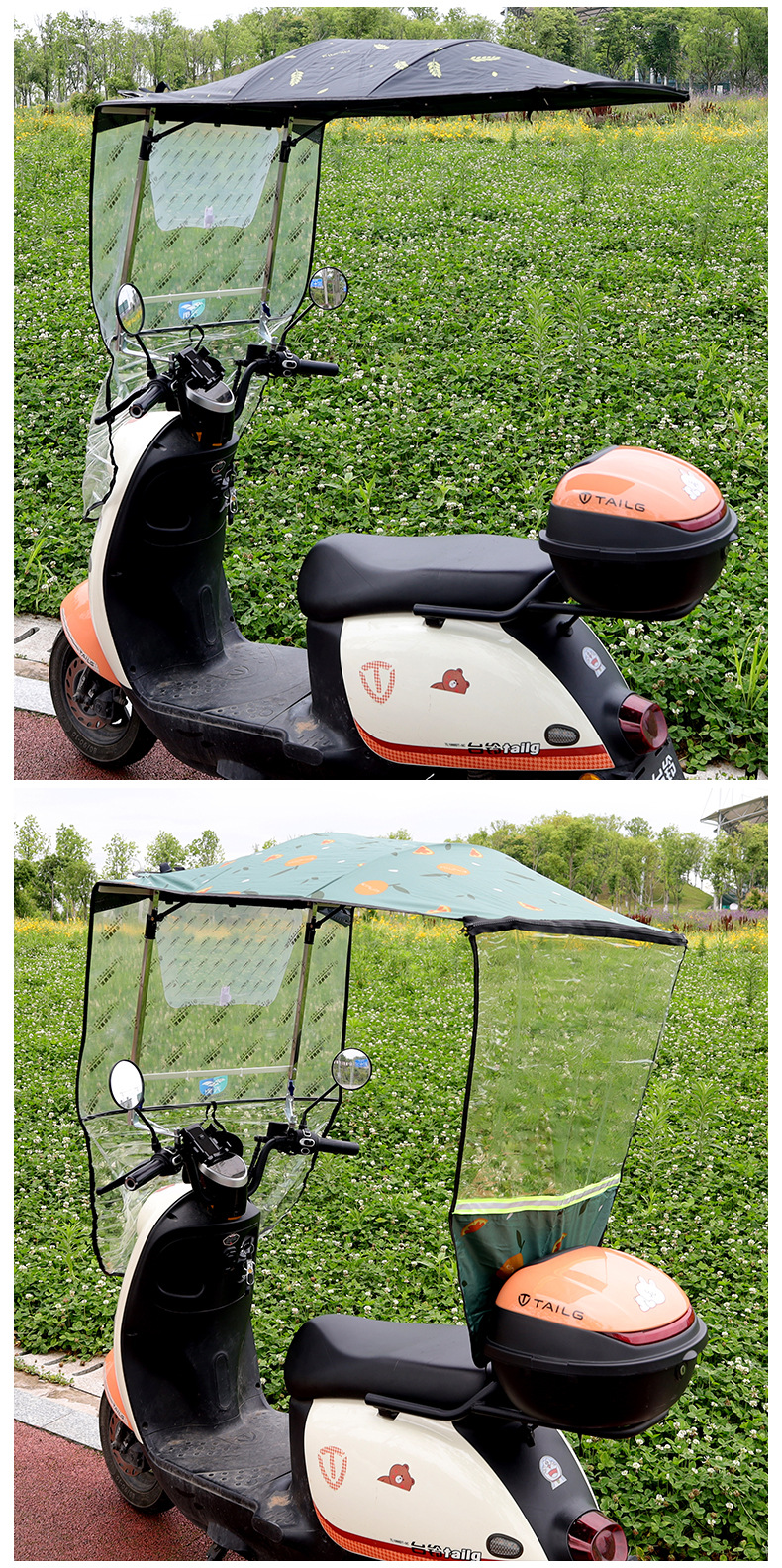 전기 오토바이 캐노피 새로운 개폐식 오토바이 차양 우산 태양 보호 비 파라솔 재고 있음