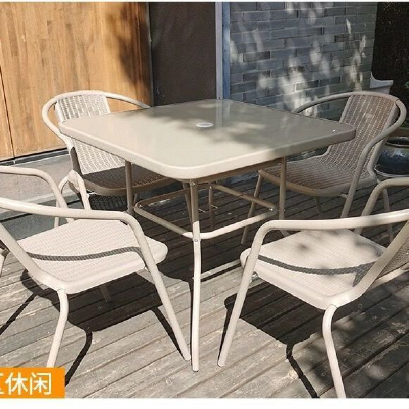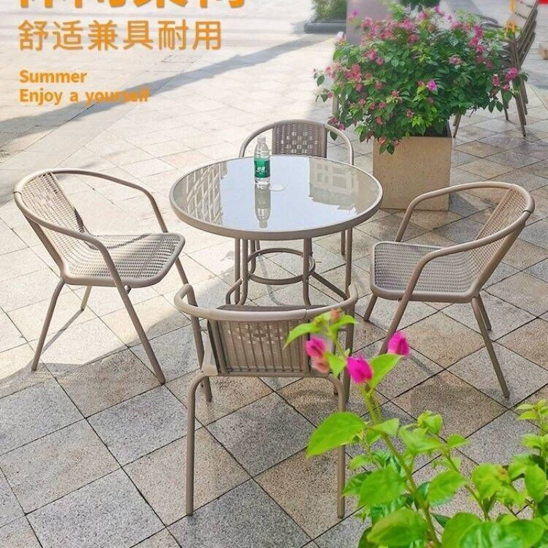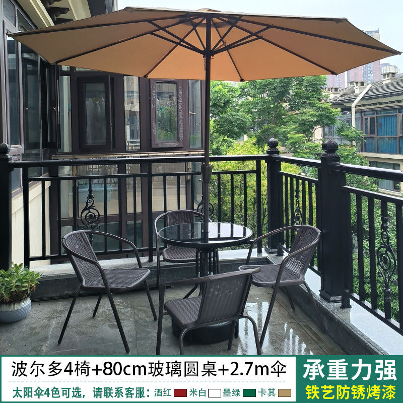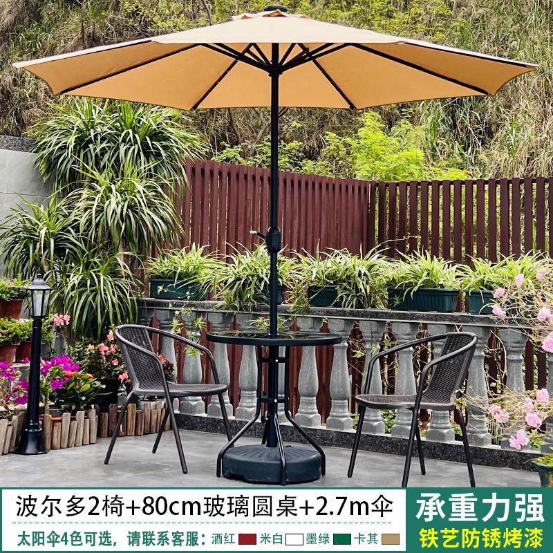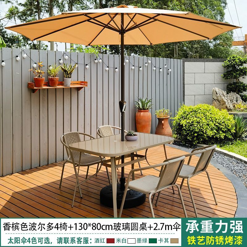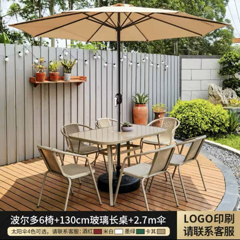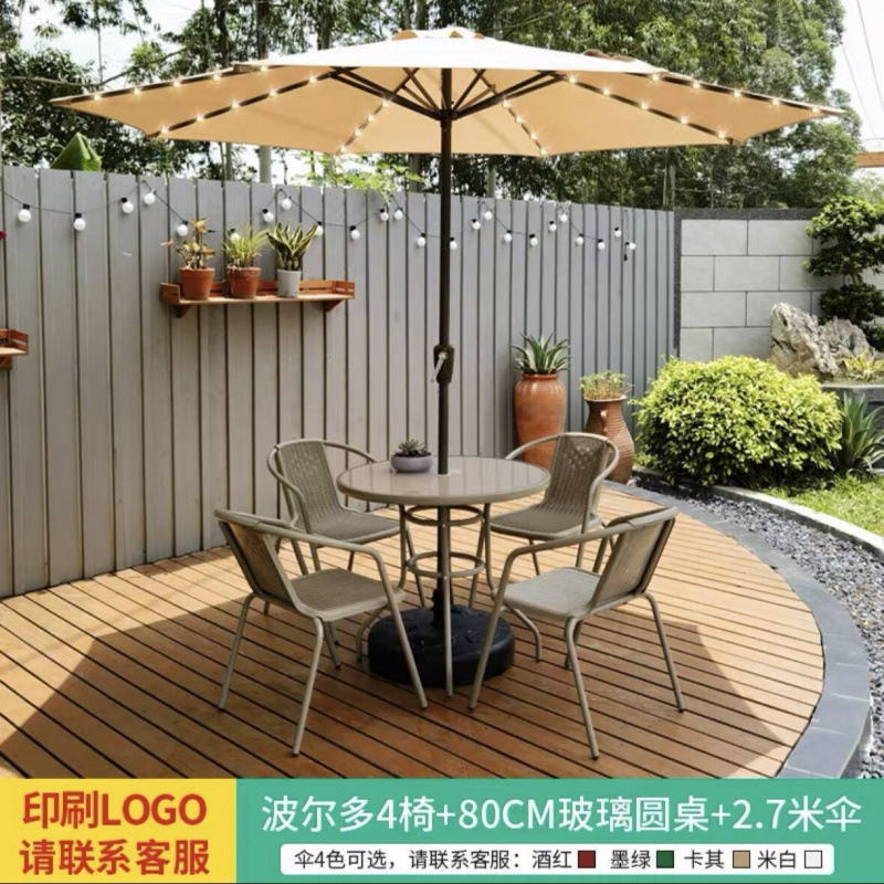 야외 안뜰 테이블과 의자 우산 조합 파라솔 정원 야외 레저 야외 밀크티 카페 발코니