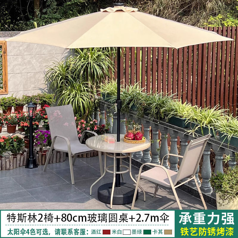 야외 안뜰 테이블과 의자 우산 조합 파라솔 정원 야외 레저 야외 밀크티 카페 발코니스토어 가기