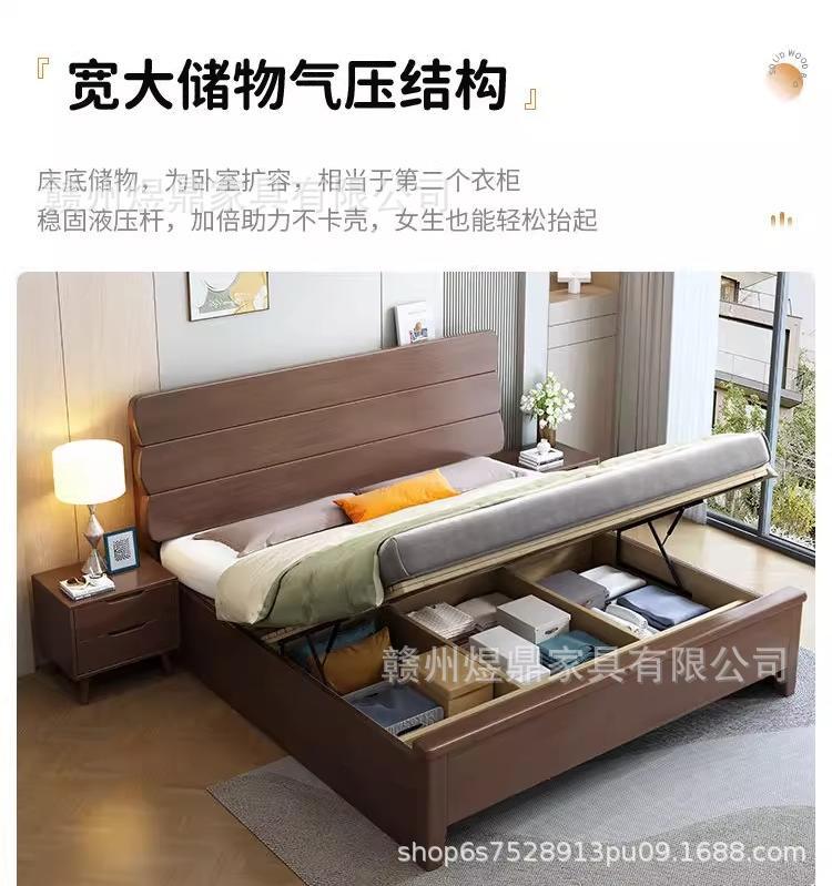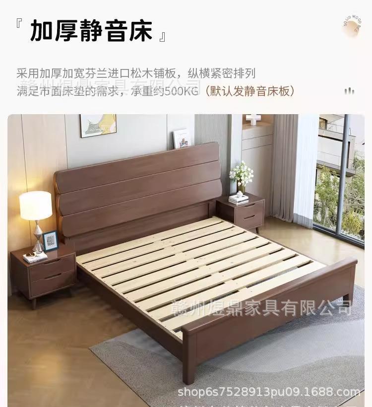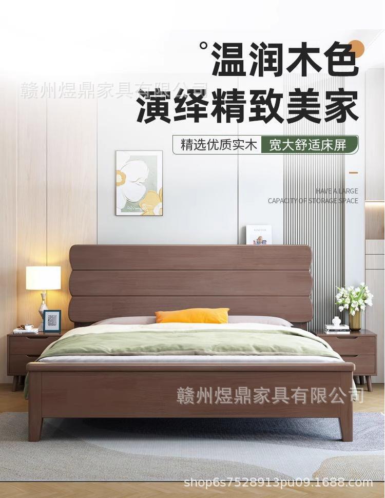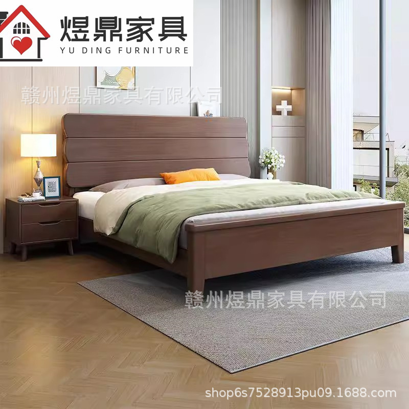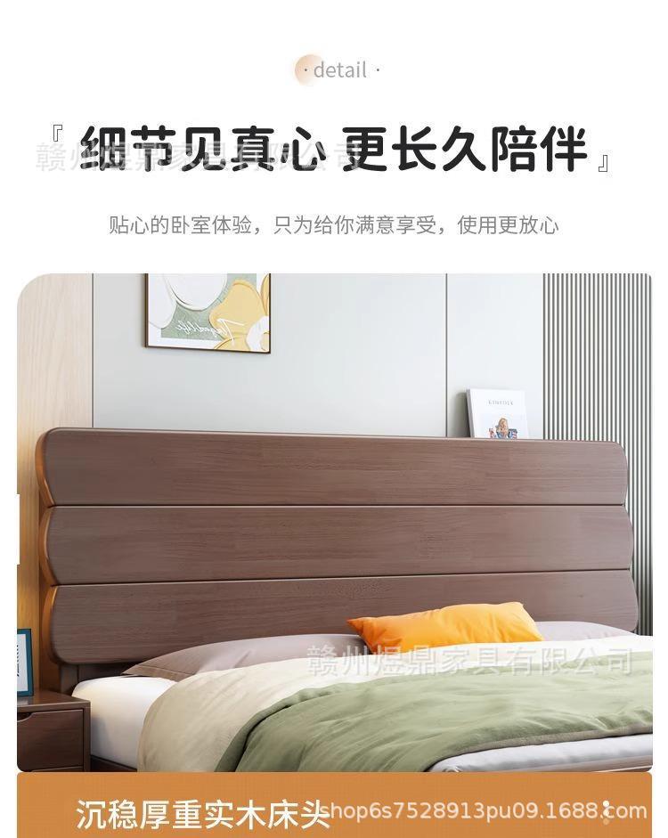 새로운 북유럽 호두 나뭇결 단단한 나무 침대 더블 1.8x 2m 미니멀리스트 현대 마스터 침실 새로운 침대 1.5m 홈 웨딩