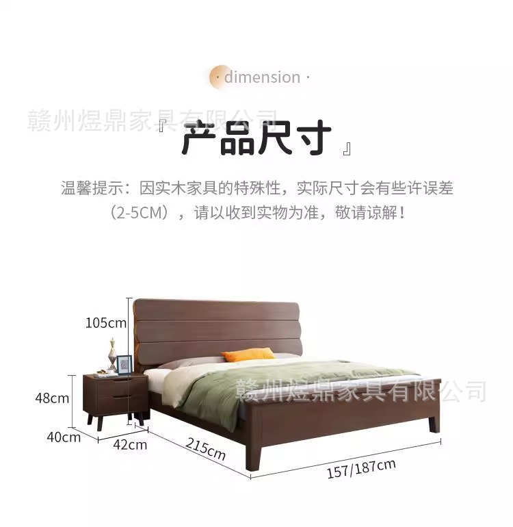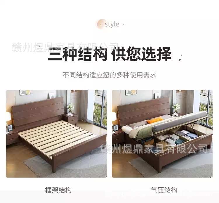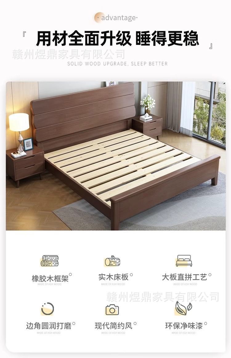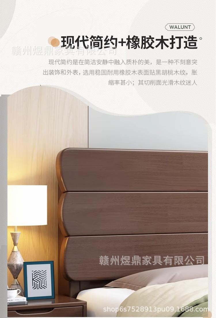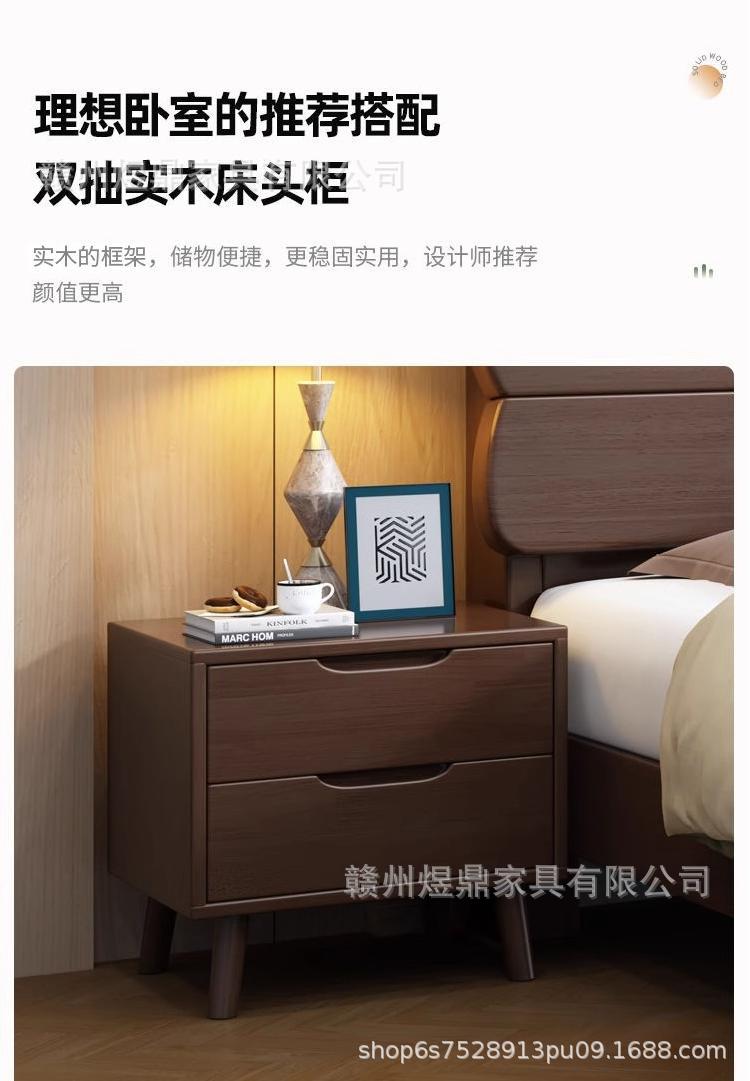 새로운 북유럽 호두 나뭇결 단단한 나무 침대 더블 1.8x 2m 미니멀리스트 현대 마스터 침실 새로운 침대 1.5m 홈 웨딩